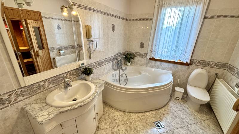 Veresegyházán eladó egy nettó 220 m²-es, 2 szintes, gázkazán fűtésű, 7 szobás, kiváló állapotú, nagyteraszos, gondozott kertű családi ház.Itt minden részlet a minőséget és a kényelmet szolgálja, csendes, nyugodt környezetben.A ház 1998-ban épült, majd folyamatosan finomhangolták az évek során: 2012-ben alapos felújítás, 2018-ban festés és speciális belső vakolat felhordása, illetve 2019-ben a tetőtéri lakás kialakítása is megtörtént. A ház a legmagasabb színvonalat képviseli, mind külső, mind belső kialakításában. A prémium anyagok és technológiák gondos kiválasztása tükrözi a tulajdonosok egyedi elképzeléseit. Akár kétlakásos családi házzá is alakítható. Dupla rezsikedvezményre jogosult.Főbb jellemzők:- Elhelyezkedés: Veresegyház nyugodt, csendes részén, három aszfaltozott utcafronttal, a budapesti agglomeráció egyik legélhetőbb kisvárosában.- Méret és terület: 1059 m²-es telken épült, alapterület: 2×156 m² + 21 m² terasz + 21 m² pince- Alsó szinten kialakításra került nappali + 4 szoba, konyha-étkezővel, spájz, 2 fürdőszoba, szauna, garázs- Felső szinten található 2 szoba, nagy konyha étkezővel, egy fürdőszoba, továbbá 95 m² tetőbeépítési lehetőség!- Kiváló minőségű anyagok és technológiák: egyedi, tölgyfából készült nyílászárók, kerámia padlóburkolatok a közlekedőben és fürdőszobákban, tölgyfa parketta a lakószobákban, valamint trópusi vörös doussie a nappaliban. Az emeletre vezető lépcső vörös márvánnyal van burkolva.- Modern komfort: Viessmann kondenzációs gázkazán (2018-ban cserélve) biztosítja a fűtést és a melegvizet.- Elektromos fűtőszállal langyosítva a konyhában és a közlekedőben a hideg burkolatot, hőszigetelő fém redőnyök, távirányítós garázskapu és bejárati kapu.- Kert és pihenés: Kora tavasztól késő őszig virágzó, tájképi igényességgel megalkotott kert, nemes fákkal, különleges növényekkel és automata locsolórendszerrel (önálló mérőórával, csatornadíjmentes) várja a kikapcsolódást.Veresegyház dinamikusan fejlődő kisvárosként kínál kiváló közlekedést – a helyi buszmegálló csupán 100 méterre található – számos oktatási intézménnyel (bölcsőde, óvoda, több általános iskola, gimnázium) - sportolási lehetőséggel (sportcsarnok, uszoda, termálfürdő, horgásztó, természetes strandok) támogatja a mindennapok minőségét. A város kulturális élete is pezsgő: nyári fesztiválok - \"Mézesvölgyi Nyár\", komolyzenei koncertek és állandó színházi programok teszik teljessé az élményt.Ez az otthon azoknak szól, akik a professzionális kivitelezést, a prémium minőséget és a nyugodt, zöld környezetet keresik – egy olyan életstílus megteremtésére, ahol az igazi értékek kerülnek előtérbe.Lépjen kapcsolatba velünk, és fedezze fel, hogyan válhat ez a ház az Ön új, kényelmes és elegáns otthonává! |