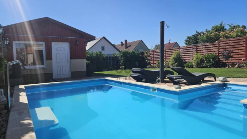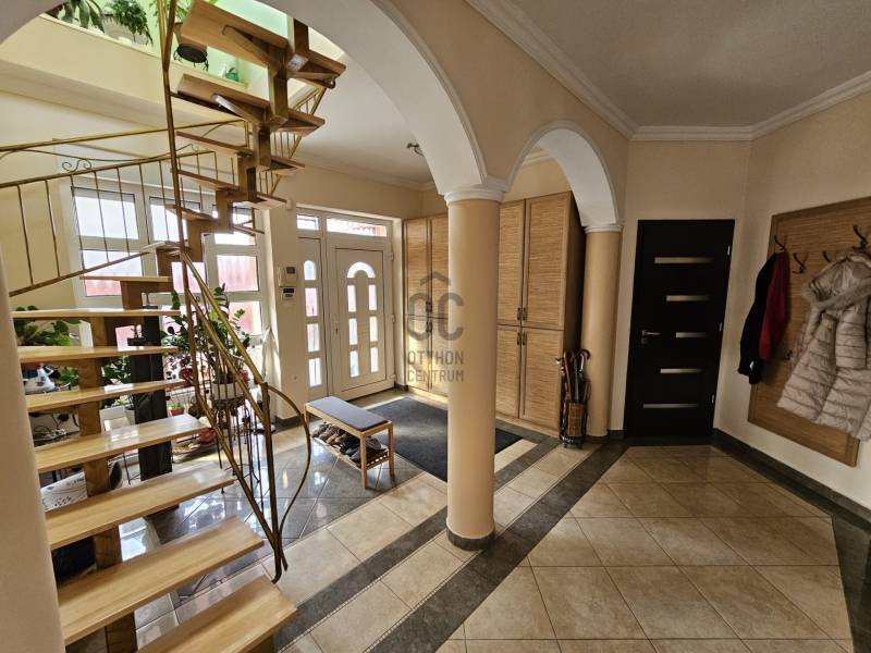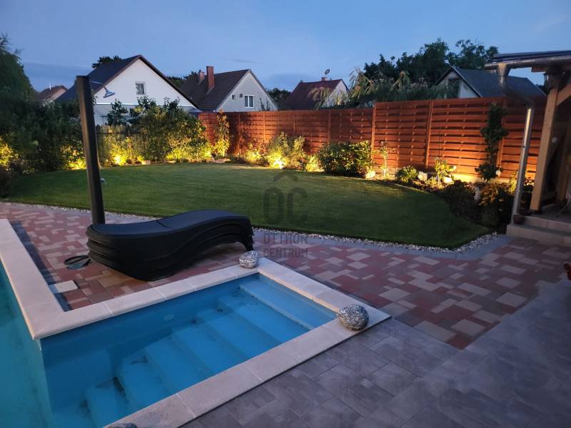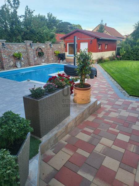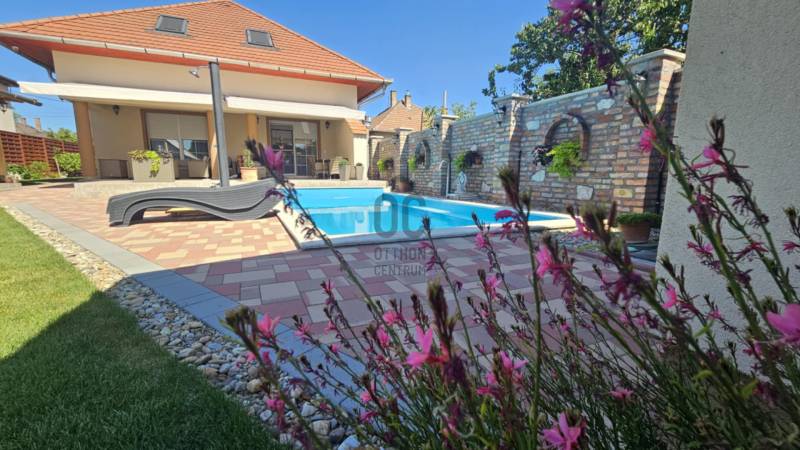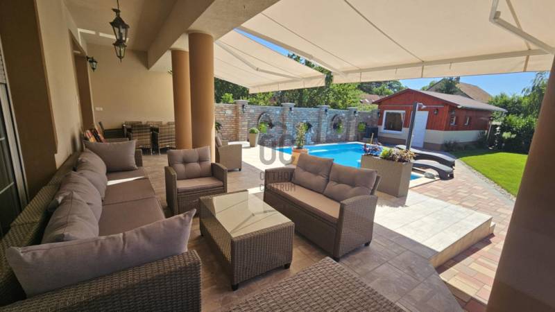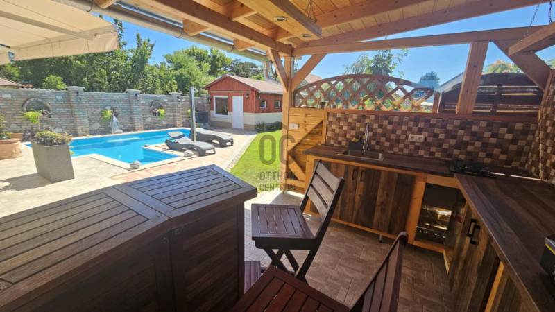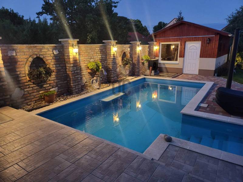 Eladó Fóton egy gyönyörű mediterrán stílusú, 2 szintes, nettó 280 m2-es, bruttó 360 m2-es, 9 szobás, duplakomfortos családi ház, fűtött medencével, infraszaunával, kerti szaletlivel 622m2-es telken.- NAPFÉNYES otthon- KÍVÁLÓ választás több generáció számára is- az ingatlan 2 szintes - összesen 9 szoba - további helyiségek: amerikai konyhás nappali, 2 gardróbszoba, spájz, mosókonyha, 2 fürdőszoba (káddal és tusolóval), 2 WC kézmosóval, háztartási helyiség- 1 fűtött garázs és 3 fedett gépkocsi beálló- szekvenciós elektromos kapu, - 2 gépészeti helyiség- 2 terasz (16m2 és 50m2 ), innen a kertre nézve látjuk a HANGULATOS medencét, gondozott kertet virágokkal és a szaletlit, mely beépített gáztűzhellyel, melegvízes mosogatóval és saját szikkasztóval van felszerelve. A ház MODERN fűtési megoldásokkal rendelkezik, többek között, elektromos kazánnal, amely minden helyiségben külön szabályozható és alkalom és igény esetén lezárható, gáz kiállással, hőszivattyú előkészítéssel, hűtő-fűtő klímával, H- tarifa előkészítéssel. Központi porszívó, minden szinten és helyiségben csatlakoztatva. A földszinten padlófűtéssel, beépített házimozi rendszer vászonnal. A ház riasztó rendszerrel és távfelügyeleti szolgáltatással biztosított.Nyílászárok műanyag és Velux típusúak, melyek hő és hangszigetelt, redőnnyel és szúnyoghálóval ellátottak. A külső fűtött medence, mely akár hőszivattyúra kötve is fűthető, lágyított (ipari) automata vegyszer adagolóval, kényelmi elemekkel felszerelt, úgy, mint ellenáramoltató, nyak és hát masszázzsal. A gondozott kert automata öntöző rendszerrel, gyeptéglával és vakondhalóval van ellátva.A kert végében van egy infraszauna sótéglával (3-4 személyes, illetve a medence gépészete itt található, illetve egy fúrt kút is kialakításra került.Tulajdonosok által folyamatosan karbantartott ingatlan.Ez az ingatlan egy ELBŰVÖLŐ otthon, mely gondoskodik a pihenés kényelméről. A külső medence, az infraszauna és a szaletli minőségi pihenést biztosít az itt élők számára!Távol a város zajától, de mégis közel Budapesthez egy nyugodt csendes mellékutcában található. Közelben óvoda, iskola, bevásárlási lehetőségek.Várja új tulajdonosát ez a KIFOGÁSTALAN otthon; jöjjön el, nézze meg!Keressen bizalommal, akár hétvégén is! |