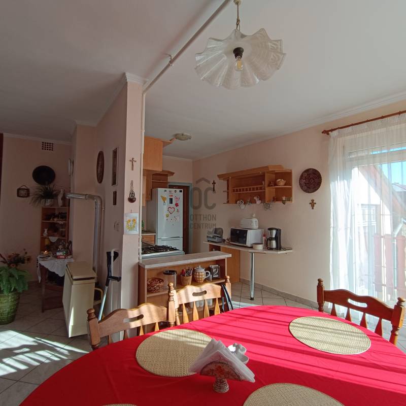 Nagykanizsa-Palin kertvárosi részén kínálom megvételre az alábbi 150 m2-es családi házat, a hozzá tartozó parkosított udvarral.NAGYKANIZSAI LAKÁS BESZÁMÍTÁS SZÓBA JÖHET!! Palin kellemes lakó-pihenő zöld övezetében, csendes, nyugodt mellékutcában helyezkedik el az ingatlan. A kertvárosban óvoda, általános iskola, játszótér, élelmiszer bolt, pizzéria, pékség, gyógyszertár, orvosi rendelő, szolgáltató egységek működnek.Tökéletes választás azok számára, akik élvezni szeretnék a város közelségét, hiszen innen a város központja mindössze 4 km távolságra elérhető, akár gyalogosan vagy kerékpárral, melyet végig kerékpárút köt össze.Amennyiben szeretne egy kulturált, szép családi házban élni és ehhez még egy rendezett, tiszta, természeti-zöld környezet is társul közel a városhoz, akkor Önnek ez egy tökéletes választás lehet! A tulajdonosok gondosságának köszönhetően az ingatlan szép, megóvott állapotú, műszakilag és esztétikailag is karban tartott állapotban van.Az ingatlan jellemzői, amely É-NY tájolású:- a ház megépítése 1986-ban kezdődött el, beton alapra, ytong tégla falazattal, cserép tetővelAlsó szint helyiségei: 2 tágas hálószoba, nappali, amerikai konyha-étkező, kamra, fürdő-WC, közlekedő, tároló, lépcsőfeljáró, teraszEmelet helyiségei: 3 hálószoba, amelyből az egyik erkély kapcsolatos, fürdő-WC, közlekedő- ablakok alsó és felső szinten is hőszigetelt műanyag szerkezetűek, rolóval felszereltek- fűtése gáz konvektorokkal történik- szobák jó minőségű laminált padlóval burkoltak- garázs 22 m2 nagyságú, ahol még barkácsoláshoz is van bőven hely- a ház előtt 2 autó parkolására is van lehetőség- tulajdonviszonyok rendezettek, per-teher mentes- CSOK, hitel igényelhető, melyet bankfüggetlen hitel szakértőnk díjmentesen, helyben bonyolít irodánkban.A házból kilépve jutunk ki a hátsó udvarra, ahol egy épített, fedett fából épült kerti pihenőhely kapott helyet a sütögetéshez, bográcsozáshoz. Családi, baráti összejövetelek tökéletes helyszíne a zöld parkosított 450 m2 nagyságú udvar, évelős cserjékkel, néhány gyümölcs fával.Ha hirdetésem felkeltette érdeklődését, várom hívását. Irodánk teljes körű, ingyenes szolgáltatást nyújt kereső ügyfeleinknek.Szakszerű tanácsadással, hitel ügyintézéssel, energetikai tanúsítvány elkészítésével és kedvező díjszabású ügyvéddel nyújtunk segítséget. |