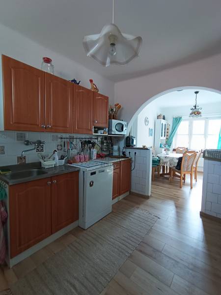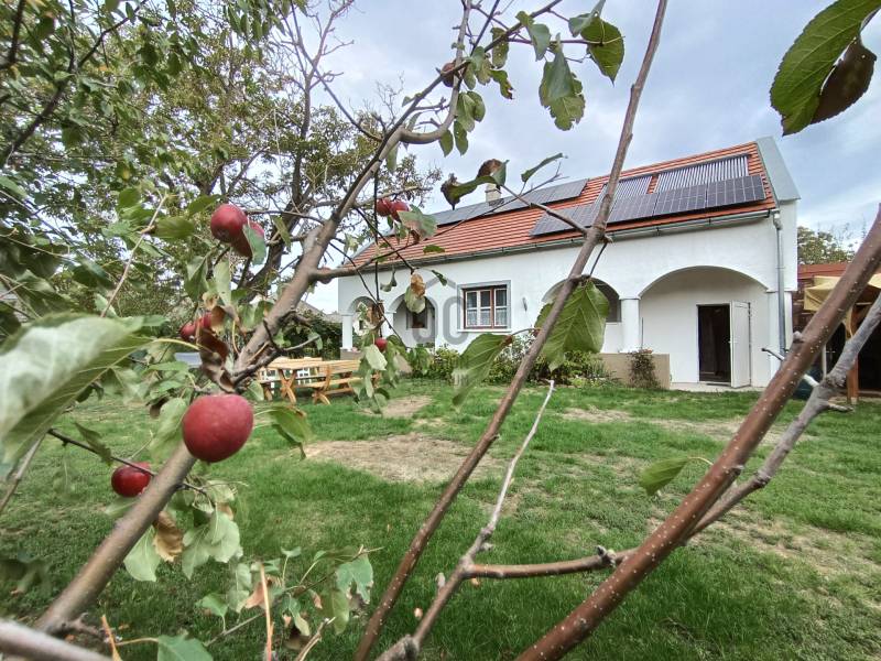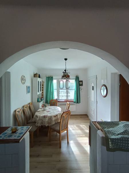 Kővágóörsre az emberek időutazásra érkeznek.Egy letűnt világ lassú, békés élete tükröződik még mindig a többszáz éves épületekben, amit a balatoni levegő tartósít még jópár generáció számára.Az egyik legszebb utcában várja új gazdáját ez a 60nm lakótérrel és 35nm-es közösségi térrel rendelkező lakóház, amely majd\' 1000 nm-es telken áll. Az egykori lakóépület falazata, teljes tetőszerkezete és minden műszaki tartalma (elektromos vezetékek, vízvezetékek) az utóbbi 10 évben teljeskörűen fel lett újítva. A tetőn 13 blokkból álló napelemrendszer biztosítja az 5 KW/h teljesítményt, amely biztosítja az egész éves energiát.A falazat alapja kő, ezen új tégla hozzáépítés van, a tetőn cserép fedés. A vasalt betonkoszorúnak hála a tetőtér beépíthető, ahol kényelmesen még 2-3 szoba elhelyezhető.Bent egy cserépkályha áll az étkező és a nappali között, ezen kívül elektromos panelek biztosítják a fűtést. Étkező, konyha, nappali, hálószoba, spájz, fürdőszoba elosztással került kialakításra.A lakóingatlan és a mögötte hosszan meglévő gazdasági épület az egykori Kerkápoly-kúria (később Tobak-ház) részei voltak, amelynek az eredeti falazatát 1690-1720 között építették. A kert végében meglévő épületrészben 1822-es pecsétes téglákat találunk!A négy csehsüvegboltozatos szobából, két konyhából és kamrából álló úri otthonban Kerkápoly István, Zala vármegye egykori alispánja élt, ahol Deák Ferencet gyakorta látta vendégül. Az épület melletti mai tájház szintén a család birtokába tartozott.A ház jelenlegi tulajdonosa nagy becsben tartja ezen örökség méltó megőrzését, nyaranta a régi falak és oszlopok esti kivilágítást kapnak, hogy az erre járók is gyönyörködhessenek bennük.Most a régi, kő falazatú melléképület-sor egy hangulatos közösségi térből, amely vendégapartmanként is funkcionál (35 nm), kintről megközelíthető fürdőszobából (10 nm), műhelyből (18 nm), borospincéből (12 nm) és két nagy tárolóegységből (32 nm) áll. Fedett fatároló is ki lett alakítva itt. Ezen gazdasági rész összesen cca.130 nm-en biztosítja a bővítés és a további hasznosítás lehetőségét, itt csak a fantázia szabhat határt! A teljes épület fel van tüntetve a térképen!Egy fantasztikus történetű, egyedülálló ingatlan ez, egy csodálatos kis faluban, a Balaton-felvidék kapujában! Érdemes személyesen megtekinteni! |