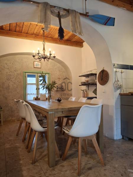 A Káli- medence varázslatos kis zsákfalujában, Balatonhenyén ajánlom figyelmébe ezt a régi értékekeket megőrző, de a mai kor igényei szerint felújított ingatlant.A főépület mellett egy kis házikó is áll a telken, melyből külön lakrész alakítható ki.A kőből épült épült főépület új, vörösfenyő födémet és gerendázatot kapott.Az új födémnek köszönhetően, a környéken ritka 2,85 m-es a belmagasság.A felújítás során kétrétegű nyílászárók kerültek beépítésre. A fűtést az alsó szinten kondenzációs gázkazán, a tetőtérben elektromos panelek biztosítják.A netttó 110 m2 alapterületű alsó szint az előszobából és a teraszról is rendelkezik bejárattal.A két hálószoba, nappali, konyha- étkező mellett kettő fürdőszoba került kialakításra.A tetőtérben egy nagy légterű társalgót találunk két leválasztható hálóhellyel.Jelenleg még nem került beépítésre 40 m2, de kis ráfordítással és egy kinti lépcső beépítésével teljes értékű lakrész válhat belőle.A ház lenyűgöző és otthonos hangulata a család gondos és minden részletre odafigyelő munkájának köszönhető.A bútorok és a berendezési tárgyak visszarepítenek minket a múltba, ezek külön megállapodás tárgyát képezik.LAKÓHÁZKÉNT, NYARALÓNAK DE AKÁR VENDÉGHÁZNAK IS HASZNOSÍTHATÓ!Jelenleg szállásadó helyként működik, melynek további üzemeltetésében a tulajdonos szívesen rendelkezésére áll az új gazdának.A kert könnyen karban tartható, kőbástyával övezett.Szépen parkosított, két terasz, grillező és egy kerti zuhany biztosítja a kinti pihenést.Az átalakításhoz előkészített kisház ( víz, áram, csatorna ) jelenleg tárolóként hasznosul.Alsó szintjén egy 20 m2- es boltíves pincét találunk, rossz időben itt is fogadhatjuk vendégeinket.Kivételes ingatlan ahova azonnal beköltözhetünk és nagyobb család esetén is mindenki jól fogja érezni magát!A Balatontól mindössze 8 km- re fekvő gazdag népi építészeti örökséggel büszkélkedő faluból remek túrákat tehetünk a Fekete- hegyre vagy a monoszlói Hegyestű felé.Az utcákon haladva elragadó kép tárul elénk, megszámlálhatatlan egyedi tájérték, épületrészlet, kút ragadja meg a figyelmünket.Ha kérdése merülne fel az ingatlannal kapcsolatban vagy szeretné megtekinteni, várom megtisztelő hívását! |