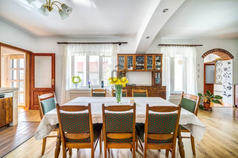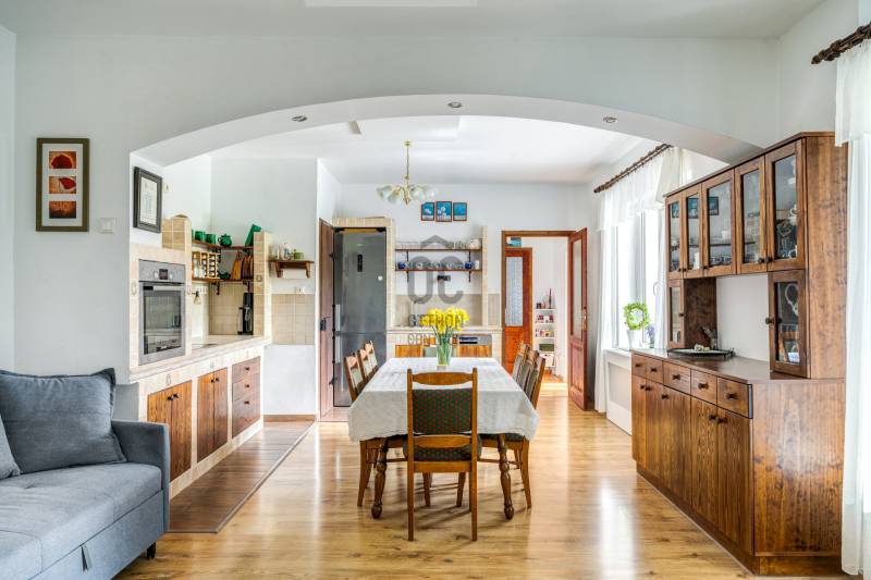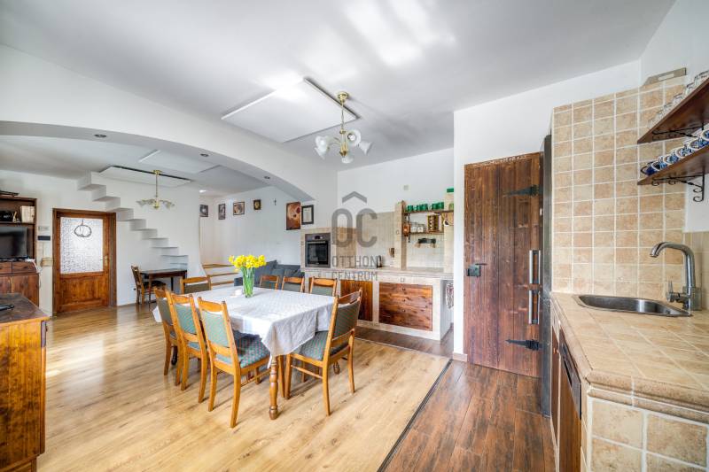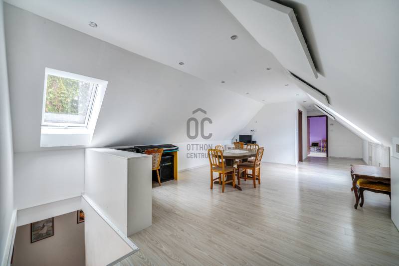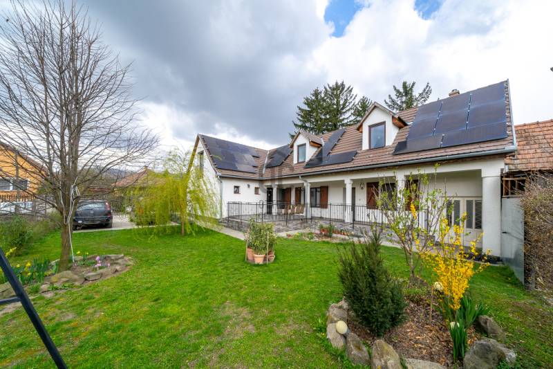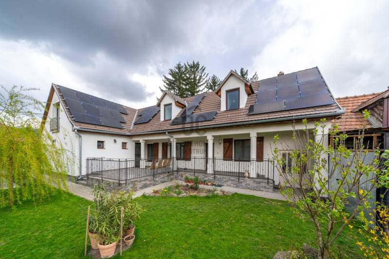 *** SZENTENDREI SZIGETEN FELÚJÍTOTT, TÁGAS, NAPFÉNYES TEREKKEL RENDELKEZŐ OTTHON, NAPELEM RENDSZERREL, ALACSONY FENNTARTÁSI KÖLTSÉGEKKEL ***Tahitótfaluban, az Arany János utcában, 205 nm hasznos alapterülettel rendelkező, nappali + 7 szobás, kiváló állapotú, napelem rendszerrel felszerelt családi ház eladó, önálló, összközműves telken.A ház alapja az 1960-as években épült, klasszikus, tornácos parasztház, mely első körben 2012-ben került bővítésre, korszerűsítésre, majd 2022-ben egy nettó 80 nm-es tetőtérrel is bővült, ahol további helyiségek kerültek kialakításra.A ház korszerűsítése, bővítése során, új, műanyag nyílászárók kerültek beépítésre, szigetelést is kapott a ház, fűtéséről pedig a mennyezetre felszerelt infra panelek gondoskodnak, melyhez az áramot a házon elhelyezett 9 kW-os napelem rendszer biztosítja. Alternatív fűtési lehetőség is rendelkezésre áll a házban egy vegyes tüzelésű kazán formájában, mely radiátoros hőleadókon keresztül gondoskodik a melegről.A ház korszerűsítése, továbbá a tetőtér beépítése ugyanúgy a legkorszerűbb, magas minőségű anyagok használatával történt.A 125 nm-es földszinten a nappali-konyha-étkező helyiség mellett további 4 szoba, kamra, valamint 2 fürdőszoba és egy külön mosdó kapott helyet. A teraszról két bejáraton keresztül is lehetőség van bejutni a házba.A 80 nm hasznos alapterületű tetőtérbe a nappaliból kialakított lépcsőn lehet feljutni, ami egy tágas közösségi térbe vezet, innen nyílik további 3 szoba, valamint egy zuhanyzós, ablakos fürdőszoba és egy külön mosdó.Igény esetén lehetőség van külső lépcső megépítésére is, ezzel akár két generációssá lehet alakítani a házat, hiszen a tágas, tetőtéri közösségi térben kényelmesen kialakítható egy amerikai konyhás nappali.A házhoz tartozik egy 25 nm-es beton pince, egy nyári konyha, egy zárt fatároló, és egy fedett tér, ami műhelynek vagy tárolásra is tökéletesen alkalmas, azonban ez igény esetén el is bontható.Az 1105 nm-es telken 2 gépkocsi számára térkövezett beálló biztosít parkolási lehetőséget, melyet az automata kovácsoltvas kapun lehet megközelíteni.A kiskapu is automatizált, kamerás kaputelefonnal felszerelt.A telken fúrt kút is rendelkezésre áll. Gáz jelenleg nincs a házban, de telken belül van.A ház fenntartási költségei különösen kedvezőek, hiszen a házon elhelyezett napelem rendszer 9 kW-os teljesítménye teljes egészében fedezni tudja az áram fogyasztást, beleértve a fűtést is.A településen remek az ellátottság, minden megtalálható, ami a mindennapi élethez szükséges. A háztól gyalogos távolságra elérhető Óvoda, Iskola, Posta, Gyógyszertár, bevásárlási lehetőségek. Ezenkívül a Tildy Zoltán hídon átkelve Kormányablak, Tesco, Rossmann és további üzletek, szolgáltatók állnak a helyiek rendelkezésére.Olyan új tulajdonost keresünk aki értékeli a ház különleges, egyedi hangulatát, a tágas tereket, de fontos számára a kedvező rezsiköltség és mindezt élvezni kívánja családjával ebben a komfortos házban a festői Dunakanyarban.További információkért és megtekintéssel kapcsolatban várom hívását! |
