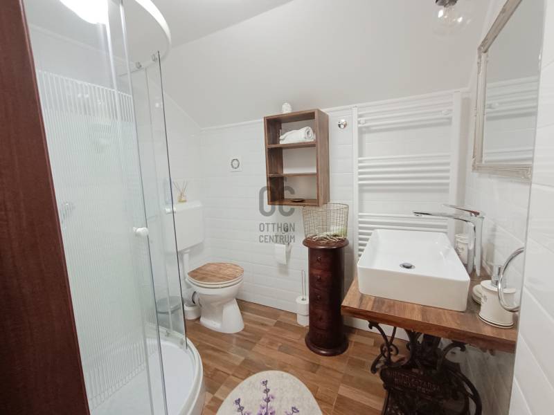 Keszthely szívében, a Belvárosban található ez a lenyűgöző ház, amely a prémium kivitelezés és az egyedi tervezés jegyeit viseli magán. Az ingatlan 279,69 nm alapterülettel és 291 nm-es telekkel rendelkezik, amely tökéletes választás lehet családok vagy befektetők számára egyaránt. Az Otthon Centrum kiemelt kínálatában!Az ingatlan főbb jellemzői:- A családi ház az 1940-es években épült, falazata tégla homlokzati hőszigeteléssel, mely 10cm.- 1975-ben épült az első, és a második szint, így a kibővített ingatlanban több generáció kényelmesen együtt élhet, vagy kiadásban gondolkodók egyszerüen működtethetik. A három szint három külön bejárattal rendelkezik, így akár három önálló lakásként is hasznosítható, amely ideális többgenerációs családok, befektetők, vagy bérbeadás céljából.- Nyílászárói tölgyfából készültek, és hőszigetelt üveggel ellátottak, ezen kívül szúnyoghálóval és redőnnyel felszereltek.A házban összesen 7 tágas szoba található, melyek közül a nappali különösen figyelemre méltó, hiszen nagy belmagasságának köszönhetően világos és barátságos légkört teremt. - A három fürdőszoba kényelmet és praktikumot biztosít, így a család minden tagja számára elegendő hely áll rendelkezésre. - A ház fűtése gáz (cirko) rendszerrel megoldott, míg a nyári hőségben a klímaberendezés gondoskodik a kellemes hőmérsékletről. (1 éve fűtéskorszerűsítés történt.)- A víz és villanyvezetékek ki vannak cserélve.- A tető 10éve lett cserélve és szigetelve.- A házhoz tartozik egy garázs is, amely egy autó számára biztosít helyet, emellett a kerti tároló pedig praktikus megoldást kínál a szabadban tárolt eszközök számára, esetleg egy nyári konyha könnyen kialakítható benne.- A ház alatt lett kialakítva a háztartási helyiség, és egyéb tárolohelyek.- A behajtás elektromos kapun keresztül történik.A szaunák és jakuzzi pedig a pihenés és a kényeztetés szigetévé varázsolja a ház belső, és külső terét, így a mindennapi stressz levezetésére is ideális helyszín. A környék ellátottsága kiváló, hiszen a közeli üzletek, éttermek és szolgáltatások mindössze pár perc sétára találhatóak. A közlekedés szempontjából is előnyös a lokáció, hiszen a város tömegközlekedési lehetőségei könnyedén elérhetőek, így az ingatlan kiváló választás lehet azok számára, akik a városi élet nyújtotta kényelmet keresik, de mégis csendes környezetben szeretnének élni. A Belváros biztonságos és nyugodt, ideális helyszín családok számára, ahol a gyermekek szabadon játszhatnak, míg a felnőttek élvezhetik a környék nyújtotta lehetőségeket. Ez az ingatlan remek lehetőséget kínál mindazok számára, akik egy világos, csendes és tágas belvárosi otthonra vágynak, ahol a kényelem és a stílus találkozik. Amennyiben bármilyen kérdése merülne fel az ingatlannal vagy a környékkel kapcsolatban, bizalommal forduljon hozzám! Szívesen segítek Önnek a legjobb döntés meghozatalában, hogy megtalálja álmai otthonát vagy befektetési lehetőségét.Ez az ingatlan a \"Felező csomag\" megbízási portfólióhoz tartozik. Részletek az Otthon Centrum weboldalán. |