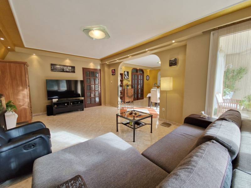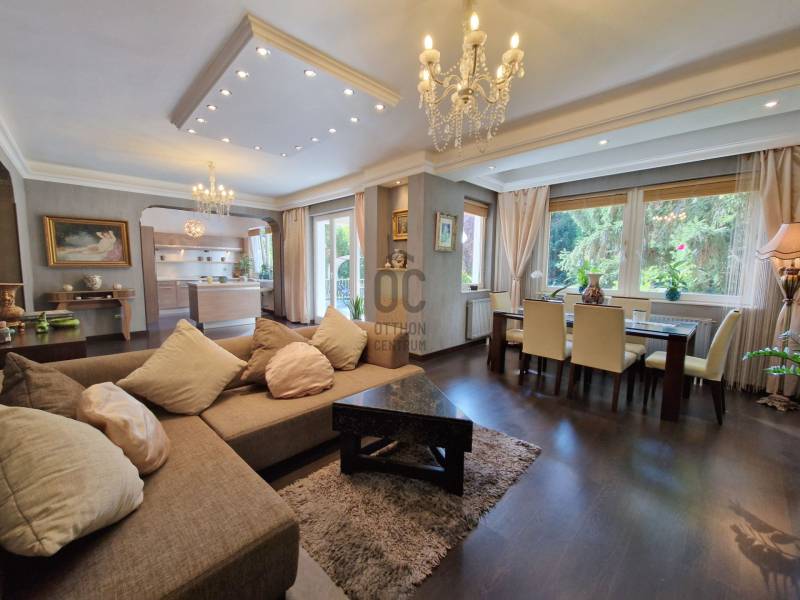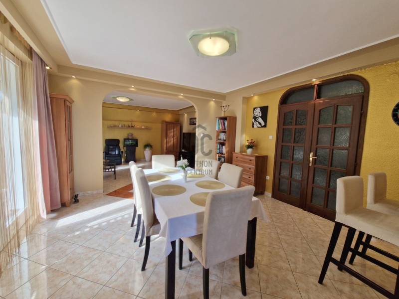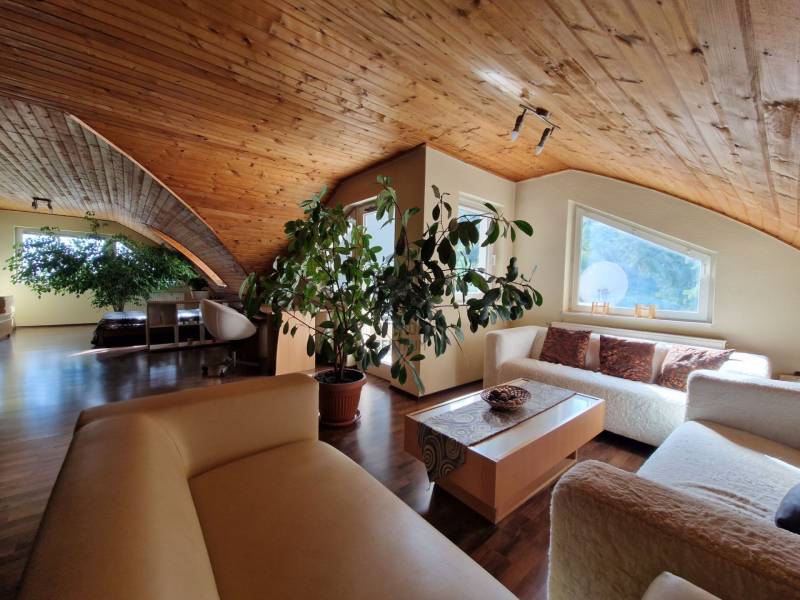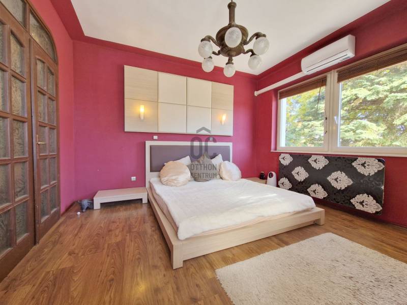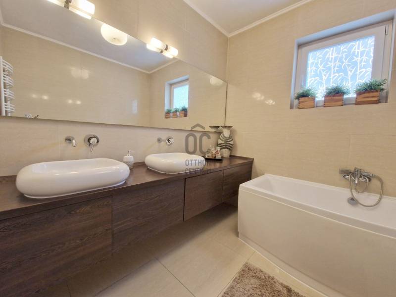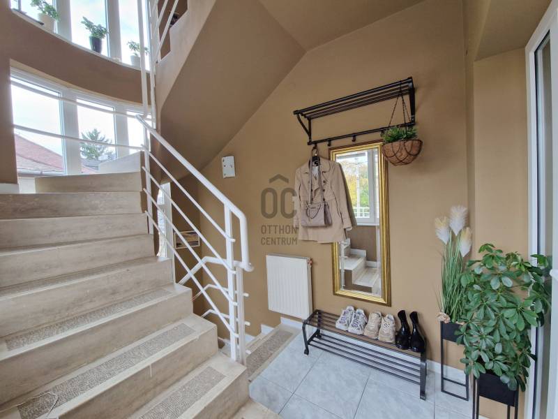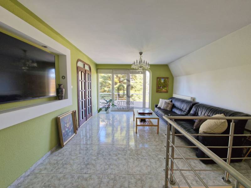 Táborhegyen 8 szobás, 2 lakásos társasház eladóTáborhegy természetvédelmi területhez közel eső részén eladó egy háromszintes családi ház, mely kétlakásos társasházzá lett alakítva.Az utcai teraszokról részben kilátással a városra, a kerti teraszokról pedig a Hármashatár-hegyre.Az öntözőberendezéssel, csepegtető rendszerrel és szökőkúttal rendelkező parkosított kerttel rendelkező telek mérete 947 m2.Ezen található az 1995-ben épült családi ház, amely 2 belső kétszintes társasházi lakássá lett kialakítva, 171 és 204 m2 alapterülettel. Porotherm hőszigetelő nemesvakolattal fedett PTH 38-as falazattal rendelkezik.Az udvaron 3 felszíni, a garázsban pedig további 1 autó számára van parkolóhely. A garázs mellett található a pince, ahol a szauna, kisebb tároló és a kazánház (Vaillant kondenzációs kazán és 250 L-es szolár forróvíz tároló) is található. A tetőn napkollektorok találhatóak. A tetőhéjazat 2024 májusában megújult, teljeskörű felújításon esett át.A külső lépcsőn felhaladva találunk egy tágas teraszt, illetve a bejáratot a házba. Innen nyílik a lépcsőfeljáró és külön bejáratokkal a belső két szintes lakások.I. lakásA földszinten lévő lakásban nagyméretű amerikai konyhás nappali bio-ethanolos látványkandallóval, egyedi burkolatokkal rendelkezik. Itt található 2 hálószoba, hűtő-fűtő klímával. A lakás duplakomfortos, zuhanyzós és kádas fürdőszobával is rendelkezik. DNY-i tájolású, kerti nézetű világos lakás, tágas, egyedi rajzolatú terasszal rendelkezik, hegyre néző panorámával.270 cm-es belmagasságú, a két hálószobában 3 rétegű műanyag nyílászárók, a többi részen hőszigetelt üveggel rendelkező fa nyílászárók találhatóak.A lakás felső szintén a lépcsőn felmenve az emeleti nappalit találjuk, ahonnan az utcafronti -városi panorámás-teraszra, vagy pedig a dolgozószobába és az emeleti fürdőszobát /kis gardróbhoz juthatunk tovább.II. lakásAz első emeleten található a második lakás, amely egy tágas, amerikai konyhás nappaliból, zuhanyzó/WC-s fürdőszobából és tágas teraszból áll. DNY-i tájolású ugyancsak, kerti nézetű lakás, egyedi terasszal, hegyre néző panorámával.Ezen lakás második szintjén található egy óriási hálószoba kis terasszal. A hálószoba könnyen átalakítható kettő vagy akár 3 kisebb hálószobává. Továbbá egy tágas előszoba, sarokkádas fürdőszoba és egy WC-bidé-pissoire-ral rendelkező helység is ahol a mosógép is helyet kapott.Lokációja optimális, buszmegálló 1 percre, az Árpád híd 5 perc alatt autóval elérhető, bevásárlási lehetőségek, golfpálya a közelben.Megtekintés, további kérdések esetén kérem keressen bizalommal ! |