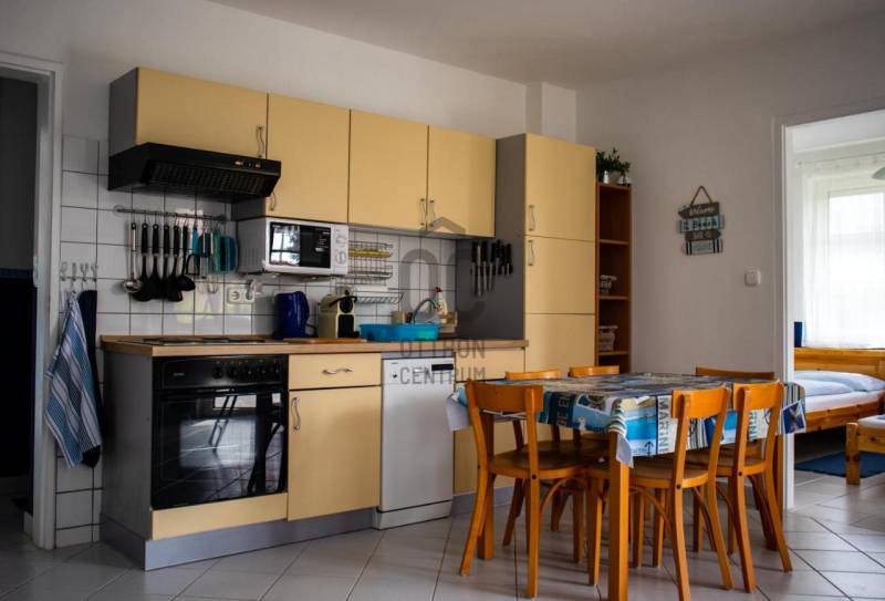 A BALATON ÉSZAKI OLDALÁNAK EGYIK KEDVELT ÜDÜLŐHELYÉN, GYENESDIÁS RENDEZETT KERTVÁROSI UTCÁJÁBAN, SÉTATÁVOLSÁGRA A STRANDTÓL, HATLAKÁSOS, MEDENCÉS APARTMANHÁZ, ELADÓ!A tulajdonlapon lakóházként szerepel így ideális állandó lakhatásra és üzleti tevékenység egyidejű hasznosítására. Az igényesen kialakított apartmanok különböző méretűek és kialakításúak, téliesítettek, hűtő-fűtő klímával felszereltek. Három apartmanban nappali-konyha fürdőszoba és egy hálószoba került kialakításra, három apartmanban nappali-konyha fürdőszoba és két hálószoba a gyermekes családok elhelyezését teszi lehetővé. Minden apartmanhoz terasz vagy erkély tartozik. Az épület rendelkezik külön mosókonyhával és tárolókkal. A parkosított kertben szaletli teszi kellemesebbé az itt eltöltött időt. Két apartmanhoz külön kis kertrész is tartozik. Medencéje 4 X 11m-es. Az épület kifogástalan műszaki állapotban és folyamatosan karban tartva várja lakóit.A lakások külön-külön is kiadhatóak esetleg értékesíthetőek.Szezonban telt házzal működik a visszatérő megelégedett vendégkőrnek köszönhetően.Gyenesdiás strandja minden évben a legkiválóbb minősítést kapja a vízminőség a tisztaság és a szolgáltatásainak köszönhetően. A szezonban a település rengeteg testi és szellemi felfrissülést eredményező programot kínál az ide látogatóknak.KOMOLY VÉTELI SZÁNDÉK ESETÉN VÁRJA JELENTKEZÉSÉT AZ ORSZÁG LEGNAGYOBB ÉS LEGSIKERESEBB INGATLANKÖZVETÍTŐI HÁLÓZATA A HÉT MINDEN NAPJÁN. |