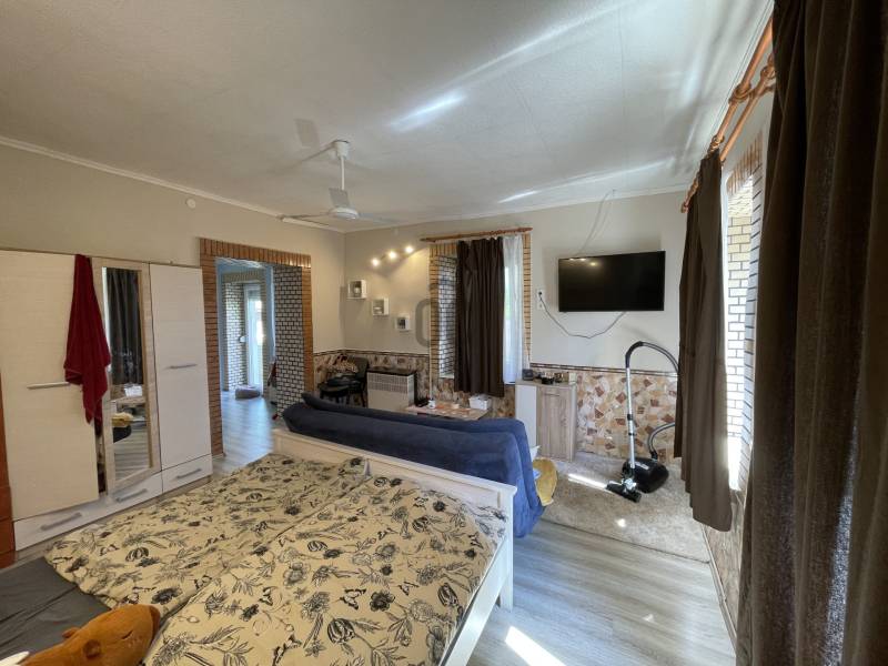 Harcon felújított, tornácos vályogház eladó! A 3 szobás ház lakható alapterülete 80 m2. Elrendezése klasszikus, egymásból nyílnak a szobák. Kiemelném az utóbbi 6 évben történt felújítások közül a villany és vízvezeték cserét, ablakok műanyagra való cseréjét, burkolatok, fürdő és a konyhabútor is modernizált! Nagyon fontos, hogy új tetőt is kapott a ház! Összességében korrekt állapotnak örvend a ház, nagy ráfordítást jó ideig nem igényel. A szekszárdi dombok panorámáját élvezhetjük a tornácról, ami a lakótér előtt húzódik végig 1,2 méter mélységben, 15,5 méter hosszan és egy fedett terasszal zárul. Innen érhető el egy kamra, ami akár lakótérré is tehető. Kibontható egy nyílás a főzőfülke irányába. Itt továbbhaladva az épületen található egy különálló istálló (kb 40 m2) és a partoldal alatt is van egy fedett nagy méretű rész. Innen juthatunk fel a padlásra és kisebb autóknak garázsként is használható. Ha innen kilépünk juthatunk fel egy lépcsőn a partfal tetejére és a mögötte levő területre, ami még az 1730 m2-es telekhez tartozik. Egy őz család jár be legelni innen a kerítéshez! :) A ház egy 1,5 éve betonozott zsákutca utolsó háza, így a nyugalom nem kérdés. A kapun keresztül autóval is megközelíthető az udvar, egy állásos fedett beálló lett kialakítva a ház előtti udvaron. Az udvaron található még egy különálló füstölő, kemence és tároló. Harc 8 km-re található Szekszárdtól, kiválóan megközelíthető. A háztól 5 perc sétára található egy bolt, nagyjából 1 km-re pedig a Sió menti töltés biztosít természetközeli élményeket. A költözés legalább 3 hónapot vesz igénybe, hisz a tulajdonosnak meg kell találni a házat ahova költözne. Kérlek jelentkezz, ha megtetszett a ház! |