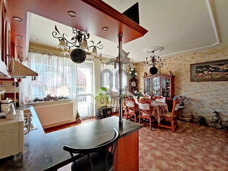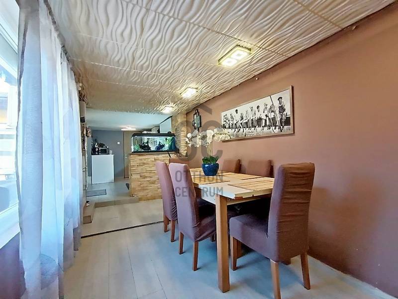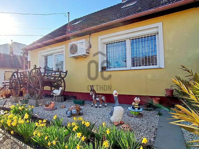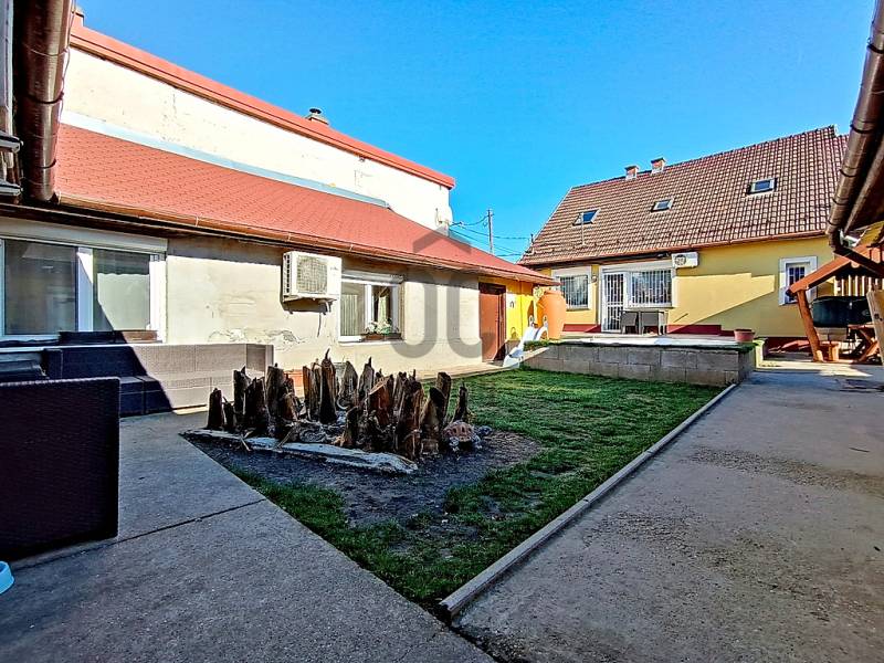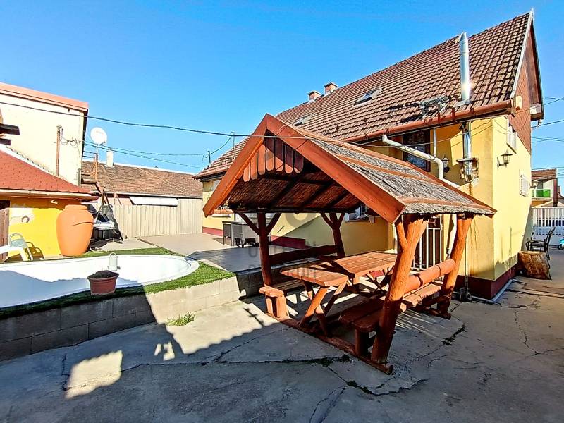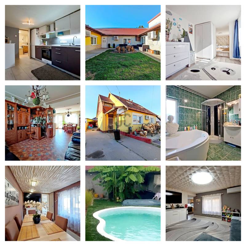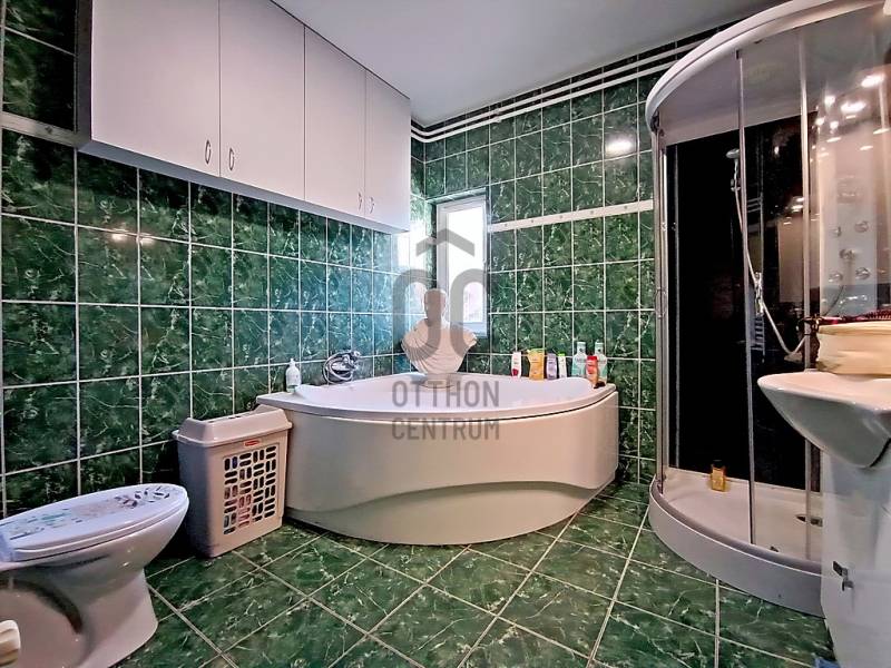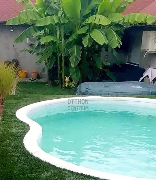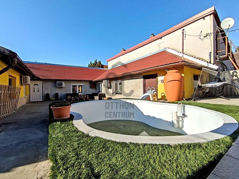 XX., PESTERZSÉBET CSENDES, NYUGODT CSALÁDI HÁZAS / KERTVÁROSI ZÖLDÖVEZETÉBEN, A SZÁSZVÁROS UTCÁBAN, ÖNÁLLÓ HELYRAJZI SZÁMON NYILVÁNTARTOTT, 413 M2-ES ÖSSZKÖZMŰVES TELKEN BELÜL - AKÁR 3 GENERÁCIÓ SZÁMÁRA IS TELJES MÉRTÉKBEN ELSZEPARÁLHATÓ EGYÜTTÉLÉST BIZTOSÍTÓ - KÉT EGYMÁSTÓL TELJESEN FÜGGETLEN ÉS KÜLÖNÁLLÓ, RÖVID IDŐN BELÜL KÖLTÖZHETŐ, KÍVÜL-BELÜL IS EGYARÁNT NAGYSZERŰ ESZTÉTIKAI ÉS MŰSZAKI ÁLLAPOTBAN LÉVŐ, ÖSSZFELÉPÍTMÉNYBEN NETTÓ 195 M2-ES (BRUTTÓ 245 M2-ES) CSALÁDI HÁZ(AK) ELADÓ(K)!A nagyobb alapterületű, belső kétszintes, 1995-ben téglából épült „első” családi ház - ami időközben egy 10 cm-es dryvit hőszigetelést is kapott - mind a külső, mind pedig a belső esztétikai és műszaki állapotát tekintve folyamatosan karbantartott, nagyon jó állapotban van.A nagyobb alapterületű „első” ház alsó szintjére egy biztonsági ráccsal is védett bejárati ajtós beépített szélfogón át jutunk be az előtérbe, ami egyben a belső lépcsőházat és - a gázcirkókazán gépészetének is helyet adó - lépcsőház alatt kiépítésre került kazánházat is magába foglalja. A lépcsőház kiválóan alkalmas a két lakószintnek a teljes elkülönítésére / külön használatára, így a két generációs együttélés tökéletes megvalósítására.AZ „ELSŐ” HÁZ ALSÓ SZINTJE (összesen 78 m2 lakóterületből áll). A lépcsőházból nyíló közlekedőn át jutunk a nagy méretű (17,5 m2) hálószobába, vele szemben a sarokkádas + zuhanyzóval és WC-vel is ellátott, 7,5 m2-es ablakos fürdőszobába és az egy légtérben lévő, klímaberendezéssel is ellátott, \"L\" alakú amerikai konyhás étkezős nappaliba, amely összesen 40 m2-es. A nappali étkezős részéből közvetlenül tudunk kijutni a 20 m2 alapterületű, elektromos napernyővel is felszerelt és fagyálló járólappal leburkolt teraszra - amelynek mintegy megnagyobbításaként a vele egyszinten kialakított - földbe süllyesztett kerti medence található.AZ „ELSŐ” HÁZ EMELETÉRE (összesen 70 m2 lakóterület) a kényelmesen széles és egy lépcsőfordulóval is kialakított belső lépcsőházból jutunk fel, amely egy praktikus előtérben / előszobában végződik. Innen jutunk át a közlekedőrészbe, amelyből jobbra egy klimatizált, tetőtéri ablakos hálószoba, vele szemben a zuhanyzós + WC-s és mosógép bekötéses, ablakos fürdőszoba, közvetlen mellette az ablakos konyha helyisége (egyelőre csak a meglévő kiállásokkal / csatlakozásokkal, de konyhabútor és gépek nélkül...), vele szemben egy másik, szintén klimatizált és tetőtéri ablakkal ellátott hálószoba és a közlekedő végében pedig a harmadik (szintén tetőablakos) hálószoba található.Az „első” ház alsó lakószintjén új hang, -és hőszigetelő, bukó-nyíló, redőnnyel és szúnyoghálóval is felszerelt műanyag nyílászárók vannak. A kedvező fűtésszámla és az ideális hőérzet miatt külsőleg 10 cm-nyi dryvittal lett hőszigetelve. A ház központi fűtését egy kombi turbós gázcirkókazán szolgáltatja, ezenkívül a két szinten, összesen 3 darab, egyenként 2,5 kW teljesítményű hűtő-fűtő klímaberendezés is segíti az évszakok váltakozásának / hőingadozásának a kényelmes / komfortos elviselését. A hideg- és meleg padló-, és fali burkolatok szép állapotban vannak, valamint a villany-, és vízvezetékeket a pár éve történt felújításkor kicserélték.Az „első” ház mögött helyezkedik el - a teljes mértékben különálló (!!!) - „U” alakú, téglából megépített, összesen 55 m2-en lakóterületen, nappalival + 2 hálószobával, nagy étkezővel + bútorozott és gépesített konyhával, valamint kádas és WC-s fürdőszobával kialakított „hátsó” családi ház is, mely építését tekintve régebbi, viszont egy pár éve, esztétikailag és műszakilag is, teljes körűen felújították! Ezenkívül ezzel a „hátsó” ingatlannal van egybeépítve az épület elején található - 12 m2 alapterületű, így csak kis méretű autó befogadására képes - garázs is, valamint az épület másik végében, pedig egy 6,5 m2-es tároló kapott helyet.A HÁTSÓ \"U\" ALAKÚ HÁZBA (összesen 55 m2 lakóterület + garázs és tároló) belépve egyből egy teljesen bútorozott és begépesített konyha tárul a szemünk elénk. Innen juthatunk be a 14 m2-es nappaliba, valamint ugyaninnen közelíthetjük meg a káddal + WC-vel + törölközőszárítóval is felszerelt fürdőszobát. A konyha folytatásaként találjuk még a nagy méretű (10 m2-es), akár 6-8 főnek is kényelmes ülőhelyet biztosító étkezőt. Az étkezőből még két darab (egymásból nyíló) hálószoba következik, amik 9 és 9,5 m2-esek. Az \"U\" alak egyik végén a 12 m2-es garázshelyiség, a másik végén a pedig a 6,5 m2-es tároló helyezkedik el. Ez a „hátsó” családi ház külön villanyórával ellátott / felszerelt, így mindkét családi házra külön-külön érvényesíthető az elektromos rezsi kedvezmény !!! A „hátsó” házban lévő Fischer és Fujitsu típusú hűtő-fűtő klímaberendezések (összesen 3 darab), rendkívül energia hatékonyak (A+++ energiaosztály besorolásúak) !!! A „hátsó” házba a gáz nincs bevezetve, de a vezetékes víz külön kiépített almérőn keresztül mutatja meg - az „első” családi háztól teljesen függetlenül - a „hátsó” családi ház tényleges fogyasztását!Az előkerttel is rendelkező, összesen 413 m2 nagyságú, összközműves telekre / kertbe az utcáról egy elektromos kapun keresztül jutunk be - ahol akár 3 autónak is kényelmes, zárt udvari beállás biztosított - valamint a növények locsolása fúrt kútról és/vagy kerti (vezetékes) csapról megoldott, valamint az ingatlanokhoz / udvarhoz egy biztonsági kamer