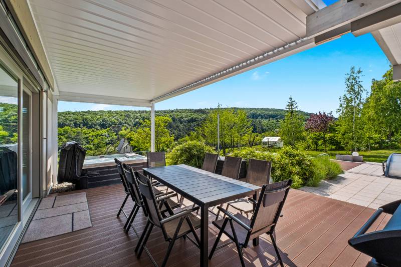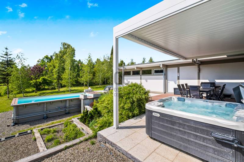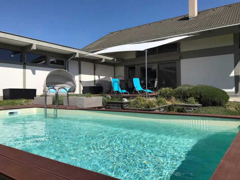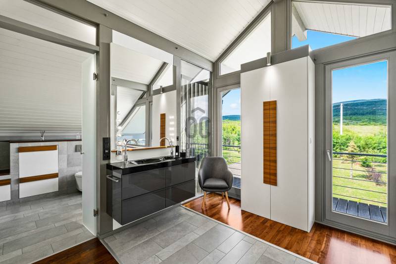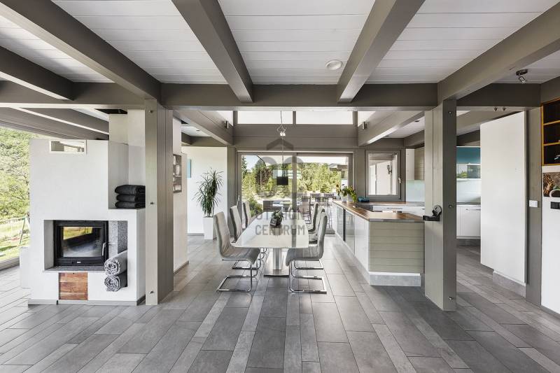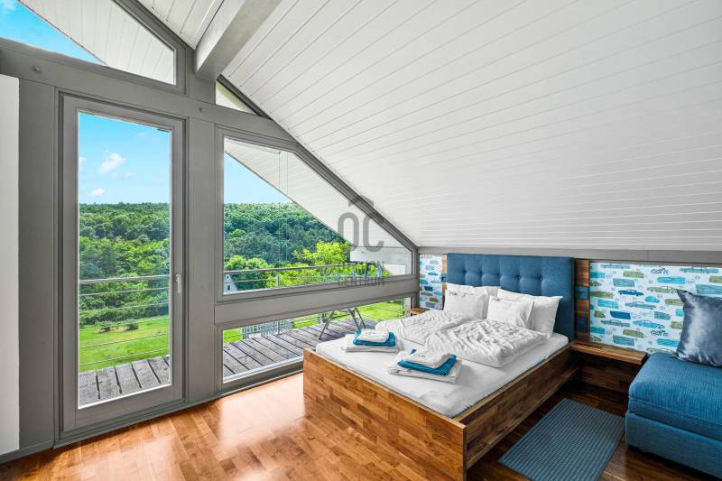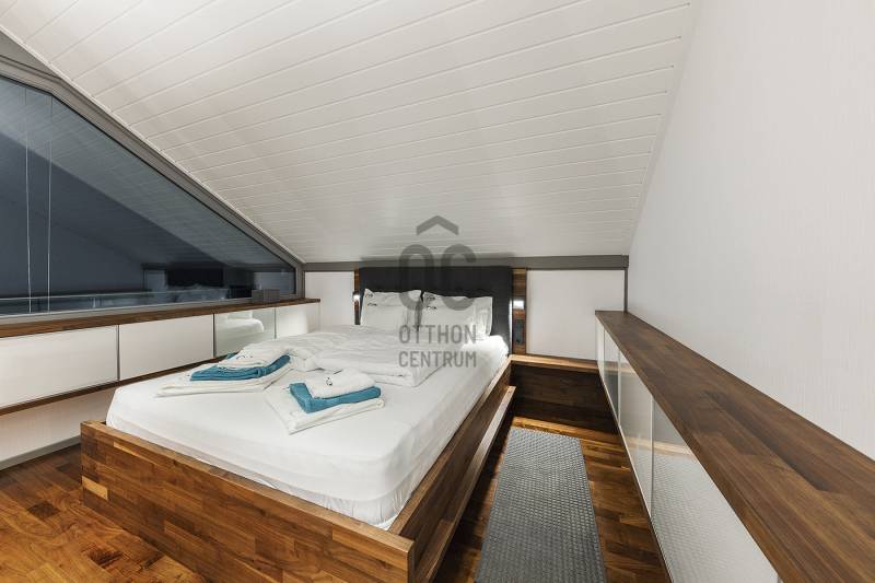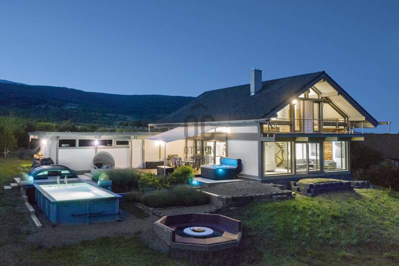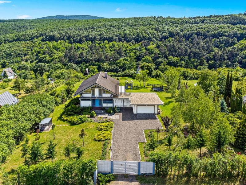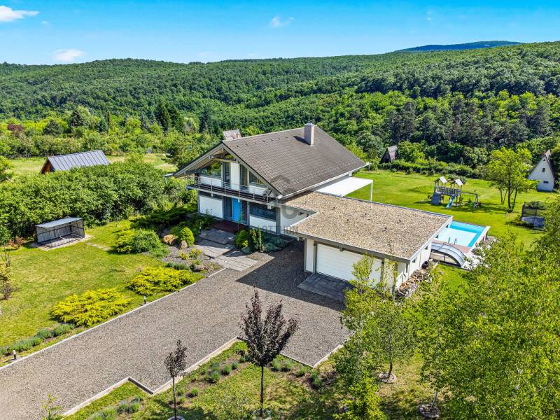 „BÉKÉS”, „BENT VAN A TERMÉSZET A NAPPALIBAN”, „HARMONIKUS” „KÉNYELMES”, „MINŐSÉGI ÉLETTÉR, MÉG PIHENÉS ALATT IS”, „KOMPROMISSZUM NÉLKÜLI KIALAKÍTÁS”, „EGYEDÜLÁLLÓ””Ezeket a jelzőket kapta ez fantasztikus ház azoktól a vendégektől, akik az elmúlt három évben itt töltöttek néhány napot, vagy hetet. Mert ez a páratlan mátrafüredi ház nem csak egy család otthona volt, de néhány évig vendégházként is tökéletesen üzemelt. Aki egyszer itt járt, többször is visszatért és ajánlotta tovább az ismerőseinek. Most egy új életciklusa következik a háznak és új tulajdonosát várja, aki birtokba veszi majd a családjával, vagy tovább viszi az üzletet és vendégházként viszi tovább. Az üzemeltető csapat örömmel dolgozna tovább az új tulajdonossal az „Ablak a napra vendégház” működésében.Ez a csodás luxusház Budapesttől mindössze 1 órás autóútra elérhető. Az műúttól kb 900m-es murvás úton jutunk el, az 7100 m2-es részben egyenes, részben enyhén lankás, zártkert besorolású, körbekerített telekig. Gyakori vendégek itt az őzek, a nyuszik és a muflonok is. Az erdőre panorámás telekre egy a környezetbe illő és rendkívül energiahatékony házat álmodtak a tulajdonosok. Alapos utánajárással, közel öt évig, számos alternatívát végig néztek és számoltak, míg a német fachwerk gerendavázas építési technológia mellett tették le a voksukat, amit nem is bántak meg az elmúlt évek tapasztalatai alapján. A 28 cm vastag könnyűszerkezetes falak minden olyan tulajdonsággal rendelkeznek, amit a hagyományos építési módban is elvárható.A házba akár a főbejáraton, akár a garázson keresztül is beléphetünk. Az alsó lakószint 117m2-alapterülete. Itt található a kényelmes konyha, étkező és nappali egysége. Vendégszoba és egy fürdőszoba is helyet kapott. Az egész házra jellemző, hogy minden helyiségben beépített szekrények vannak, tele pakolásra, tárolásra alkalmas felületekkel. Minden oldalról a rengeteg ablaknak köszönhetően, szinte bejön a házba a természet. A 54m2-es szuterén szinten kapott helyet a szauna, gépészeti helyiség és a mosókonyha. Az emeleten pedig két teljes értékű szobán és zuhanyzós fürdőszobán túl, egy hatalmas master bedroom nyújtja a tökéletes komfortérzést. Összesen négy hálószoba és három fürdőszoba található a házban. Minden helyiségben padlófűtés biztosítja télen a meleget, nyáron a hideget, melyet egy új DAIKIN hőszivattyú biztosít, melynek költsége a geotarifának köszönhetően, extra alacsony.A földszinten hatalmas elhúzható ajtón át kiléphetünk a kényelmes teraszra, ahol a 4 személyes jakuzzi felett egy állítható lamellás pergola biztosítja az árnyékot. A fűthető, 6x3 méteres medence az év 7-8 hónapjában használható. A hatalmas kertben sütögető, gyerekjátszó, trambulin biztosítja a pihenést, szórakozást. Sőt még egy kisebb focipályának is lenne hely, ha igény lenne rá. A már külföldön élő tulajdonosok, nehéz szívvel válnak meg a háztól.:„Ez egy különleges ház, amelyben a luxus és a környezetbarát megoldások egyensúlyt teremtenek. Rengeteg, a megszokottól eltérő környezetkímélő és energiagazdaságos megoldást építettünk be. Eredetileg a saját kis családunk mindennapi élete számára terveztük, szívvel-lélekkel. Beleálmodtunk mindent, ami egy modern otthonban fontos, spórolás nélkül”Ezt az álmot élheti most tovább a következő tulajdonos. Aki ide egyszer eljön, nem nagyon akar elmenni….További információkért, várom megtisztelő érdeklődését |