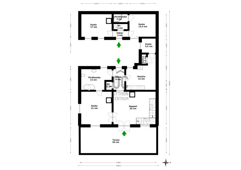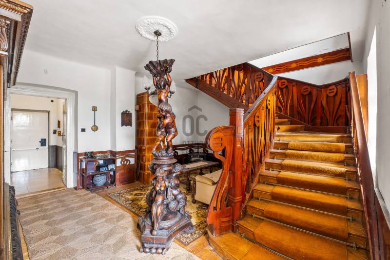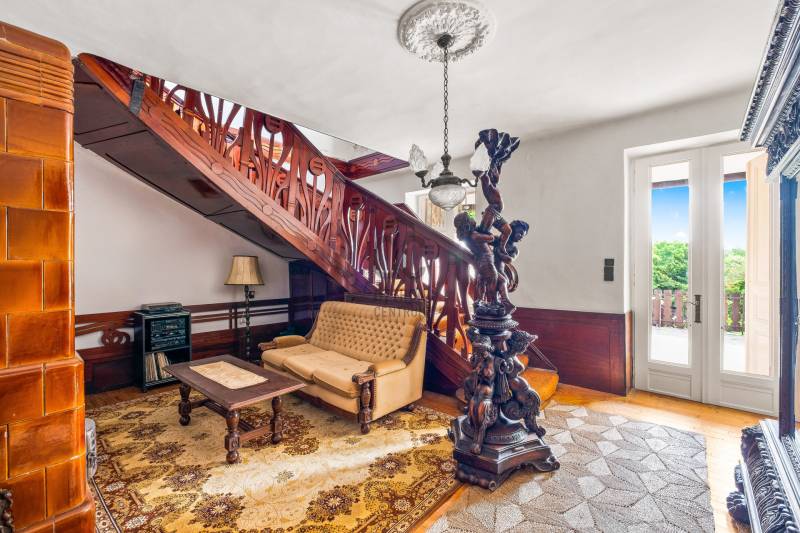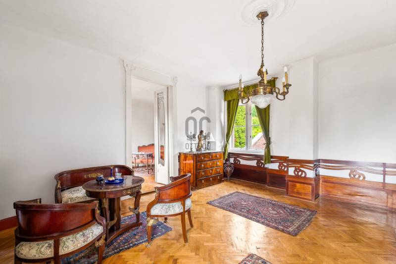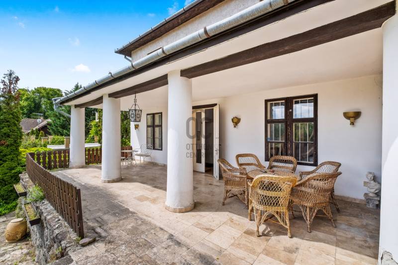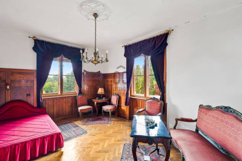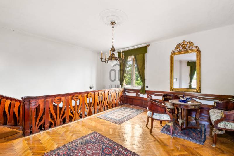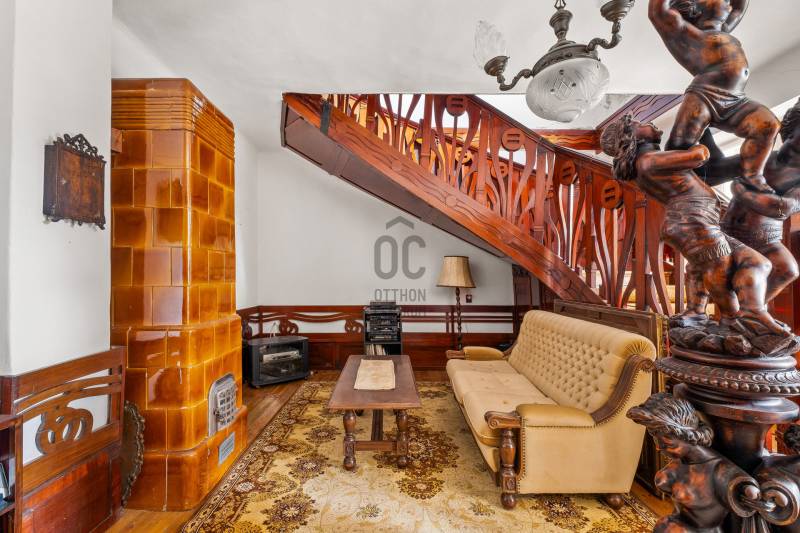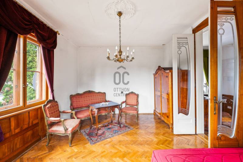 ELEGÁNS, POLGÁRI STÍLUSÚ VILLAÉPÜLET LEÁNYFALU KÖZPONTJÁBAN!Leányfalu központjában, a Móricz Zsigmond úton ELADÓ egy kivételes adottságokkal rendelkező, igazi múltat hordozó, patinás polgári stílusú ház!Az ingatlan különlegességét nem csak az egyedi megjelenése és tágas terei adják, hanem az is, hogy az 1940-es években Rimanóczy Gyula, a modern magyar építészet egyik legjelentősebb alakja tervezte.A 852 nm-es telken álló, kétszintes épület stílusosan ötvözi a régi idők eleganciáját és a klasszikus polgári hangulatot.Az ingatlan rendkívül egyedi, architektúrája és térszervezése kiváló alapot kínál egy színvonalas családi otthon vagy szolgáltató tevékenység - rendelő, iroda, szálláshely - kialakítására!Az épület elosztása:- Bejárat egy nagyméretű, 50 nm-es, tornácos teraszon keresztül, amely az ingatlan egyik meghatározó eleme- A földszinten egy tágas nappali cserépkályhával, egy hálószoba, nagyméretű fürdőszoba, konyha, külön wc, kamra, és egy félszoba (korábbi cselédszoba)- Az emeletre egy impozáns lépcső vezet fel, ahol kettő nagyméretű, világos szoba kapott helyet- A belmagasság mindkét szinten 3 méter, ami tovább növeli a térérzetet és az eleganciát.Műszaki jellemzők:- Fűtés vegyes tüzelésű , dekoratív cserépkályhákkal megoldott (gáz az utcán elérhető, telken belül nincs bevezetve)- Eredeti, régi fa nyílászárók- Burkolat jellemzően klasszikus fa padló és parketta- Tárolási lehetőségként egy pince, egy zárt garázs és 3-4 autó számára parkolási lehetőség a telken belül megoldottA telken belül, egy belső udvaron és a nagy ház mellett kívülről is megközelíthető egy különálló lakrész, ami korábban kertészlak, majd fogorvosi rendelőként funkcionált. Itt jelenleg egy tágas, cserépkályhával ellátott szoba, egy étkezős konyha, egy zuhanyzós fürdőszoba és egy különálló wc található. Ez az épületrész is számos lehetőséget rejt - ideális külön lakrésznek, vendégháznak, irodának, szolgáltatás célra vagy újra rendelőnek.A ház közvetlenül a 11-es főút mellett helyezkedik el, jól megközelíthető, jól látható helyen. A település központja, iskola, üzletek, buszmegálló pár perces sétára elérhető. A Duna-part szintén könnyen, pár méterre megközelíthető, így az otthoni nyugalom és a komfortos közlekedés egyszerre adott.Olyan új tulajdonost keresünk, aki egy stílusos, nagypolgári múltú, különleges hangulatú házat keres a Dunakanyar kapujában , amely egyben otthon és értékálló befektetés is!Aki vállalkozást, rendelőt, szálláshelyet vagy szolgáltatói egységet alakítana ki egy jól látható, központi helyen!Aki többgenerációs otthont keres, ahol külön lakrészben mégis egy helyen képzeli el jövőjét a családtagokkal!Ez az ingatlan valódi ritkaság a piacon! Történelmi érték, különleges hangulat, központi lokáció, mindez egy építészettörténeti jelentőségű házban!Az ingatlan tehermentes, rövid időn belül birtokba vehető!További információkért és megtekintési szándékkal kapcsolatban várom hívását! |