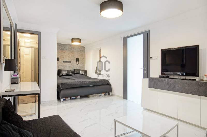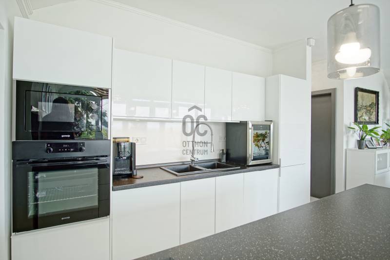 Örökpanoráma, modern otthon, kivételes lokáció – SzentendrénSzentendrén, a Pap-szigettel szemben, a hegyoldalban, páratlan dunai panorámával eladó egy 130 m²-es, kétszintes családi ház, amely ritka harmóniát kínál a természet közelsége és a korszerű otthon kényelme között.Néhány főbb paraméter a teljesség igénye nélkül:- Az emeleti nappaliból egészen Békásmegyertől Újpesten és Dunakeszin át Gödig ellátni – a látvány minden évszakban lenyűgöző, a reggeli kávé vagy az esti borozás itt igazi élmény.- Az ingatlan jelenlegi elrendezése: nappali + 2 szoba, de bontás nélkül is könnyedén 4 szobássá alakítható, így ideális választás lehet kisebb családnak, vagy akár otthoni irodát keresőknek is.- A ház 2023-ra teljeskörű felújításon esett át: megtörtént a villamos- és vízhálózat cseréje, az alapterület hivatalos bővítése, és kiépítésre került egy 7,8 kW-os napelemes rendszer is. Az ingatlan érvényes használatbavételi engedéllyel rendelkezik.- Az ingatlan fűtését korszerű, elektromos padlófűtés biztosítja ( helyiségenként külön termosztáttal szabályozható), amelyet a napelemes rendszer egészít ki – így a ház energiaellátása részben megújuló forrásból történik. A megfelelő szigetelésnek és az energiatakarékos megoldásoknak köszönhetően a rezsiköltség rendkívül alacsony, a fűtés pedig fenntarthatóvá válik, fosszilis energiaforrások használata nélkül.- A hűtésről modern, hűtő-fűtő klímaberendezés gondoskodik.- A ház szigetelése kiemelkedő: 15 cm grafitos külső szigetelés, 15 cm kőzetgyapotos tető- és födémszigetelés, háromrétegű hőszigetelt műanyag nyílászárók.- Energetikailag: A++- A melegvizet két Ariston okosbojler szolgáltatja, a rendszer a jövőben napkollektorral is bővíthető, az előkészítés megtörtént. Az emeleti WC-ben bidézuhany és piszoár is helyet kapott.- Az ingatlan riasztóval védett, távfelügyelethez csatlakoztatva. Korszerű szúnyoghálóval szerelt ablakok, optikai internet és 5G elérhetőség is rendelkezésre áll.- Az elektromos tolókapun keresztül az udvari beállóhoz jutunk, ahol 4-5 autó parkolása is kényelmesen megoldható. A házhoz egy száraz, körülbelül 20 m²-es pince és egy különálló szerszámtároló is tartozik.Az ingatlan ára: 157,9 millió forint, amely tartalmazza a beépített bútorokat és a teljes konyhai gépesítést.Ez az ingatlan kizárólag az Otthon Centrum egyedi konstrukciójú „Felező portfóliójában” található meg.Megtekintés kizárólag előzetes egyeztetéssel lehetséges. A panoráma és a miliő megéri a felvezető utat – de ezt személyesen fogja igazán érezni. Várom a hívását! Amennyiben nem tudom felvenni, visszahívom, amint lehetőségem adódik.Ez az ingatlan a \"Felező csomag\" megbízási portfólióhoz tartozik. Részletek az Otthon Centrum weboldalán. |