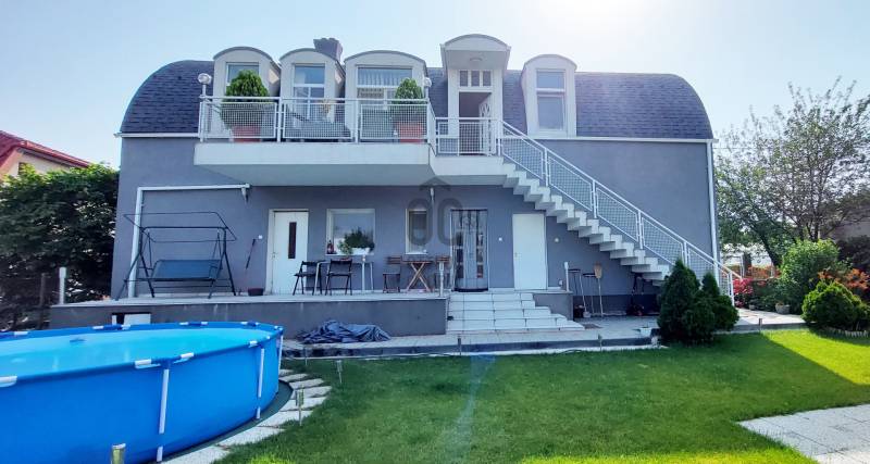 Szeretne egy olyan otthont, amely egyszerre modern, kényelmes és akár három generáció számára is tökéletes?Örömmel írom, hogy ez esetben most megtalálta!Budaörs egyik kedvelt részén eladó egy jó állapotú kétszintes ingatlan, mely jelenleg 3 különálló lakással rendelkezik.Ideális választás lehet ez a lehetőség Ön számára, akár saját otthont keres, akár befektetési céllal keres ingatlant.TELEKRŐL:- 429 nm, pont ideális méretű ahhoz, hogy megerőltető kerti munka nélkül élvezhesse előnyeit,- gyönyörűen parkosított, virágzó és örökzöld növényekkel beültetett kert,- a garázsban két autó számára van beállási lehetőség,- további autó számára a parkolás a kertben illetve a ház előtt is lehetséges,- kerti sütögetésre alkalmas rész és tároló is található a telken.HÁZRÓL:- A házat Ybl díjas építész (Kapy Jenő) tervezte, melynek jellegzetessége főként a belső udvar felőli részen látszik, de ennek köszönhető a felső szint 90 %-s térkihasználhatósága is. - bruttó 200, nettó 167 négyzetméteres,- két szintes, a két szint között monolit födém található,- a földszinten két, kertkapcsolatos garzon lakás található, ami természetesen egybenyitható, felújítandó állapotú,- emeleten egy nappali+3 szobás, nagyon világos, két erkélyes, szép állapotú lakás található,- műanyag hang- és hőszigetelt nyílászárók, fa beltéri ajtók,- fűtése gáz cirkó padlófűtéssel és radiátoros hőleadóval az emeleten,- külön gázkazán fűti a földszinti lakásokat, radiátoros hőleadóval,- a villany a felsző szinten 3 fázisú, az alsó szinten 1 fázisú,- az ingatlan per és tehermentes,- építészeti besorolása miatt még bővíthető az épület, egy plusz emelet is építhető még rá.MŰSZAKI ÁLLAPOTÁRÓL RÖVIDEN:- A családi ház belül az emeleti részen kifogástalan állapotú, külső felújítása 2018-ban történt meg,- homlokzat grafitos dryvit szigetelésű, Baumit, szilikonos színezőanyagú,- külső burkolatok, fagyálló greslapok, a ház körül, Semmelrock térkövek vannak,- a ház építésekor is, mint a felújításkor, magas minőségű, kiemelt kategóriájú anyagokat használtak,- légkondicionált,- 30 cm-es falai vannak,- rézcsövek, külön körön futó fűtésrendszer, Grundfos keringtető szivattyú,- műanyag hang- és hőszigetelt nyílászárók,- monolit födém, öntartó szerkezetű lépcső és erkélyek, stb.A környék ellátottsága kiváló, számos bolt, étterem és szolgáltatás található a közelben, így minden szükséges kényelem könnyen elérhető. A közlekedés kitűnő, a város központja és a főbb közlekedési csomópontok gyorsan megközelíthetők, legyen szó autós vagy tömegközlekedési lehetőségekről.Bízom benne, hogy ez az ingatlan felkeltette érdeklődését. Igény esetén egyedi, személyre szabott, kedvezményes hitelek ügyintézésében szakértő kollégám tud majd segíteni Önnek.Amennyiben további kérdései lennének, várom hívását, hiszen örömmel állok rendelkezésére, hogy segítsek Önnek a legjobb döntés meghozatalában. |