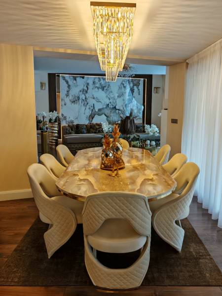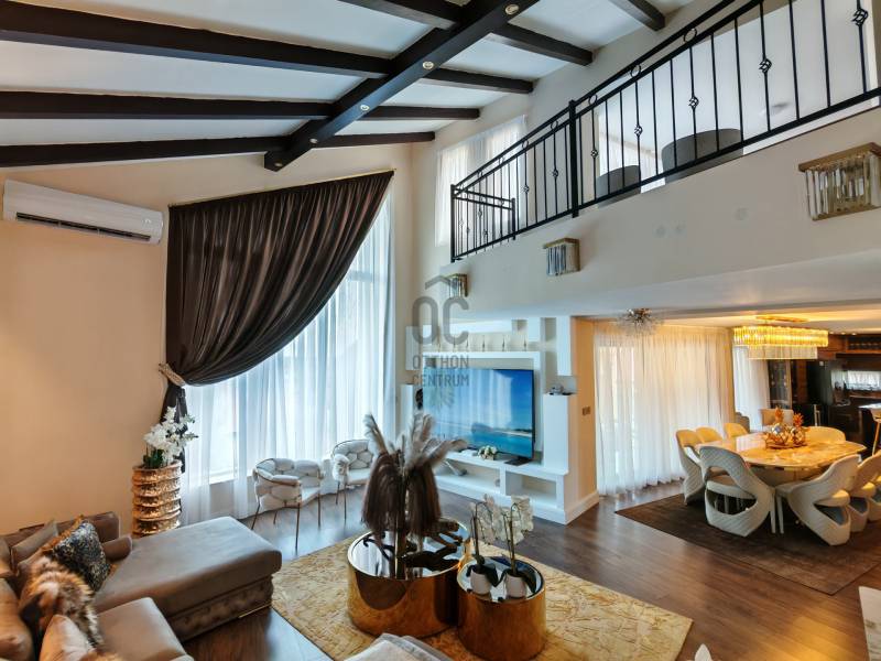Meghitt nyári esték, pezsgő baráti összejövetelek, bensőséges szombat délutánok együtt a szeretteinkkel...Mindehhez a tökéles helyszín ez a 2024-ben épült gyönyörű diósdi villa, különleges térkialakítással és megfizethetetlen örökpanorámával! Méretéből és kialakításából adódóan akár 3 generáció számára is tökéletes. Kétszinten összesen 157 nm terasszal rendelkezik és a 882 nm-es telek egyéb lehetőségeket is tartogat magában. A belső kialakítás rendkívül igényes, magas minőségű bútorokkal és kiegészítőkkel. A lélegzetelállító berendezésről és igényes kialakításról a Zabrano tervezői gondoskodtak. A kanapéról felváltva csodálható délután a napfényes átriumos nappalit fantasztikus hangulata, este a pislákoló budai fények a szinte gerendákig nyújtózkodó ablakokon át.Főbb jellemzők: - 2024-ben épült, falazat: 38-as tégla - nettó 357 nm, bruttó 514 nm - 7 szoba, amelyből 4 külön nyíló - 3 fürdőszoba, 3 külön WC - terasz: 0. szinten: 37 nm 1. szinten: 120 nm, ahonnan a dunai panorámát élvezhető - álom konyha: hatalmas sziget dupla mosogató dupla főzőlap Miele és AEG konyhai gépek - belső terek kialakítása, lakberendezés: Zebrano - Tágas, napfényes terek - fűtés: padlófűtés amely működtetésére két lehetőség közül választhatunk. A gázkazán mellett egy kandalló beszerelésével a teljes fűtésirendszer erre is könnyedén átkapcsolható. - nagy teljesítményű hűtő-fűtő klíma - garázs 2 autó számára, további 2 nyitott főhely a telken belül - rendezett térkövezett előkert könnyíti a megállást a ház előtt - csendes, igényes környékJöjjön el, csodálja meg, szeressen bele!- - -Adatbázisunkban további több ezer ingatlanból választhat, hívjon bizalommal, hogy megtaláljuk a legmegfelelőbbet!Teljes körű és díjmentes hitel-ügyintézéssel áll rendelkezésére szakértő kollégánk. Kérje személyre szabott ajánlatunkat! |