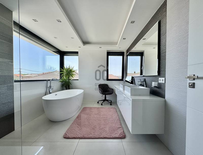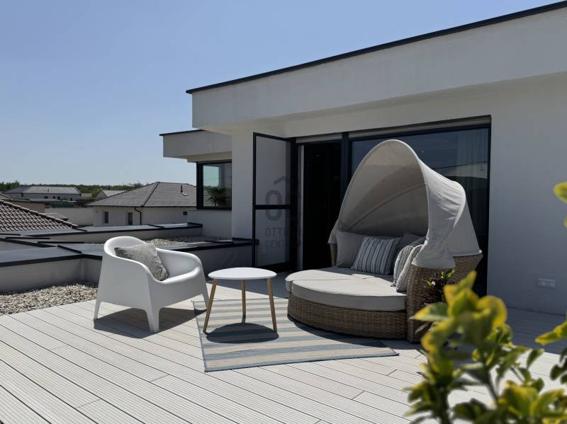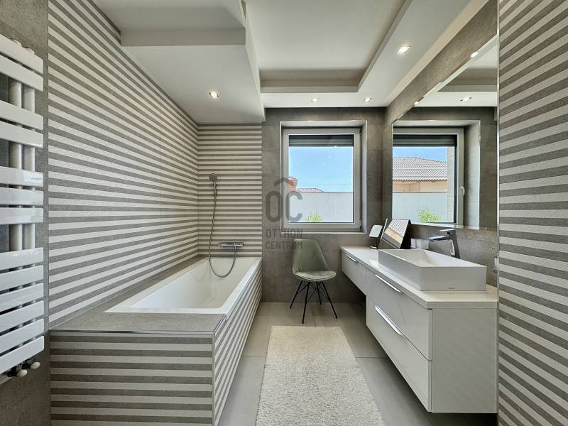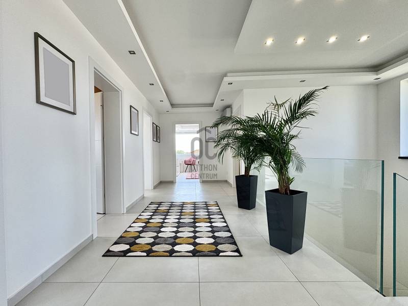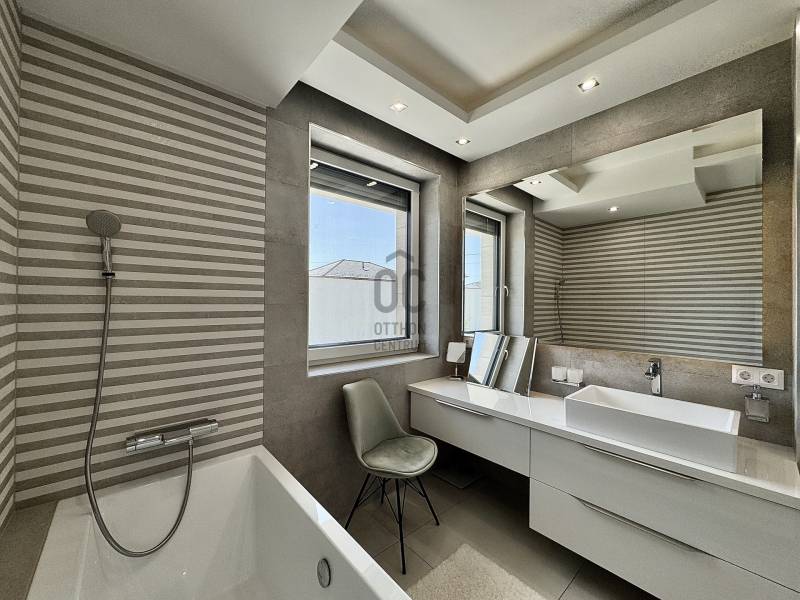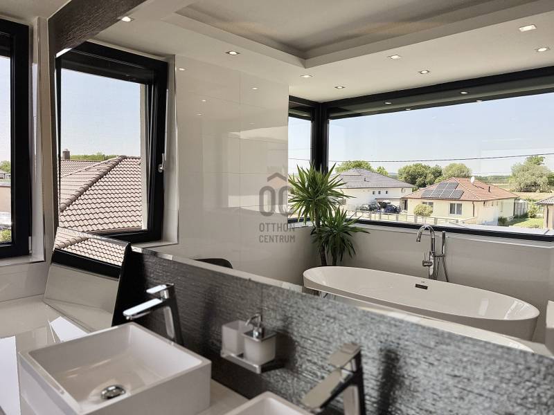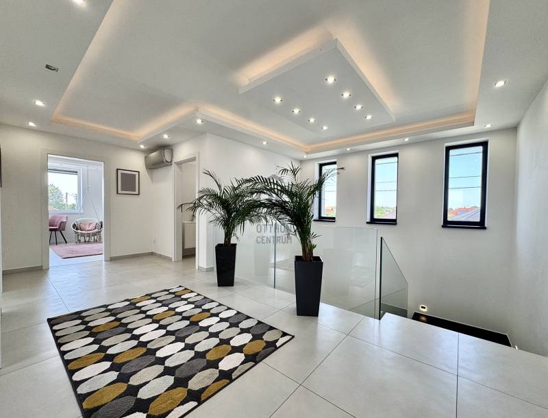 Kategóriájában egyedül álló, hatékony, korszerű és problémamentes! Minden paraméterében egyedi tervezésű, átgondolt, minőségi kivitelezés eredménye.Ez az ingatlan pedig, * Koroncón, idilli, új építésű, egzisztenciálisan is kielégítő környezetben* Átmenő forgalomtól garantáltan mentes, magán úton, egy 1011nm-es ideális méretű telken található* 2023-ban épült, nettó 297 nm-es lakótérrel* Nappali + 4 hálószobával rendelkező, szintenként fürdő wc-vel, gardróbbal, tárolókkal és egy 38nm nagyságú fűtött garázzsal ellátottA ház varázsa, igényessége, egyértelműen a felhasznált anyagminőségben és műszaki tartalomban nyilvánul meg : * 30cm-es Porotherm Klíma tégla* 20cm-es homlokzat hőszigetelés* monolit vasbeton födémek, kavicsolt lapos tetővel, 35 cm Dryvit szigeteléssel* Egyedi gyártású nyílászárók, alumínium bejárati ajtó, Kömmerling 88mm Plusz, 6 légkamrás, meleg peremes ablakok* Alumínium zsaluziák és redőnyök integrált szúnyoghálókkal távirányítással, alumínium toló-emelő terasz ajtók* 7 rétegben festett, hangszigetelt beltéri tömörfa ajtók* 25cm-es öntött, vasbeton lépcső, 4cm vastagságú tömör fa lapozással, edzett biztonsági üvegkorláttal * Hörmann Silent szekcionált garázskapuAz extra tartalom, jelen esetben pedig alap felszereltség ! * okos ház előkészítés* napelem előkészítés* három fázis, 3x20Ah kapacitással* minden helyiségében UTP, Coax kábelezés* 5.1 rendszer falba süllyesztve* A házhoz érkező vezetékek pedig, mind földkábelek/ Termosztatikus Ibox falba integrált csaptelepek/ Szabadon álló kád, álló csapteleppel/ Melegvíztároló és keringető rendszer, időzítővel/ Wellis Jakuzzi, beépített hangrendszerrel, telefonról működtethető vezérléssel/ Szintenként, Gree Split klímaberendezés 5,4Kw teljesítménnyelA telek ideális nagyságú, gondozható, saroktelek parcella. Az udvaron első osztályú minőségben előkészített, 100%-ban vízzáró, csempézhető, gátbeton vasalt medence, 5*8m-es belső mérettel, feszített víztükörre kialakítva, előkészítve a fűtésre és belső világításra. A kertben automata öntöző rendszer, rejtett csepegtetéssel, gyepszőnyeg alatt vakondháló, az impregnált 60mm-es nagy teherbírású térkövezés alatt pedig 25 cm-es vasbeton. Az egyelőre befejezésre váró részék (mely magában foglalja a medence, hátsó kert és a melléképületet) végső formában történő, kulcsrakész átadását, igény esetén biztosítja az ingatlan tulajdonosa, mint építőipari vállalkozó. A birtokba adás rugalmas, az ingatlan tehermentes, a jogi háttér tisztázott. Az ingatlan pedig a Győr környéki prémium kínálat egyik kiemelkedő darabja. Vásárolj magadnak álmot! Spórold meg az idődet és az energiádat, ez a családi ház, garantáltan kielégíti minden igényedet. Keress bizalommal a részletekkel kapcsolatban, mivel leendő ingatlanos kulcsai, nálam vannak!Hitelre van szüksége? Tudunk segíteni!Az Otthon Centrum az ország egyik legnagyobb és legmegbízhatóbb hitelközvetítőjeként, teljes körű és díjmentes hitelügyintézéssel, biztosításkötéssel áll rendelkezésére!Kérje személyre szabott ajánlatunkat Kollégáinktól!Ez az ingatlan a \"Felező csomag\" megbízási portfólióhoz tartozik. Részletek az Otthon Centrum weboldalán. |