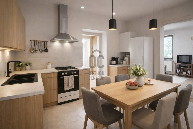 Budaörs szívében, központhoz közeli, ám csendes környéken található ez a nettó 79 négyzetméteres, felújítandó ikerház-fél, amely tökéletes választás lehet azok számára, akik új otthonra vágynak vagy befektetési lehetőséget keresnek. Az ingatlan egy 815 négyzetméteres telken helyezkedik el, amelyből 250 m2 saját használatú. Közös a garázsokhoz vezető út, és a tároló. A házban jelenleg három tágas szoba, étkezős konyha, társalgó, előszoba, két kamra, két mosdó található. A ház alatt tágas nyári konyha és pince van és a tetőtér beépíthető, -akár két szoba, fürdő, tetőterasz is kialakítható- ahonnan szép panoráma tárul elénk. Fűtését gáz cirkó rendszer biztosítja, amely gazdaságos és hatékony megoldás a téli hónapokban. A 7,2 négyzetméteres terasz tökéletes helyszín a reggeli kávézásokhoz vagy a nyári estéken való kikapcsolódáshoz. Az ingatlanhoz tartozik egy saját, tágas garázs is -24 m2-, amely egy autó tárolására alkalmas, valamint tároló, amely segít rendben tartani a kerti eszközöket. Felújítása után a ház igazi nagybetűs és kényelmes otthonná válhat, amely világos és mindenki számára kényelmes. A ház osztatlan közös tulajdonban áll, és ügyvédi megosztási szerződéssel rendelkezik, melyet az új tulajdonossal -akár új paraméterekkel - újra lehet szerkeszteni. Elhelyezkedése kiváló, hiszen a közelben minden szükséges megtalálható, mint például boltok, iskolák, óvodák, uszoda akár sétálva is kényelmesen elérhetőek.A tömegközlekedés kitűnő : a Kötő utcai buszmegálló 150 méter, -40-88-140-188-240-287-940-972-es buszok- így a fővárosba való bejárás sem jelent problémát. A csendes utcák és a rendezett kert garantálják a nyugodt, családias légkört, amely ideális a mindennapi élethez. Ez a tehermentes ingatlan nagyszerű lehetőséget kínál, hogy valóra váltsa álmait, legyen szó saját otthonról vagy egy jövedelmező befektetésről. Ne habozzon, hiszen az ilyen lehetőségek gyorsan elkelnek! Amennyiben bármilyen kérdése merülne fel az ingatlannal kapcsolatban, bizalommal keressen minket, szívesen állunk rendelkezésére. Az ingatlan megtekintésére előre egyeztetett időpontban van lehetőség, hogy Ön is megtapasztalhassa ezt a sok lehetőséget tartogató házat, amely új otthona lehet. |