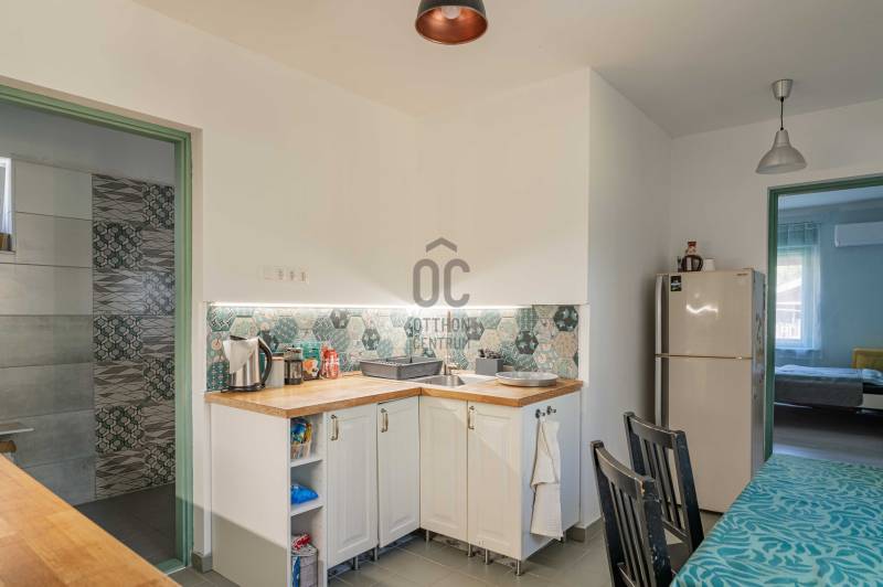 LokációA ház csendes, nyugodt környezetben található, ideális választás lehet vidéki nyugalomra vágyóknak, kis családoknak, pároknak vagy akár nyaralónak is.Telek mérete: 860 m²Lakótér (nettó): 58 m²Helyiségek: 2 hálószoba | 1 fürdőszoba | konyha-étkezőÁllapot: Belseje frissen felújítva, külseje jó állapotúNyílászárók: Eredeti fa ablakok, jó állapotbanAz ingatlanrólEz a hangulatos, 58 m²-es ház teljes belső felújításon esett át, modern, mégis otthonos. A világos terek, letisztult színek és praktikus elrendezés kényelmet biztosít a mindennapokra. A két hálószoba, az új fürdőszoba, valamint az ízléses, gépesített konyha-étkező ideális elosztású.Külső térA tágas, 860 m²-es telek gondozott, árnyékos terasza tökéletes helyszíne lehet reggeli kávézásoknak vagy baráti összejöveteleknek. A ház külső homlokzata jó állapotú, a klasszikus vidéki hangulatot megőrző eredeti fa nyílászárók pedig karaktert adnak az épületnek.Felszereltség • Klímaberendezés • Modern világítás • Funkcionálisan berendezett fürdőszoba • Gépiesített konyha • Bútorozott teraszTovábbi lehetőségekA nagy telek lehetőséget biztosít bővítésre, kertészkedésre vagy akár egy kis vendégház kialakítására is.Ne hagyja ki ezt a kivételes lehetőséget!Ide csak be kell költözni – nyugalom, természetközeliség és stílus egy helyen.További információért és megtekintésért keressen bizalommal! |