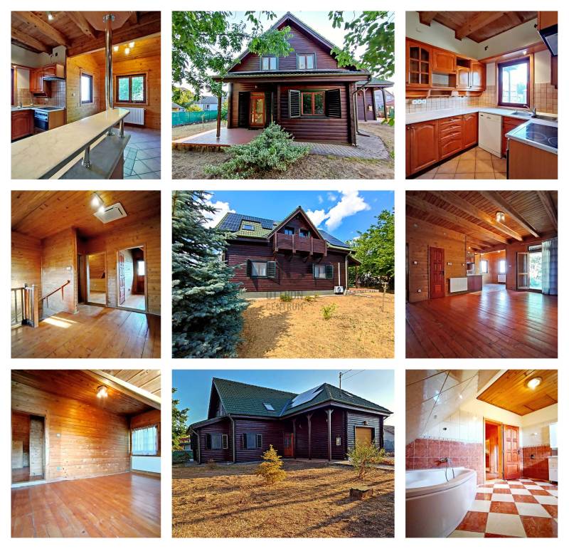ANNAK, AKI A TERMÉSZET IGAZI ÉRINTÉSÉRE VÁGYIK ÉS SZERETNÉ „CSAK EGY KARNYÚJTÁSNYI TÁVOLSÁGRA” MAGA MÖGÖTT HAGYNI A FŐVÁROS ÁLLANDÓ PÖRGÉSÉT ÉS ZAJÁT, AHOL A CSEND, A NYUGALOM, A ZÖLD KÖRNYEZET ÉS AZ ÉLHETŐSÉG „HÁZA ÉS OTTHONA” VÁRJA MAJD NAP MINT NAP ÖNT ÉS A KEDVES CSALÁDJÁT IS HAZA, AKKOR MOST JÓL FIGYELJEN… ...MOGYORÓDON ELADÓ EGY KÍVÜL-BELÜL TELJESEN FENYŐFÁBÓL ÉPÍTETT, BELSŐ KÉTSZINTES, NETTÓ 170 M2-ES (BRUTTÓ 190 M2-ES), 6 EGÉSZ SZOBÁS (AMERIKAI KONYHÁS ÉTKEZŐS NAPPALI + 5 HÁLÓSZOBÁS), 2 FÜRDŐSZOBÁS (DUPLA KOMFORTOS), TERASZOS, ERKÉLYES ÉS GARÁZSOS, ESZTÉTIKAILAG ÉS MŰSZAKILAG IS NAGYON JÓ / KARBANTARTOTT ÁLLAPOTBAN LÉVŐ „GERENDAHÁZ”, AMELY MINDEN APRÓ RÉSZLETÉVEL TÖKÉLETESEN EGGYÉ VÁLIK AZ ŐT KÖRÜLVEVŐ KÖRNYEZETÉVEL !!!Ez a különleges „nem mindennapi ingatlan” Mogyoród Újfalu településrészén, egy csendes, nyugodt, családi házakkal és kellemes zöld környezettel gazdagon körbevett, rendezett utcában található. Önálló helyrajzi számon nyilvántartott, belterületi, tulajdon jogilag összesen 557 m2-nyi, összközműves telekterülettel rendelkező. Nagyon masszív beton alapra statikailag nagyon stabil vázszerkezettel, a maximális élhetőség jegyében nagyon praktikus belső elosztással megtervezett, teljes egészében (kívül-belül) minőségi skandináv fenyőfából, magas minőségben 2008-ban megépített / kivitelezett és azóta is folyamatosan karbantartott + pár évvel ezelőtt egy 12,3 KW teljesítményű napelemrendszer kiépítésével és a tetőtéri lakószint / tetőszerkezet újra szigetelésével energiahatékonyságában még tovább modernizált / korszerűsített, gázcirkókazánnal működtethető központi fűtésrendszerrel + alternatív megoldásként az új napelemrendszernek köszönhetően lakószintenként hűtő-fűtő klímaberendezésekkel (a megtermelt napenergiával teljes egészében működtetett) is kiegészített, thermo üvegezésű (hőszigetelt) és a mind a négy égtáj felé néző ablakainak köszönhetően egész nap közvetlenül napsütötte, nagyon egyedi és különleges hangulatot árasztó. A családi ház alsó szintjén kapott helyet a - nagyobb részben fedett - 6,4 m2-es teraszkapcsolattal is rendelkező, egy légtérben elhelyezkedő, hatalmas méretű (34,1 m2-es), praktikusan beépített és begépesített (gáztűzhely, mosogatógép, pára-, és szagelszívó berendezés) amerikai konyhás + étkezős nappali, egy pici (1,5 m2-es), de annál praktikusabb kamrahelyiség, egy teljesen külön nyíló 14,1 m2-es hálószoba, az összesen 15,4 m2-en elhelyezkedő - a bejárati előteret / előszobát és egyben egy beépített szekrényes, tágas közlekedőt is magába foglaló rész - amelyből az 5 m2 alapterületű, zuhanyzóval és WC-vel is ellátott, ablakos (szellőztethető / világos) fürdőszoba, a ház (alap)fűtéséért felelős gázkazánnak és a külön a meleg víz ellátásáért felelős - vezérelhető / programozható, falra szerelt, digitális (elektromos) „ARISTON VELIS EVO” típusú, dupla tartályos, öntanuló funkcióval ellátott - villanybojlernek is otthont adó kazánház, valamint a házból közvetlen bejutással rendelkező(!), 24,1 m2 alapterületű, automata (távirányítható) kapuval és fűtéssel(!) is ellátott, egy nagyobb személygépjárműnek vagy akár egy kisebb méretű haszongépjárműnek (pl: kis árúszállító furgon) + további kisebb közlekedési eszközöknek is (pl.: motorkerékpár, hagyományos bicikli, roller, stb...) is nagyon kényelmes és zárt beállást, valamint - további fejlesztéssel / kiépítéssel egy elektromos gépjárműnek a töltési lehetőségét is - biztosító garázshelyiség, ahol a tetőn kiépített napelemrendszer inverter egysége is helyet kapott. A napelemrendszer üzemeltetéséhez - a ház eredetileg 1 fázisú elektromos hálózatát - természetesen 3 fázisúvá bővítették fel! Az ingatlan 2 lakószintjét egy nagyon masszívan megépített, kényelmes és tágas, természetes fénnyel is ellátott (ablakos) lépcsőház köti össze. A ház felső lakószintjén a lépcsőházból egy 9,2 m2-es alapterületű, praktikus beépített szekrénnyel is előtérbe jutunk, amely a megfelelő bútorozással akár egyfajta közösségi térnek / pihenőnek / dolgozónak is kényelmesen és praktikusan kialakítható és használható. Ebből az előtérből egymástól teljesen külön-külön nyílik mind a 4 darab egész méretű hálószoba (13,6 m2 / 13,5 m2 / 13,2 m2 / 8,2 m2) - amelyből 2 hálószoba is közvetlen kijutást biztosít a 4,6 m2 alapterületű, panorámás teraszra - valamint a hatalmas (2 személyes) sarokkáddal, bidével és WC-vel is felszerelt, ablakos (szellőztethető / világos), minden kényelmet kiszolgáló, 8,8 m2 alapterületű fürdőszoba is. A családi ház alapterületén kívül eső - a még így is kényelmesen fennmaradó és bőséges élettere(ke)t kínáló, kb. 450 m2-nyi telekterület - a garázs és az automata (távirányítható) elektromos motorral mozgatott kapu mögötti térkövezett feljáró részen további 1 személygépjárműnek zárt beállási lehetőséggel, de igény / szükség esetén az udvaron akár további parkolási lehetőség(ek) kialakításával rendelkezik, valamint akár „kisebb házi gazdálkodásra” (pl.: konyhakertnek, veteményesnek, fóliasátornak és / vagy üvegháznak, gyümölcsfáknak…) akár „kertészkedésre / pihenésre” (pl.: parkosításra / füvesítésre / virágos kertnek / fáknak / bokroknak / örökzöldeknek, bográcsozós / sütögetős helynek / gyerekeknek házi játszótérnek, családi fürdőmedencének, stb…) is kiválóan alkalmas !!! :)Az ingatlan masszív betonalapra épült. A ház megépítéséhez használt első osztályú, minőségi fenyő faanyagok (kültéri-, és belt