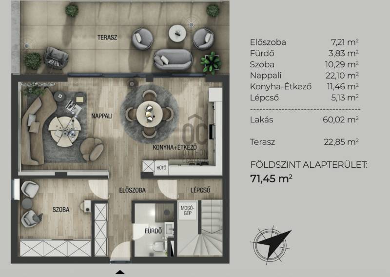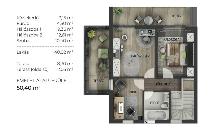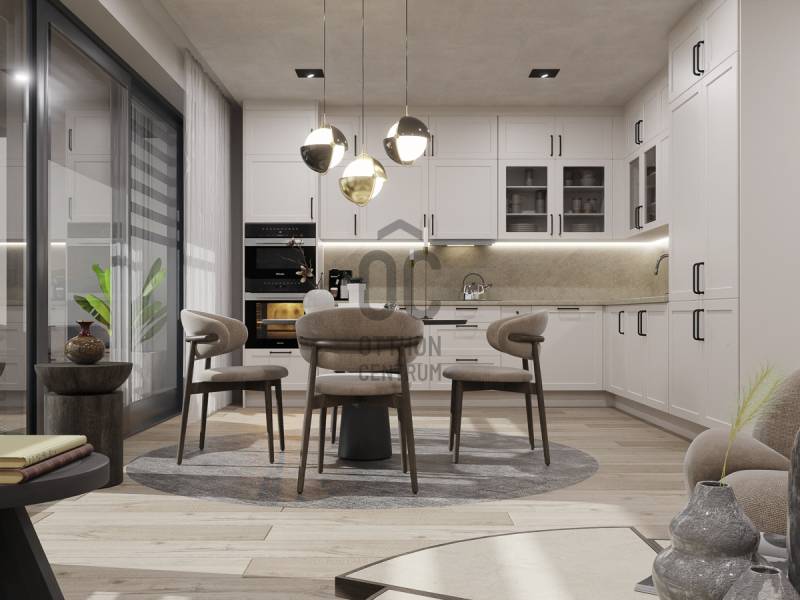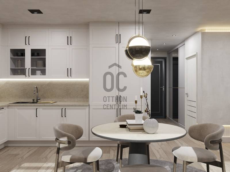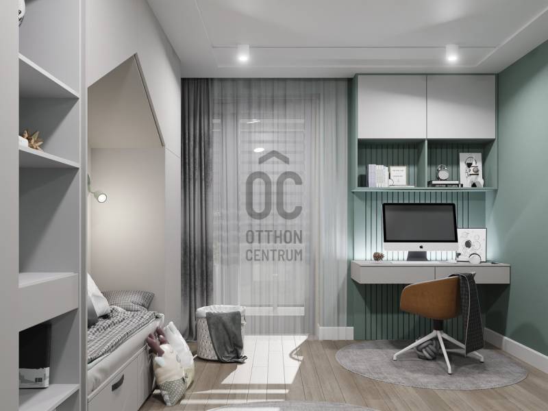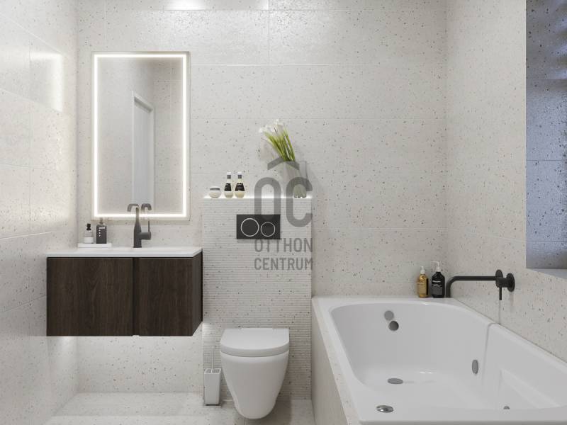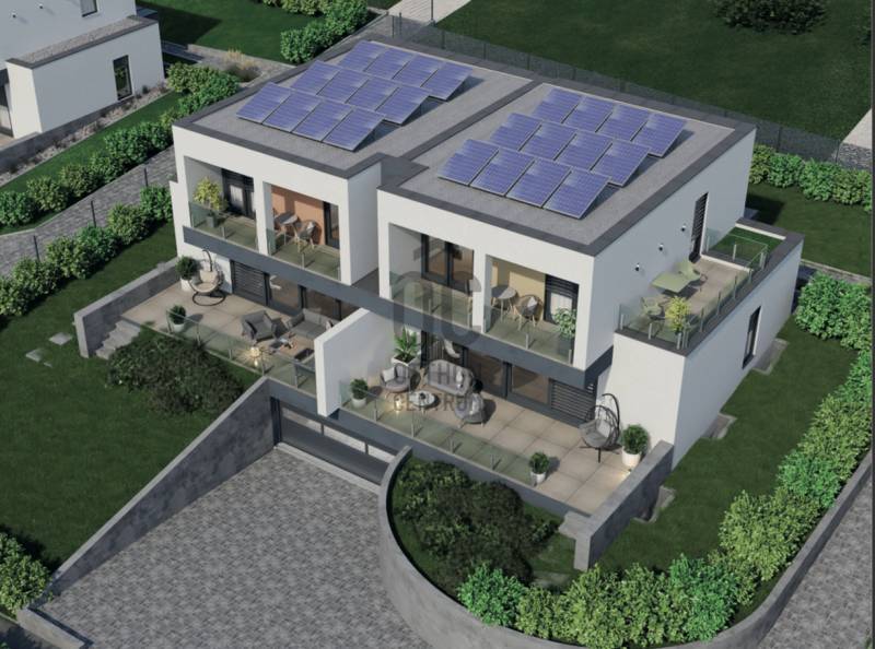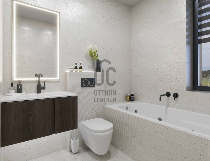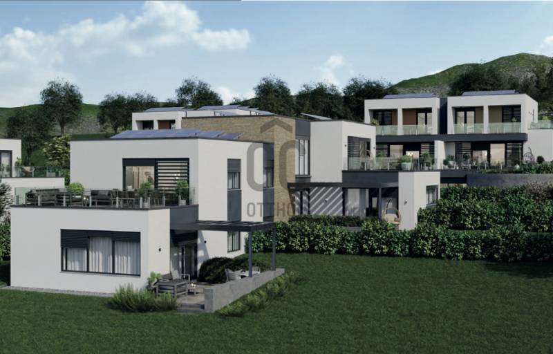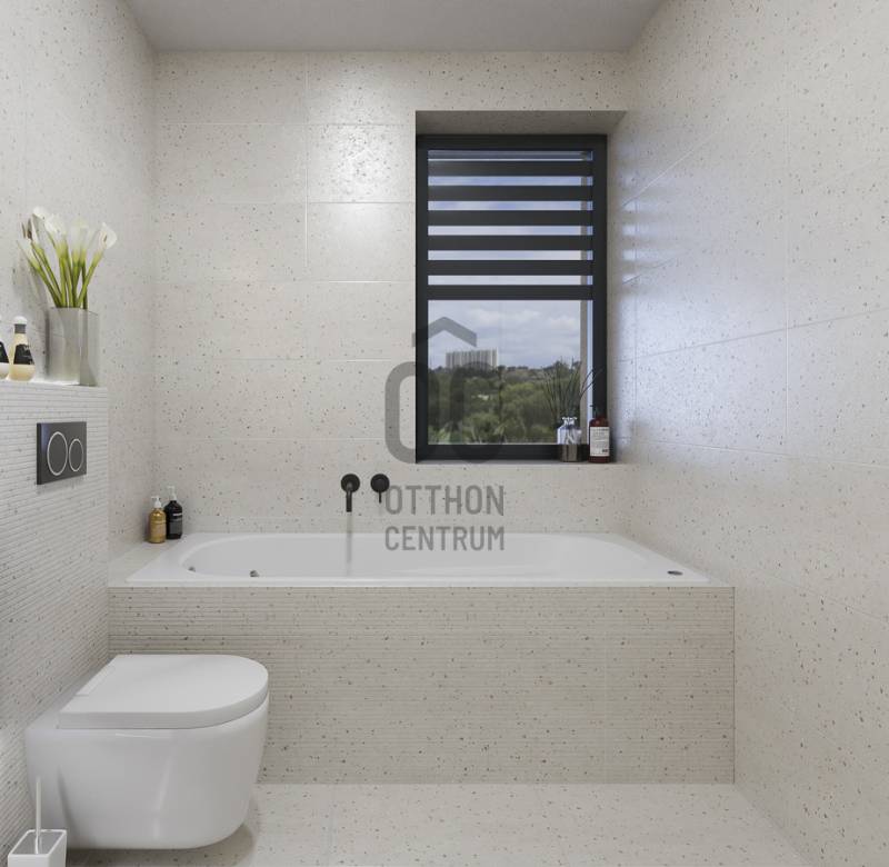 Aranyhegy egyik legszebb részén, a csendes Almáskert utcában kínálunk eladásra egy vadonatúj, panorámás, luxus színvonalú ikerházat.Az ingatlan 121,85 m²-es, két szinten elosztva, összesen 5 szobával és három terasszal rendelkezik. A tágas és világos tereket a délnyugati tájolás és a Hármashatár-hegyre nyíló kilátás teszi igazán különlegessé.Főbb jellemzők:Alapterület: 100 m² ( bruttó 121,85 m² ) (Földszint: 71,45 m² + Emelet: 50,40 m²)Helyiségek száma: 5 szoba, 2 fürdőszoba, amerikai konyhás nappali, előszobaTeraszok: 3 db (összesen több mint 40 m²)Kert: 300 m2Kilátás: Panorámás, zöldövezetiKomfort fokozat: LuxusFűtés: Modern levegő-víz hőszivattyús rendszer padlófűtéssel és fan-coil hűtésselFontosabb műszaki adatok:Szerkezet: Porotherm X-therm falazat, monolit vasbeton födémek, 15 cm hőszigetelésTető: Lapos tető, modern víz- és hőszigeteléssel (Bauder rendszer)Nyílászárók: Háromrétegű, hőszigetelt műanyag ablakok (Ug=0,5 W/m²K), motoros alumínium redőnyökBurkolatok: Prémium greslapok, laminált parketta vagy vinyl padlóFürdők: Magas minőségű szaniterek, vízzáró szigetelésKert: Parkosított kert, térkövezett autóbeállóEnergiahatékonyság: Hőszivattyús fűtés, napelem előkészítésAz ikerházhoz 2 db teremgarázs hely tartozik, amelyek külön megvásárolhatók, darabonként 10 millió Ft-ért. Az ingatlanhoz ajándék tároló (12,6 m²) és 1 db gépkocsi-beálló is jár.Ez az otthon ideális választás mindazoknak, akik értékelik a csendes, zöld környezetet, ugyanakkor fontos számukra a modern, energiatakarékos műszaki tartalom és a magas minőség.Egyéb:A ház körül teljes szivárgó („drén”) rendszer kerül kiépítésre.A csapadékvíz tárolására szolgáló zárt tartály kerül beépítésre.Opció: locsoló rendszerrel történő integrációval.vételár nem tartalmazza:- beépített szekrények, konyhabútor és azok beszerelési költségét- világító testek, lámpák és azok beszerelési költségét- beépített háztartási gépeketA környék ideális a pihenésre, feltöltődésre. A zöld, frisslevegős, madárcsicsergős környezetnek köszönhetően magas minőségű életmódot élhetünk. Pár perc sétatávolságra található vonat és buszmegálló.Egyedi igényekre szabott lakáshitelekkel állunk rendelkezésére. Bankfüggetlen hitelcentrumunk az országban elérhető összes bank és hitelintézet ajánlatát versenyezteti az Ön számára díjmentesen. Munkatársaink nagy szakmai tapasztalattal várják Önt az előre egyeztetett időpontban akár a normál munkaidő után is.Bővebb információért és a megtekintéssel kapcsolatban hívjon bizalommal! |