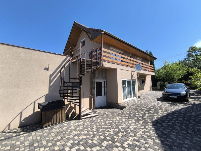 Hévíz szívében, a Zala vármegye gyönyörű környezetében kínálunk eladásra egy kivételes, prémium kivitelezésű családi házat, mely tökéletes választás lehet mindazok számára, akik a nyugodt, csendes környezetet keresik, de mégis közel szeretnének maradni a város nyújtotta lehetőségekhez. Az ingatlan magját egy 150 négyzetméteres alapterülettel képzi, amely öt tágas szobát foglal magában, mindezek mellett 3 teljes ellátottságú apartmant, mely akár szobakiadásra is alkalmas lehet és bőséges teret biztosít a család minden tagja számára, akár több generációnak is. A ház hat fürdőszobával büszkélkedhet, ami különösen praktikus, ha vendégeket fogadna, vagy egyszerűen csak a kényelmet szeretné élvezni. A ház állapota kiváló, a modern fűtési rendszer gáz (cirko), illetve egy cserépkályha biztosítja a kellemes hőmérsékletet télen, míg a 3 darab klíma a nyári melegben nyújt felfrissülést. A tágas nappali LED hangulatvilágítással és beépített bútorokkal, valamint szekrényekkel van felszerelve, ami nemcsak esztétikus, hanem praktikus megoldásokat is kínál. Az ingatlanhoz tartozik egy 50 négyzetméteres panorámás terasz, amely ideális helyszín lehet a családi összejövetelekhez vagy a pihenéshez. A kertben egy 8 személyes jakuzzi is rendelkezésre áll a család, mind a vendégek számára.A rendezett kert és a kerti tároló további előnyöket nyújt, lehetőséget teremtve a szabadidős tevékenységekre. Mindezek mellett található több kerti fedett kiülő, bográcsozó és kemence is. A környék kiemelkedő adottságai között szerepel a kitűnő közlekedési lehetőség, hiszen a város főbb közlekedési csomópontjai könnyen elérhetők. A csendes, felkapott környék biztonságos környezetet biztosít, ahol a család minden tagja nyugodtan élvezheti a mindennapokat. Hévíz híres gyógyfürdőjéről és termálvizes medencéjéről, így a helyi lakosok számára számos kikapcsolódási lehetőség áll rendelkezésre, legyen szó wellnessről, gyógyturizmusról vagy aktív pihenésről. Ez a tehermentes ingatlan tökéletes választás lehet magánszemélyek és befektetők számára is, akik hosszú távú értékálló befektetést keresnek. Az ingatlan iránt érdeklődők bizalommal kereshetnek kérdéseikkel kapcsolatban, hiszen szívesen nyújtunk további információkat vagy akár személyes bemutatót is. Ne hagyja ki ezt a páratlan lehetőséget! |