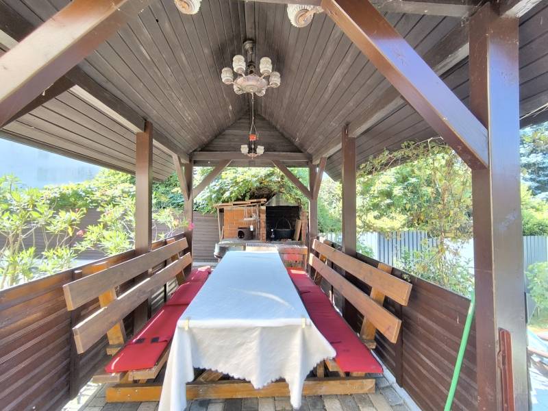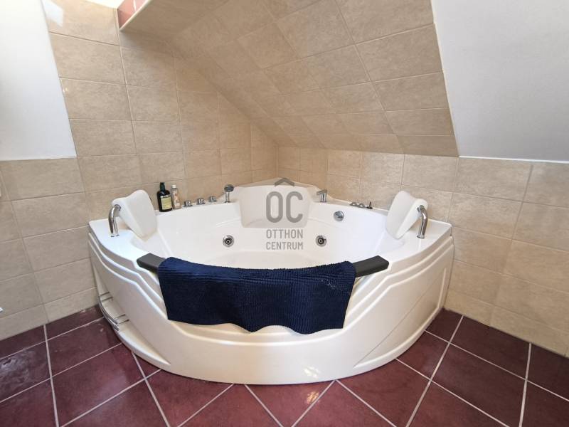 Hévíz szívében, a Zala vármegye gyönyörű környezetében kínálunk eladásra egy kivételes, prémium kivitelezésű családi házat, mely tökéletes választás lehet mindazok számára, akik a nyugodt, csendes környezetet keresik, de mégis közel szeretnének maradni a város nyújtotta lehetőségekhez. Az ingatlan magját egy 150 négyzetméteres alapterülettel képzi, amely öt tágas szobát foglal magában, mindezek mellett 3 teljes ellátottságú apartmant, mely akár szobakiadásra is alkalmas lehet és bőséges teret biztosít a család minden tagja számára, akár több generációnak is. A ház hat fürdőszobával büszkélkedhet, ami különösen praktikus, ha vendégeket fogadna, vagy egyszerűen csak a kényelmet szeretné élvezni. A ház állapota kiváló, a modern fűtési rendszer gáz (cirko), illetve egy cserépkályha biztosítja a kellemes hőmérsékletet télen, míg a 3 darab klíma a nyári melegben nyújt felfrissülést. A tágas nappali LED hangulatvilágítással és beépített bútorokkal, valamint szekrényekkel van felszerelve, ami nemcsak esztétikus, hanem praktikus megoldásokat is kínál. Az ingatlanhoz tartozik egy 50 négyzetméteres panorámás terasz, amely ideális helyszín lehet a családi összejövetelekhez vagy a pihenéshez. A kertben egy 8 személyes jakuzzi is rendelkezésre áll a család, mind a vendégek számára.A rendezett kert és a kerti tároló további előnyöket nyújt, lehetőséget teremtve a szabadidős tevékenységekre. Mindezek mellett található több kerti fedett kiülő, bográcsozó és kemence is. A környék kiemelkedő adottságai között szerepel a kitűnő közlekedési lehetőség, hiszen a város főbb közlekedési csomópontjai könnyen elérhetők. A csendes, felkapott környék biztonságos környezetet biztosít, ahol a család minden tagja nyugodtan élvezheti a mindennapokat. Hévíz híres gyógyfürdőjéről és termálvizes medencéjéről, így a helyi lakosok számára számos kikapcsolódási lehetőség áll rendelkezésre, legyen szó wellnessről, gyógyturizmusról vagy aktív pihenésről. Ez a tehermentes ingatlan tökéletes választás lehet magánszemélyek és befektetők számára is, akik hosszú távú értékálló befektetést keresnek. Az ingatlan iránt érdeklődők bizalommal kereshetnek kérdéseikkel kapcsolatban, hiszen szívesen nyújtunk további információkat vagy akár személyes bemutatót is. Ne hagyja ki ezt a páratlan lehetőséget! |