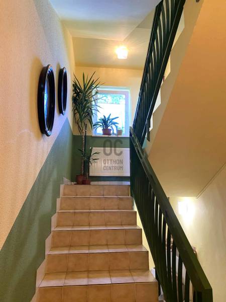 Eladásra kínálunk Pécsett a Mecsekoldalban az erdő közepén egy 3 szintes, tetőtér beépítéses családi ikerházat, mely akár 3 lakásként is kiváló otthont nyújt.A ház alsó lakása kertkapcsolatos, szép nagy terasszal rendelkezik, és 3 szobás. Emeleti lakásai külön bejáratúak, zöld panorámával, erkéllyel ellátottak. Gondozott zöld udvara van. A házat 1990-ben felújították: külső szigetelést kapott, a nyílászárók műanyagra lettek cserélve. A szintek világos, kényelmes, zárt lépcsőházból közelíthetők meg. Minden szinten van fürdőszoba wc-vel, tárolókkal, tágas szobákkal, beépített szekrényekkel. A fűtés gáz-cirkóval megoldott, mind a három emeleten külön villanyóra méri az elektromos energia felhasználást. Két gépkocsi beállására alkalmas, elektromos kapuval ellátott garázs található az udvarban.A legfelső szint külön is eladó, melyhez a garázs leválasztásával kis tároló kapcsolódhat,a garázs melletti udvarrésszel együtt, megegyezés szerint.Ennek a lakásnak az eladási ára 65 M Ft.A közelben nagyon sok kirándulóhely, túraútvonal csábít sétákra. Közelben van az Állatkert, Dömörkapu és az erdei kisvasutat is ki lehet próbálni. Pécs nevezetessége, a TV torony is remek kikapcsolódást nyújt.Az ingatlan összeköltözőknek, befektetőknek is ideális, akár 3 teljes értékű lakás is kialakítható ebben a nagyon igényes környezetben. Itt az alkalom, ez az ingatlan rengeteg lehetőséget nyújt, tekintse meg!keressen bizalommal! |