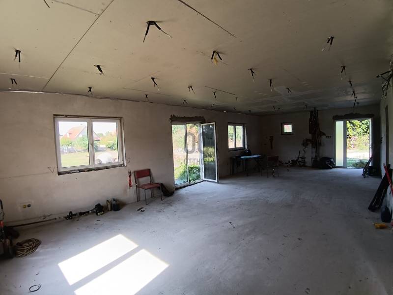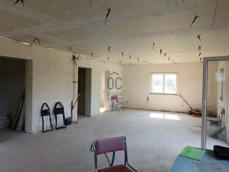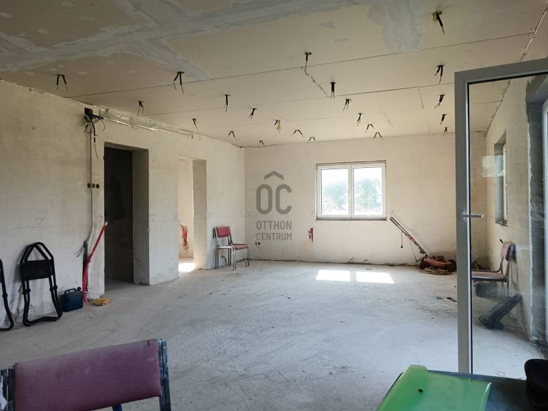 Dömsöd, központ közeli részén, 89 m2-es, nappali + 2 hálószobás, félkész/befejezésre váró családi ház, kerül most értékesítésre, hatalmas 2091 m2-es telekkel.A telekre 2 lakóépület építhető, ebből egyet elkezdett a tulajdonos, kb. szerkezetkész állapotban van az ingatlan.- falazata Phorothertm 30 NF kerámiatégla- fa födémszerkezet, Tondach cserép fedés- műanyag nyílászárók- víz, csatorna, villanyvezetékek kiépítve- közművek, víz, villany, csatorna a házhoz bevíve, csak rá kell csatlakozni- földkábel bevezetve a tervezett napelemrendszer miatt (3xC16A-380V)- 2 db fúrt kút a hatalmas kert gondozásához- aszfaltozott útról megközelíthető, de kb. 6 m széles teleknyéllel lehet az ingatlanhoz bejutni- 30 %-os beépíthetőség, Lf1-es övezetRendezett környezetben, Dömsöd központi részén, buszmegálló, iskola, óvoda, boltok, pár perc séta.További információért kérem keressen! |