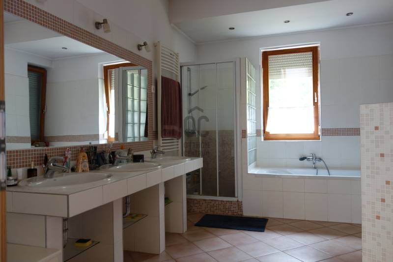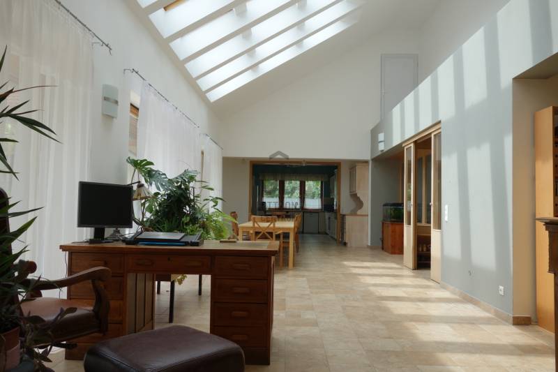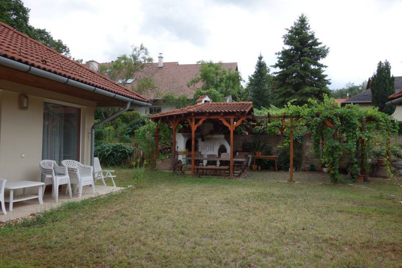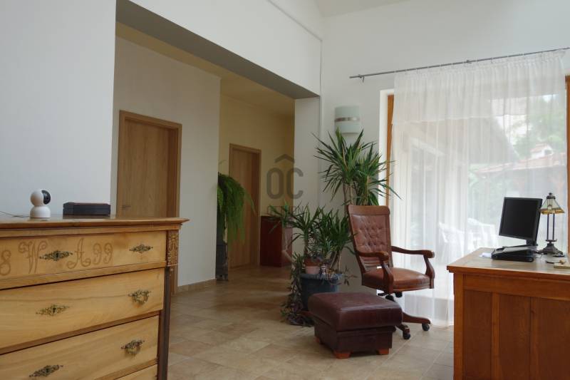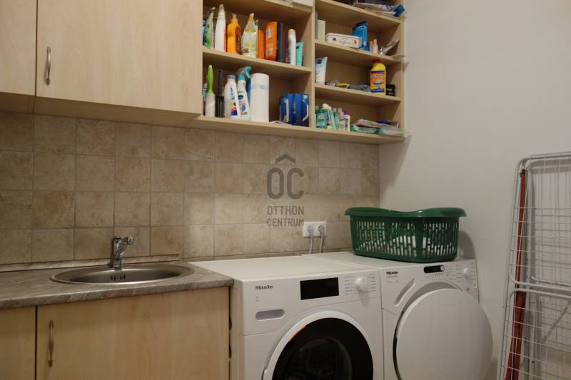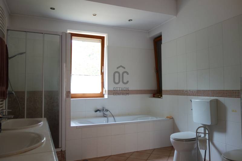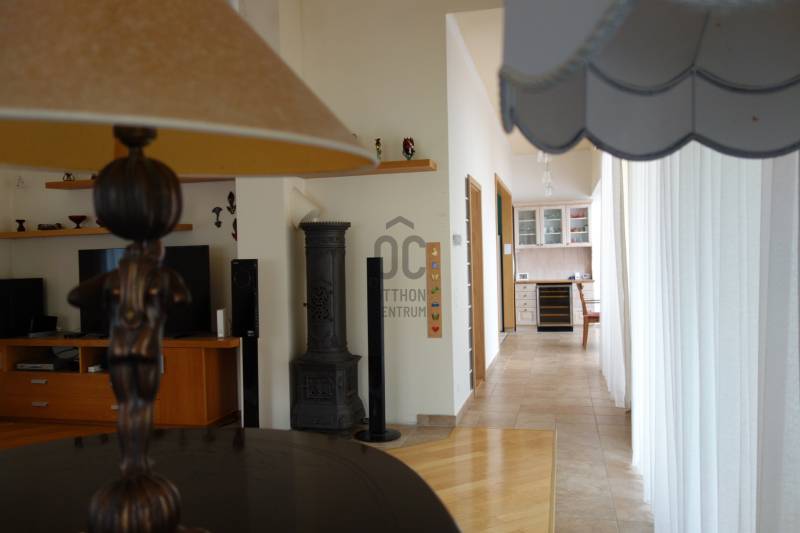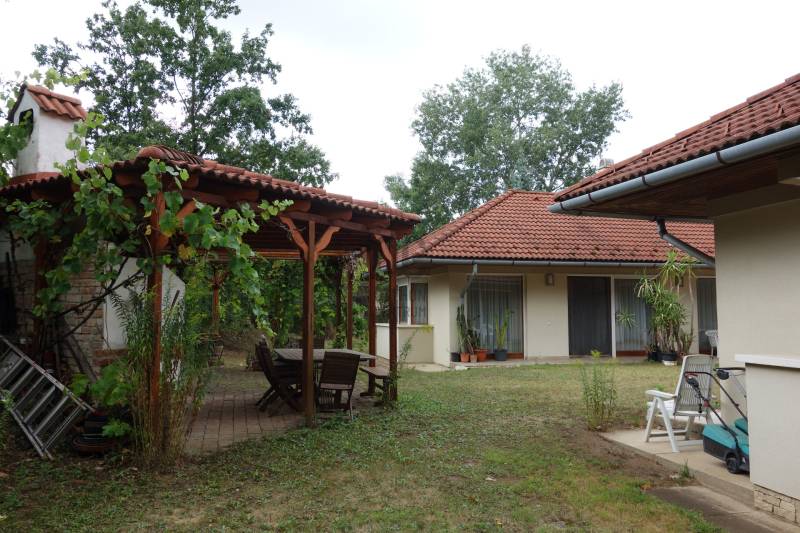 Mogyoródon a méltán kedvelt Szent Jakab lakóparkban eladósorba került egy gyönyörű családi ház. A dupla telken elhelyezkedő ingatlan 2003-ban épült.A körbejárható egy szintes házban nagy terekkel rendelkező otthon kiváló lehet nagyobb családoknak vagy akár több generáció összeköltözésére is. A közel 300nm-s házat 6 szobával, három fürdőszobával tulajdonosai a Feng Shui elvei szerint álmodtak meg. Ennek és az építészeti tervezésnek köszönhetően rendkívül jó energiája vana háznak. Nagy terek, tágas szobák és kényelmes - praktikus kialakítása minden korosztály számára a kényelmet szolgálja. Például mosókonyha, dolgozószoba,gardrobeszoba, fitnesszrészleg és a már beépített tetőteret tárolónak használva. Ez utóbbi tovább fejleszthető, lakótérként használható. Az igen tágas télikertjelenleg étkező-közösségi tér, tetőablakai nyithatóak. A házban akár két különálló lakrész is kialakítható, külön bejárattal. Ennek előkészítése megtörtént, ehhez csupán egy fal megépítése szükséges. Energetikailag kítűnő, besorolása EE, öko jellegű energiafelhasználással. Fűtését a két évvel ezelőtt telepített hőszivattyú, melegvízellátását egy kombi gázkazán biztosítja, mely fűtésre is alkalmas. A házban 4 db klíma található, a hidegburkolatos helyiségekben padlófűtés van. A gyönyörű ősfás nagy telek-kert kiválóan alkalmas családi összejövetelek megrendezésére és kertészkedésre egyaránt. Számos gyümölcsfa, kerti tó és grillező, illetve kemence a szaletli alatt, minden igényt kielégít. A kertben öntözőrendszer és egy kerti tó is kialakításra került. Egy nagyon helyes borospince is helyet kapott a kertben, ahol a család férfitagjai barátokkal elvonulhatnak. Az épület U alakú kialakításával közrefogott terasz és a kert szélvédett, napos. A két állásos garázs tágas, felette tároló kapott helyet. A lakópark nyugalmát őrző-védő szolgálat vigyázza. Nívóját beléptető rendszer és portaszolgálat emeli. A lakópark fenntartása mint közösköltség 25eFt havonta.Aki itt él, csendes, nyugodt zöld környezetben erdő mellett egy másfajta életminőséget tudhat a magáénak. Rendkívül jó a megközelítése, autóval 20-25 perc, hévvel 35perc alatt érhetjük el az Őrs Vezért terét. Tulajdonosai nagyon szeretnek itt élni, gyerekek kirepülése hozatta meg velük az eladás melletti döntést. Várom hívását, egy élmény lesz a bemutató is! |