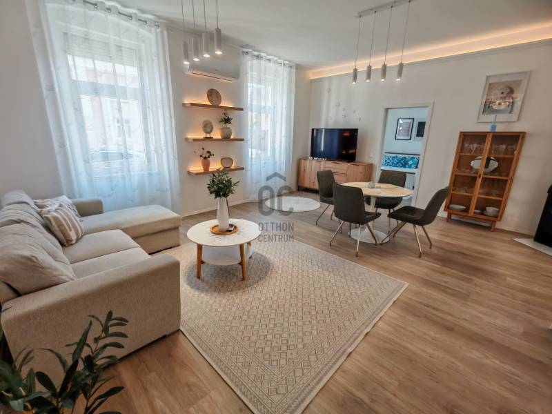 Eladó egy különleges, ízlésesen felújított, bútorozott otthon Keszthely belvárosában!Szívünknek nagyon kedves ez a lakás – magunknak alakítottuk ki, figyelve minden apró részletre. De az élet más irányba vitt minket, így végül nem laktunk benne. Most örömmel adjuk tovább annak, aki elsőként teszi igazán otthonná.Elhelyezkedés:Keszthely belvárosában, 2 perc sétára a főtértől és a sétálóutcától, pár percre a Balatontól. A környék csendes, barátságos, mégis minden karnyújtásnyira van.Főbb jellemzők:• Alapterület: 100 m², hasznos belső tér: 88 m²• Tágas amerikai konyhás nappali étkezővel• 3 hálószoba, 2 fürdőszoba• Bútorozott pergolás terasz – tökéletes reggeli kávéhoz vagy esti borozáshoz• Saját udvarrész, ideális bográcsozáshoz vagy pihenéshez• Pince – tárolásra, kerékpároknak vagy boroknakA lakás egy négyes társasház része, kívül-belül minden részletében megújítva, világos és tiszta. Teljesen bútorozott és gépesített, az összes berendezés vadonatúj és még nem használt (hűtő, sütő, mosogatógép, mosógép, mikró, stb.). Az ár a teljes berendezést is tartalmazza – az új tulajdonosnak már csak be kell költöznie.Az ingatlan vételára 99 millió forint + ingóságok.Így az ingatlanra a kedvezményes, 3%-os hitel felvehető. A teljes vételár: 109 millió forint. |