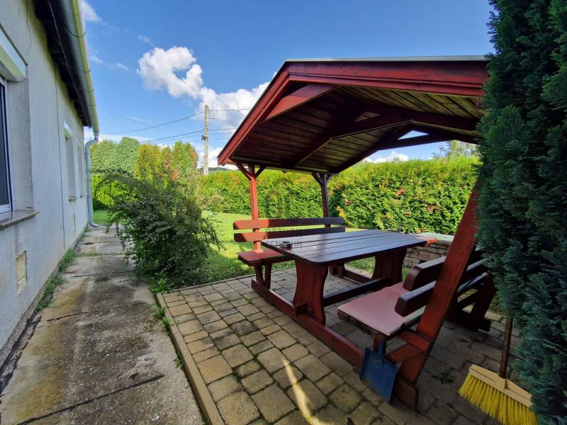 A Zalai-dombság szívében, messze a nagyvárosok nyüzsgő és zűrzavaros világától csodaszép környezetben találhatjuk Bázakerettyét.Mesebeli családi házikó eladó a Zalai dombok közt megbújó, erdőkkel körül ölelt Bázakerettyén.Csendes utcában, zöld környezetben, szépen gondozott 740m2-es saroktelekkel, fedett autóbeállóval, egy fa pavilonnal és grillezővel várja új tulajdonosát ez a kis családi ház.Az 57m2-es ház helyiségei: közlekedő, kerti tároló, kamra, konyha-étkező, fürdőszoba, külön wc, gardrób és két szoba.Az ingatlan 2018-ban, 2022-2024 években felújításokon, korszerűsítéseken esett át. Villanyvezetékek rézre lettek cserélve, melegvízről és a központi fűtésről kombi gázkazán gondoskodik, ehhez vízlágyító berendezés is csatlakoztatva van.Összközműves: víz, villany, gáz, csatorna bekötve.Optikai kábeles internet adott. Modern fa ablakok hő-és hangszigeteltek, redőnnyel, szúnyoghálóval ellátva.A padlózat járólap, laminált padló és parkettával van burkolva.A folyosón, a konyhában, a nappaliban és a hálószobában mennyezeti spotlámpák vannak beépítve.A tető betoncserép fedésű, szigetelt födém és a homlokzati falak is szigetelve vannak hungarocellel.Az ingatlanban található bútorok nagyrésze benne van az árban.A legközelebbi város Nagykanizsa, körülbelül 30 km, a Letenyei határátkelő is csak 15 km.A falunak saját termálstrandja van, túraútvonalak és csodás kirándulóhelyek teszik izgalmassá és közkedveltté a környéket.Az elhelyezkedése és adottságai miatt ajánlom egyedülállóknak, pároknak, fiataloknak, időseknek egyaránt.Az ingatlan 1/1 tulajdonban van, tehermentes. Teljes kifizetést követően szinte azonnal birtokba vehető.Irodánk teljes körű, ingyenes szolgáltatást nyújt kereső ügyfeleinknek.Szakszerű tanácsadással, hitelügyintézéssel, energetikai tanúsítvány elkészítésével és kedvező díjszabású ügyvéddel nyújtunk segítséget. |