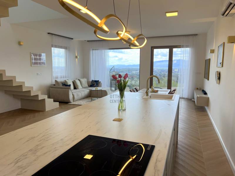 Vácon, Törökhegyen eladó 160nm-es, 5 szobás új építésű önálló, két szintes családi ház 550nm-es kerttel!Vadonatúj családi házra vágysz nyugodt környéken, ami a te ízlésed tükrözi és közben minőségi is legyen?Szükséged van 4 hálószobára és egy amerikai konyhás-nappalira?Legyen egyedi és stílusos?Ha ezekre mind az IGEN a válaszod, akkor ez a modern kivitelezésű ház csak neked épül!+ 30 cm-es POROTHERM NF téglából épül és monolit vasbeton födémmel rendelkezik. Kívülről 15cm grafitos szigetelés folyamatban.+ A tető szigetelés 15cm préselt szigetelésből készült hozzá párazáróval és szintén vasbeton födémmel.+ Az alsó szint már elkészült, lakott és teljesen felszerelt. Itt egy 50nm-es amerikai konyhás-nappali terasz kapcsolattal, egy hálószoba és egy kádas fürdőszoba található.+ A felső szinten, ami jelenleg is készül további 3 hálószoba erkéllyel, külön fürdőszoba-wc, külön wc-kézmosó és egy háztartási helyiség. Várható befejezés november eleje.+ A teljes ház fűtését és meleg víz ellátását 16 KW-os Gree hőszivattyú látja el padló fűtéssel és mennyezet fűtés-hűtéssel. Ehhez még egy hőcserélő szellőztető is be lett építve.+ Az ablakok mind 3 rétegű olasz, egyedi színnel rendelt alumínium nyílászárók prémium minőségben.+ A konyha gépesített magas fényű és az ár részét képezi. Továbbá be lett építve egy központi vízlágyító berendezés, ami megóvja a csöveket és szanitereket.Nettó alapterület: 160 m²Bruttó alapterület: 185 m²Szobák száma: 4 különnyíló hálószobaAmerikai konyhás-nappaliFürdőszobák: 2 fürdő + különálló WCTerasz és 2db erkély.Villanyhálózat: 3X25 Amper lakossági és 3X16 Amper H tarifa bekötve.Átgondolt alaprajzzal, praktikus elrendezéssel és modern műszaki megoldásokkal készült, így tökéletes választás azoknak, akik hosszú távra keresnek értékálló, kényelmes otthont.További extrák és egyéb kérések megbeszélhetők és kivitelezhetőek. A vételár a jelenlegi állapotra vonatkozik a felső szint befejezésével együtt és a használatba vételi engedéllyel együtt.A tereprendezés, kerítés, terasz fedés és bármi egyéb kérés külön megegyezésben megoldható.Az engedélyezési eljárás után bárminemű kedvezményes hitel, akár Otthon Start 3%-os hitelre is megvehető.Fizetési ütemezés megegyezés szerint. Birtokba adás rugalmasan megoldható.Ha bármi kérdésed lenne még, hívj nyugodtan és átbeszéljük a részleteket! |