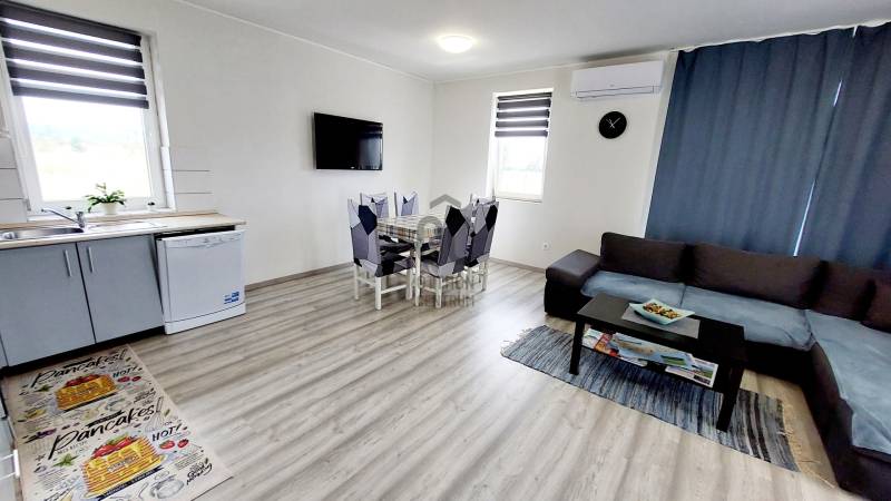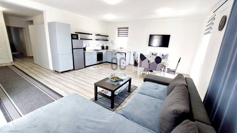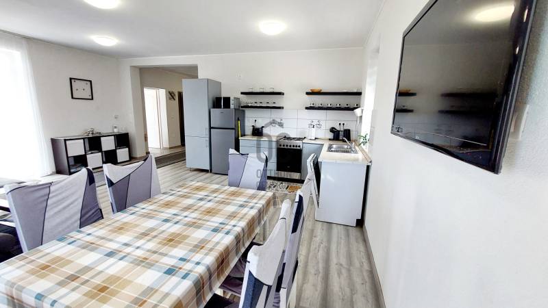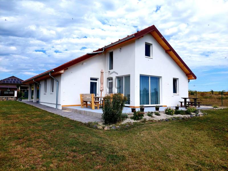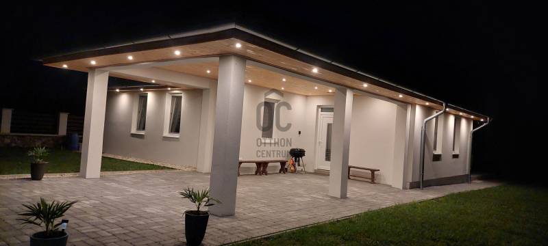 Tapolca új családi házas övezetében 2023-ban elkészült családi házat ajánlok figyelmébe. Az ingatlan hasznos alapterülete 92 nm, melyet a fedett gépkocsibeálló valamint a terasz növel.A tetőtérben további helyiségek alakíthatók ki a tulajdonos elképzelése szerint. A letisztult, fiatalos modern ingatlan minden igényt kielégít, a jelenlegi kor elvárásai szerint épült. Az épület központi helye a nyitott tágas és világos nappali-étkező konyha. Ezen központi helyen kívül három megfelelő méretű hálószoba áll rendelkezésre. A fürdőszoba tágas, modern.A két éve használatba vételi engedéllyel rendelkező épület még nem volt lakott, így leendő tulajdonosa ténylegesen egy új ingatlan birtokosa lehet. Az ingatlan fűtéséről jelenleg a nappaliban felszerelt egy nagy teljesítményű AUX hűtő-fűtő klíma gondoskodik.A ház energetikai besorolása B. A falak, a födém és a tető hőszigeteltek, az ablakok és erkélyajtók 3 rétegű hőszigetelt üvegezéssel rendelkeznek. Elhelyezkedését tekintve elvehetetlen panorámával rendelkezik a Tanúhegyekre. A teraszról a Csobánc hegy, Gulács, Badacsony, és Szent György-hegy látványa tárul elénk.Boltok, bevásárló központok, iskola, óvoda séta távolságra találhatók. Az 1004 nm-es telek körbekerített, füvesített, gondozott. A rendelkezésre álló zöldterület több féle hasznosításra is lehetőséget ad. Az ingatlan per és tehermentes, jogilag rendezett. Megvásárlását követően szinte azonnal birtokba vehető. A kínált ingatlan megvásárlásához start hitel és családi otthonteremtési kedvezmény is felvehető. Tapolca mind a turisták, mind az állandó lakosok tekintetében egy kedvelt város. Elhelyezkedésének köszönhetően a Balatonfelvidék és a Balaton közelsége miatt ideális választás lehet nyaralónak, szálláskiadás esetén jövedelem termelő befektetés. Amennyiben felkeltettem érdeklődését, vagy kérdése merül fel, úgy várom megtisztelő hívását! |