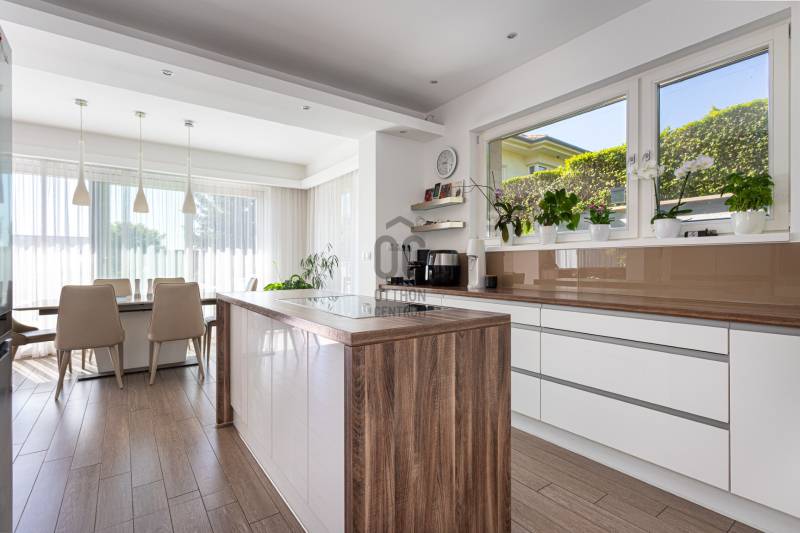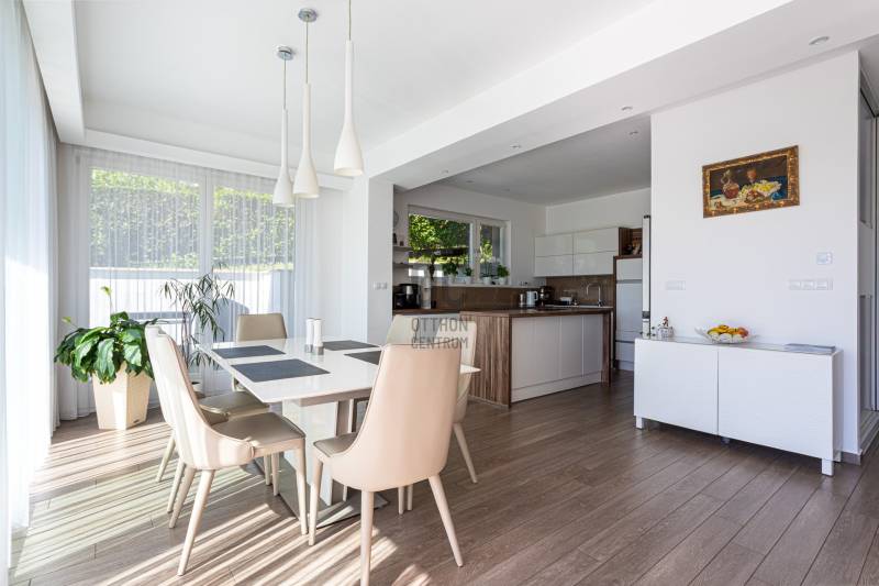 Eladásra kínálok a III. kerület legkeresettebb részén, Aranyhegyen, egy 2016-ban épült, 303 m²-es, két szintes, újszerű állapotú luxus családi házat, mely egy tágas, 1008 m²-es, gondosan kialakított telken helyezkedik el.Az otthon központi tere a világos, impozáns amerikai konyhás nappali, amely tökéletes színtere a családi és baráti összejöveteleknek. A házban öt hálószoba található, mindegyikhez saját gardrób kapcsolódik, így a funkcionalitás és a kényelem egyszerre érvényesül.Az ingatlant ízléses belsőépítészeti megoldások, prémium anyaghasználat és letisztult elegancia jellemzi. A ház minden részlete a minőség és a kifinomult stílus jegyében készült, a tulajdonos saját részére építette, kompromisszumok nélkül.Főbb jellemzők:•15 cm grafitos hőszigetelés – garantált energiahatékonyság•Mitsubishi Zubadan hőszivattyú plafon- és padlófűtés/hűtés rendszerrel•3 rétegű fa nyílászárók, elektromos redőnyökkel és szúnyoghálókkal•Kizárólag prémium minőségű burkolatok és szaniterekRezsi költségek rendkívül kedvezőek:•Áram kb. 38.000 Ft/hó•Víz + csatorna kb. 26.000 Ft / 2 hónapA kétszintes garázsban és a kertben kialakított felszíni beállókon összesen akár 4 autó kényelmesen elfér.A környék presztízsértékű: kizárólag új építésű ingatlanok, rendezett utcák és csendes környezet. Az infrastruktúra kiemelkedő – 3 perc sétára található a buszmegálló, amely közvetlenül a Csillaghegyi HÉV-hez visz, autóval pedig percek alatt elérhető a Bécsi út vagy a Szentendrei út. A közelben a Mészkő Park és a Csillaghegyi Strandfürdő is élményt kínál a kikapcsolódáshoz.Ez az ingatlan több, mint egy ház – ez egy életérzés, ahol a luxus és a harmónia együtt valósul meg. Megtekintés kapcsán várom megtisztelő hívását – rugalmasan, akár hétvégén is! |