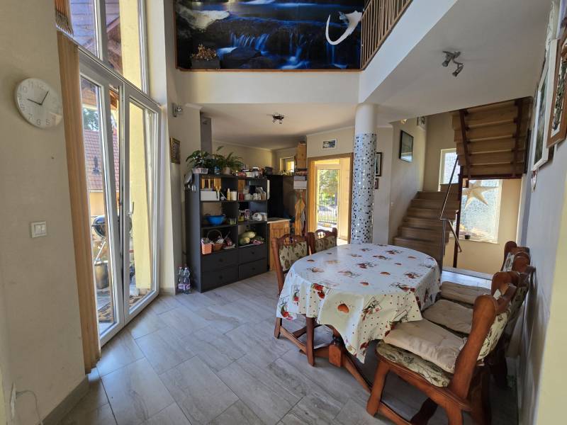 Veresegyház csendes, mégis kiválóan ellátott környékén kínálunk eladásra egy tágas, 160 nm-es családi házat, amely ideális választás lehet családok számára, akik a nyugalmat és a kényelmet keresik. Az ingatlan elhelyezkedése különösen előnyös, hiszen a város központja mindössze néhány perces sétára található, ahol boltok, éttermek és közszolgáltatások széles választéka várja Önt. A környék biztonságos, barátságos légkörével pedig ideális otthont biztosít gyermekes családok számára. A ház 687 nm-es telken helyezkedik el, amely elegendő teret biztosít a szabadidős tevékenységekhez és a kertészkedéshez. Az ingatlan három fürdőszobával rendelkezik, így minden családtag kényelmesen elfér, és a tágas nappali tökéletes helyszínül szolgál a közös családi programokhoz. A nappali világos, napfényes, ami még inkább fokozza az otthon meleg hangulatát. Az erkély, amely 15 nm-es, csodás panorámát kínál, ideális helyszín a reggeli kávézáshoz vagy az esti pihenéshez. A ház állapota átlagos, de kiváló lehetőséget kínál arra, hogy saját ízlésére szabja. A vegyes fűtési rendszer és a klíma biztosítja az otthon kellemes hőmérsékletét évszaktól függetlenül. A környék ellátottsága kiváló, a közlekedési lehetőségek is kedvezőek: a tömegközlekedés könnyen elérhető, így Budapest központja is gyorsan megközelíthető, ami különösen előnyös lehet ingázók számára. Veresegyház nemcsak a családosok, hanem a befektetők számára is vonzó, hiszen a környék folyamatosan fejlődik, és a jövőbeli értéknövekedés szempontjából is kedvező lehetőségeket kínál. A szauna pedig egy extra kényelmet biztosít, ahol a nap végén ki tudja pihenni a fáradalmait. Amennyiben felkeltette érdeklődését ez a nagyszerű ingatlan, ne habozzon kérdésekkel keresni bennünket! Szívesen állunk rendelkezésére, hogy segítsünk Önnek a legjobb döntés meghozatalában, és hogy megtalálja álmai otthonát Veresegyház szívében. Az ingatlan nemcsak egy ház, hanem egy lehetőség, hogy egy új, boldog életet kezdjen el családjával.Udvari fedett beállón napelem, kamerarendszer (4kamerával), 50 méteren belül buszmegálló - ingyenes helyi buszjárattal!További információért, megtekintésért, keressen bizalommal! |