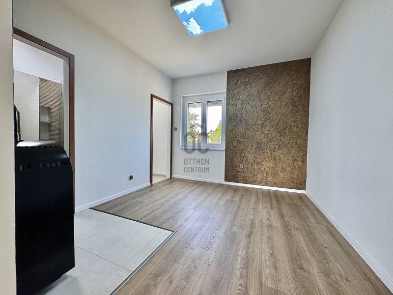 Nagyon jó elhelyezkedéssel, rendezett utcában, szép környezetben!Teljeskörűen felújítva, csak neked!Itt nem kell bajlódnod semmivel, azonnal költözhetsz, ráfordítás nélkül!- Győr kertvárosias, külterületi övezetében- Sashegyen, az Ipari Park felőli oldalon- Rendezett, zömében állandó lakosokkal rendelkező területen- Ideális, gondozható nagyságú telken- Alápincézett, száraz, vizesedés mentes- Pince + Nettó 35 nm lakótérrel rendelkező- Tégla építésű- Műanyag nyílászárós- 15cm es homlokzati és 10cm-es lábazati hőszigeteléssel ellátott- 3x16A-rel korszerűsített- Konyha-nappali + hálószoba + fürdő + mosókonyha elrendezésű- Azonnal birtokba vehető ház várja új tulajdonosát!Az ingatlan művelési ág alól kivett, zártkerti, engedéllyel épült és tulajdoni lapon gazdasági épületnek feltüntetett.Belülről 2025-ben teljes körű esztétikai felújításon esett át, melynek során a teljes aljzatbetont, burkolatokat, vakolatokat, szanitereket, csaptelepeket cserélték. A villany vezetékek rézből vannak, a vízvezetékek 5 rétegű műanyag csövek. A fűtésről egy fa/szén tüzelésű kandalló, valamint egy klíma gondoskodik. A meleg víz ellátást villanybojler biztosítja.A kertben termő gyümölcsfák, nyári konyha, kerti pavilon található.Kérdésekkel megtekintéssel kapcsolatban keress bizalommal és ahogyan már megszokhattátok, az ingatlan kulcsai NÁLAM VANNAK!Hitelre van szüksége?Az Otthon Centrum az ország egyik legnagyobb és legmegbízhatóbb hitelközvetítőjeként, teljes körű és díjmentes hitelügyintézéssel, biztosításkötéssel áll rendelkezésére!Kérje személyre szabott ajánlatunkat Kollégáinktól!Ez az ingatlan a \"Felező csomag\" megbízási portfólióhoz tartozik. Részletek az Otthon Centrum weboldalán. |