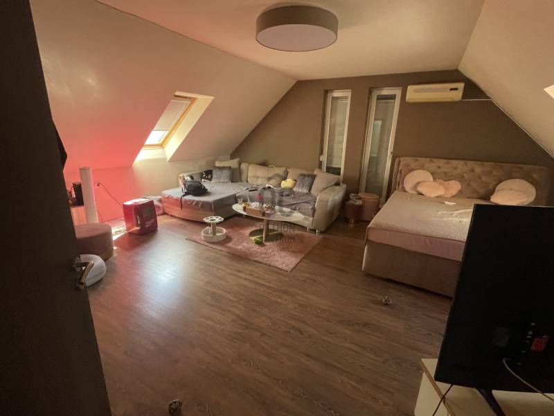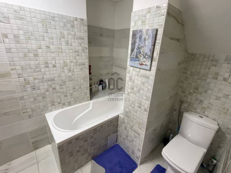 Újpesten, a Városkapuhoz közel, 11 lakásos, 2009 év végi átadású társasházban duplex lakás eladó. A III. emeleten és a tetőtérben belső kétszintes lakás van kialakítva tulajdoni lapon 113 m2-es, 1 egész és 3 félszobás. Az ingatlan jelenleg 3 szobás 120 m2-es. A lakáshoz tartozik egy tároló, és minden lakásnak van erkélye, amelyek a zöld udvarra néznek. Az erkély beépítésre került a nappali bővítéseként.A falak PTH 30 N+F falazóblokkból készülnek, min 6 cm hőszigeteléssel, dryvit rendszerrel vakolva. Az épületen monolit vasbeton födémszerkezetek van. Az aljzatok lépéshang-gátlós és hőszigetelős réteggel vannak ellátva. A homlokzatokon 6 cm hőszigetelés került elhelyezésre, helyenként Dryvit hőszigetelő vakolatrendszerben, helyenként burkolatok alatt ragasztva. A szerelt, táblás burkolatok alatt kőzetgyapot hőszigetelés készült, 6 cm vastagságban. A homlokzat túlnyomórészt tört fehér dryvit rendszerű vakolattal készült. A burkolt felületek részben fűrészelt téglaburkolat, részben Fundermax Exterior, fahatású, táblás, szerelt burkolatot kaptak .Standard és egyedi műanyag nyílászárók hőszigetelő üvegezéssel, grafitszürke színben. Belső ajtók, fa teli ajtók lazúrozva.Hidegburkolatok: Vizes helyiségekben kerámia, gresslap padlóburkolat és falburkolat az ajtószemöldök magasságig, Melegburkolatok: A lakás nappali és hálóhelyiségeiben, gardróbban és a közlekedők egy részében laminált parketta készült.Belső festés: két réteg műanyag bázisú fehér színű.Tetőfedés, tetőszerkezet: A zárófödém felett vasbeton szerkezetű, magas, illetve alacsony-hajlású tetőszerkezet , Creaton téglány-cseréppel, valamint állókorcos, horganyzott acél fedéssel.Megközelíthetőség: tömegközlekedés kiváló, hiszen a M3 metró közelségén kívül számos buszjárat is megtalálható a közelben.A környéken megtalálható óvoda, iskola, bevásárló központ, orvos, gyógyszertár, uszoda. |