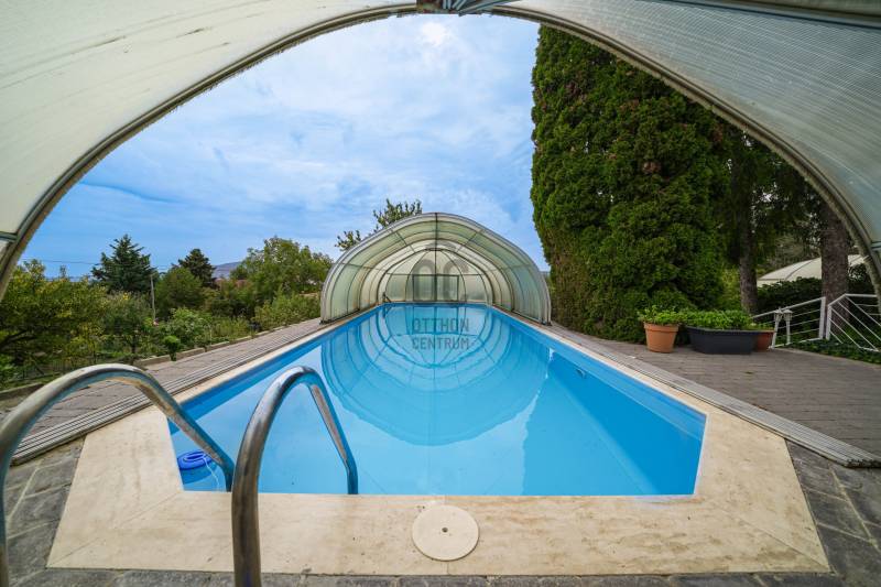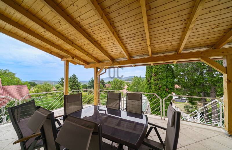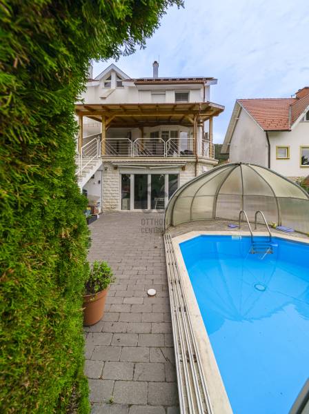 Eladó egy különleges, négy szintes családi ház páratlan környezetben, természetvédelmi terület szomszédságában, 1000 m²-es telken!Ha tágas, kényelmes és fenntartható otthont keresel, ahol a nyugalom, a friss levegő és a panoráma egyszerre adott, akkor ez a ház neked való!Főbb jellemzők:375 m² főépület + 35 m² garázsFedett medence hőszivattyús fűtésselZárt garázs két autóra (EV-töltővel) + fedett kocsibeálló6 nagyobb és 2 kisebb hálószobaTágas amerikai konyhás nappali étkezővelMinden szinten wc/mosdóKlíma minden helyiségbenÓriási fedett terasz lenyűgöző panorámávalTeljes UTP-hálózat szobánként, központi szerverhez bekötveNapelem rendszer (12,8 kWh) + hőszivattyús fűtés → rezsimentes működés (EV-töltés is beleértve)Háromfázisú elektromos hálózat (3×32A)Gáz bekötve, használaton kívül.Környezet és elhelyezkedés:A ház nyugodt, zöldövezeti faluban található, ahol minden fontos intézmény helyben elérhető: bolt, gyógyszertár, orvosi rendelő, iskola, óvoda, buszmegálló és még kávézó is. |