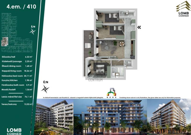 Projekt bemutatásaA Zelena Park nem csupán egy külsőleg modern lakóház, de kivitelezésében is a minőségi anyagfelhasználás jellemzi, fenntarthatóságát modern gépészeti megoldásokkal kívánjuk erősíteni. Az emeleti teraszok jelentősen csökkentik a homlokzat felmelegedését a forró nyári időszakban. A hőmegtartást korszerű nyílászárókkal, valamint beépített rejtett redőnyök biztosítják. Központi szerephez jutnak a modern energiatakarékos világítási és elektromos rendszerek, és szelektív hulladékkezelés az üzemeltetés során. Mindezek mellett hőszivattyús fűtési rendszert alakítunk ki mennyezet hűtés és-fűtéssel. Az épület szerkezet hőtehetetlensége biztosítja a lakások nyári kellemes klímáját és a tervezett gépészeti rendszerekkel nem csak az épület fűtését kívánjuk megoldani, hanem a nyári hűtését is. A megújuló energiák felhasználása, mellett kulcsfontosságú az épületbe tervezett gépészeti és elektromos rendszerek alacsony energiafelhasználása.A lakások méretei 30m2-140m2-ig terjednek. Az emeleteken a lakások tájolása Kelet-Dél-Nyugat, minden lakás bevilágítása, tájolása optimális. Északi tájolású lakás nincs a lakóépületben.A lakópark -1/-2 garázsszintjein autóbeálló helyek valamint, tároló- és gépészeti helyiségek kerülnek kialakításra. A fizetési konstrukció rugalmas: háromféle finanszírozási lehetőség közül választhat!További információért keressenek bizalommal. |