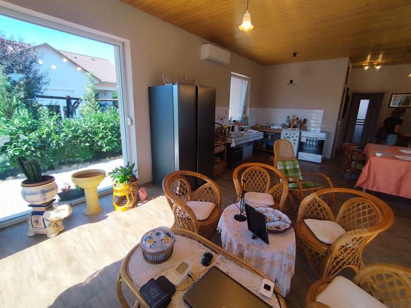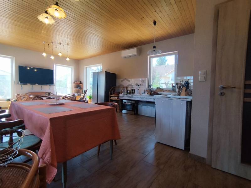 Kecskemét Méntelek városrészében eladásra kínálunk egy igazán különleges családi házat. Az ingatlan 97 m² alapterületű, és egy 723 m² telek része, amely rendezett kerttel és öntöző rendszerrel büszkélkedhet. Az ingatlan alapterülete bőséges teret kínál a mindennapi élethez, míg a saját, rendezett kertedben is élvezheted a szabadtéri pillanatokat. Ez a tehermentes ingatlan nemcsak egyedi tervezésű, modern stílusú, hanem egy otthon és egy életstílus is egyben.Az otthont a tágas nappali és az amerikai konyha kombinációja teszi igazán vonzóvá. A modern design minden részletében megjelenik, így garantálva a stílusos életkörnyezetet. A ház magas minőségű anyagokkal készült, minden részletében igényes, harmonikus kialakítással.Az amerikai konyhás nappali tágas és világos, ideális helyszín baráti összejövetelekhez vagy romantikus vacsorákhoz. A praktikus elrendezésű családi ház tökéletesen megfelel egy fiatal pár vagy egyedülálló életstílusának.Ez a kiváló állapotú ház ideális választás olyan fiatal felnőttek számára, akik egy modern, világos otthonra vágynak.A házban található egy szoba és egy fürdőszoba, amelyek ideálisak a kényelmes életvitelhez.A zuhanykabinnal és káddal rendelkező fürdőszoba mellett közvetlenül egy WC helyiség kézmosóval is kialakításra került.A ház 3.5 kw klímával felszerelt, így a nyári hőségben is kellemes hőmérsékletet biztosít. A családi ház elektromos fűtő szálas PADLÓ FŰTÉSSEL rendelkezik, minden helyiségben külön termosztát szabályzóval.A hangulatos 6 kw teljesítményű, fa tüzelésű kandalló nemcsak a téli hónapokban biztosít melegséget, hanem különleges hangulatot is kölcsönöz a nappalinak.Alternatív megoldásként a ház fűtése klímával is megoldott, mely H tarifáról üzemeltethető.A világos belső terek, a beépített bútorok és szekrények, valamint a hangulatvilágítás mind hozzájárulnak ahhoz, hogy ez a ház otthonos és kellemes légkört biztosítson. A helyiségek metlakival burkoltak, az ablakokat szigetelt fémredőnyökkel látták el.A garázsban hideg és melegvíz, a műhelyben a hidegvíz biztosított, melyből - igény szerint - akár egy külön lakrész is kialakítható.A házat 15 cm homlokzati szigeteléssel látták el, a tető könnyű szerkezetes, a födém 30 cm, a garázs és a műhely 10 cm szigetelést kapott, Az ingatlan igény szerint BÚTOROZOTTAN is megvásárolható - beleértve a műhelyt a szerszámokkal együtt!A telek manuális vezérlésű öntözőrendszerrel van ellátva, ami furt kútról működtethető, és egyben megkönnyíti a kertgondozást, így több időd marad a pihenésre és a szórakozásra. A parkosított kertben új grillező kapott helyet, a telek hátsó részében A műhely előtti rész térköves, a fatároló mellett egy hangulatos fedett szaletli került kialakításra.A családi ház tehermentes, így a befektetők részére is kiváló választási lehetőséget kínál.Azonnal birtokba vehető, ami különösen fontos lehet a befektetők számára, akik gyorsan szeretnék realizálni a tőkét. A környék csendes és biztonságos, tökéletes választás családoknak és azoknak, akik egy nyugodt, de mégis jól megközelíthető helyen keresnek ingatlant. Azok számára jelenthet új otthont, akik a nyugalmat keresik.Kecskemét és Lajosmizse belvárosa 12 km távolságra, mindössze néhány perc autóútra található, így a mindennapi ügyintézés vagy a szórakozás könnyedén elérhető.Óvoda, iskola, élelmiszerbolt 250 méteren belül, vonatállomás 500 méterre egy kényelmes sétával gyalogosan is könnyen megközelíthető.Helyi járati buszjárat adott a településen, a közlekedés szempontjából is kedvező a helyzet, hiszen a közeli buszmegállókból gyorsan elérheted a város különböző részeit. Ha bármilyen kérdése van, vagy szeretné megtekinteni az ingatlant, bizalommal keressen minket! Várjuk érdeklődését, és segítünk Önnek megtalálni a legjobb megoldást!A modern megoldások és a kiváló környezet garantálja, hogy az ingatlan hosszú távon is megőrzi értékét.Ha kérdéseid lennének, vagy szeretnéd megtekinteni ezt a különleges ingatlant, bátran keress meg! #Kecskemét #Méntelek #amerikaikonyhásnappali #tégla #klíma #kandalló #modernotthon #garázs #szaletliEz az ingatlan a \"Felező csomag\" megbízási portfólióhoz tartozik. Részletek az Otthon Centrum weboldalán. |