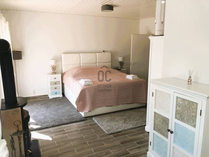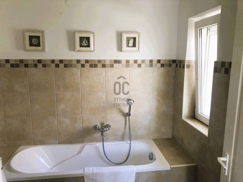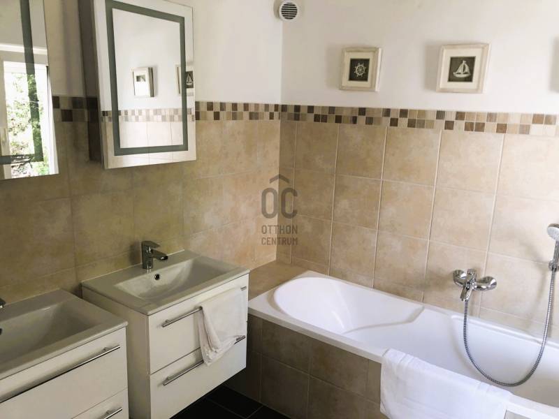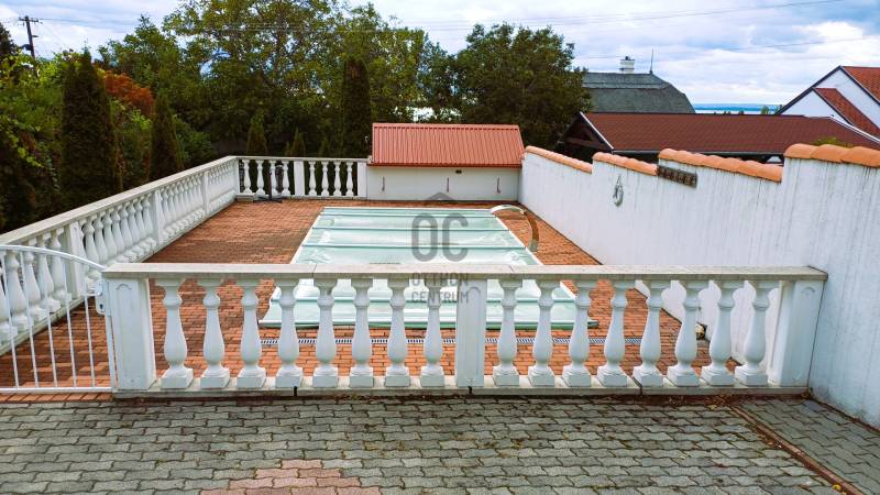 A BALATON ÉSZAKI PARTJÁN, VONYARCVASHEGYEN CSENDES KÖRNYÉKEN, NYUGODT KÖRNYEZETBEN ELADÓ PANORÁMÁS, TÖBB FUNKCIÓS CSALÁDI HÁZ ÚSZÓMEDENCÉVEL. AZ OTTHON CENTRUM KIEMELT AJÁNLATA.Az ingatlant biztonságos, kedvelt kicsi zsákutcában találjuk. Pontosan illik rá a település szlogenje: \" Mögöttünk az erdő, előttünk a víz.\" A telek 714 m2, nagyrész térkövezett, könnyen karbantartható. A ház két szintes, hatalmas terasszal, erkéllyel, ahonnan a Balaton tükrében is gyönyörködhetünk. Megbízható minőségben épült 2003-ban, néhány éve modernizálták, alakítottak a használati beosztáson.További jellemzői: - Összközműves tégla épület, cserép fedéssel. Műanyag nyílászárók. - Gáz cirkó fűtés, + két hangulatos kandalló -4 hálószoba, 3 fürdőszoba nagyobb családnak is kényelmes elhelyezést biztosít. - A nettó lakótér 120 m2, ami nem foglalja magában a teraszokat, erkélyt, tárolókat. - Helyiségek: A földszinten teraszkapcsolatos nappali, egy légterű, de szaperált modern konyhával, étkezővel. Kis közlekedőből nyílik egy fürdő, tágas hálószoba és a lépcsőfeljáró. A felső szintre belül, és külső lépcsön is fel lehet jutni. Itt három hálószobát, zuhanyzós és kádas fürdőszobaát alakítottak ki. A déli tájolású legnagyobb hálóból panoráma erkély nyílik. ( Az alaprajzon a megnevezésekben változás történt)A ház mögött két méretes tároló, elektromos távirányítós záróredőnyökkel. Elektromosan vezérelt kapu. Mivel a két szint külön bejárattal is rendelkezik, két generáció lakhatására, nyaralására, kiadásra is alkalmassá tehető. Befektetésnek szintén kiváló ajánlat.A ház teljes berendezéssel. felszereléssel kerül értékesítésre, amit a vételár tartalmaz. Vonyarcvashegyet a Keszthelyi-hegység öleli körül, erdőivel, szőlőültetvényeivel, árnyas pincéivel, benne sajátos ízvilágú boraival. Ötcsillagos Lido strandja számos alkalommal érte el a Balaton legszebb, legsportosabb strandja kitüntető elismerést. A környék jellegzetessége a Csándor-hegy tetején álló Kálvária út és a végén a 2010-ben felszentelt 7,38 méter magas Fénykereszt. A Balatonból kiemelkedő egykori dombsziget, a 136 méter magas Szent Mihály domb. Tetején áll a 40 jéghalász megmenekülése emlékét őrző Szent Mihály Fogadalmi Halászkápolna, mely Magyarország, sőt a tengerparttal nem rendelkező országok egyetlen Halászkápolnája. Ez a csodás fekvésű, romantikus hangulatú szakrális hely megigézi az idelátogatókat. A hosszú évszázadok múltját őrző kápolna Vonyarcvashegy jelképévé vált.Ha felkeltette érdeklődését a fenti ingatlan, további kérdései vannak, megtekintéshez időpontot egyeztetne, kérem, hívjon, írjon a megadott elérhetőségeken. |