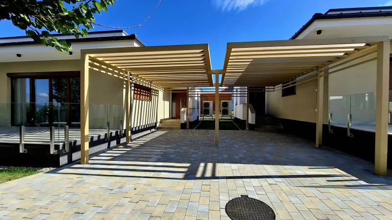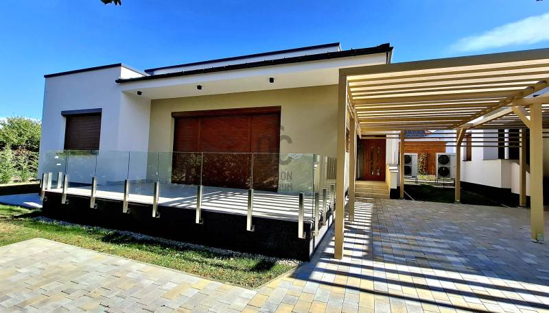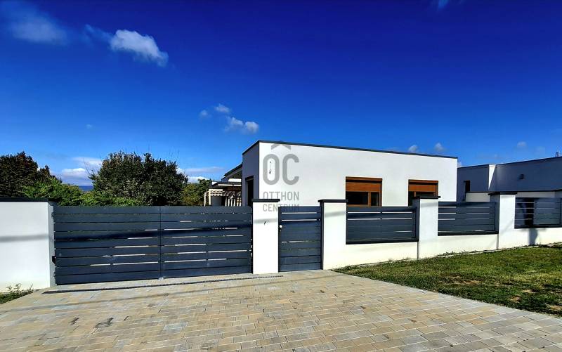 Regisztrációs szám: U0048829Örömömre szolgál, hogy KIEMELT SZERZŐDÉS KERETEIN BELÜL, ÉN írhatok neked erről a gyönyörű, ÚJ ÉPÍTÉSŰ, letisztult, exkluzív, modern stílusú, egy szintes, rendkívül jó elosztású, 96 m2-es családi fészekről!Rózsadombon a Fagyöngy utca és a Nyugati Kőhíd dűlő felől is megközelíthető az ingatlan, mely egy zöldövezetben, családi házas környezetben, egy teljesen sík, körbekerített területen fekszik! A telken, két külön önálló családi ház épült, jómagam a belsőt, az északi oldalon találhatót szeretném neked bemutatni, melynek nagyobb a területe, zártabb, intimebb udvara és kertkapcsolata van! Az ingatlan jogilag rendezett, lakhatási engedélye még nincs, de a fürdőszoba szanitereinek beépítését követően, melyet a jövőbeni tulajdonos választhat ki, (a fotókon az első ház fürdőszobája szerepel, inspirációként!) értelemszerűen, használati megállapodással, a teljes vételár kiegyenlítését követően, azonnal birtokba vehetővé válik. Az épület belső elosztásán még lehet változtatni, annak függvényében, hogy a nappali + a konyha + az étkező lehet-e egy helyiségben, mert akkor felszabadul egy 14 m2-es helyiség, amely eredményezhet egy plusz 3. külön bejáratú szobát! A fürdőszobában kialakításra kerül a kádon, vagy a zuhanyzón és a mosdón felül egy toalett is, de egy külön helyiségben is lesz még egy, a megnövekedett komfort igények miatt!Néhány fontos információ, mely segíthet eldönteni, hogy megnéznéd-e ezt a minimalista stílusú, sík tetős házat:- Az udvarba, egy távvezérlésű, elektromos kapun keresztül lehet bejutni!- 30-as porotherm, klíma tégla falazat, 15 cm-es szigeteléssel- hőszivattyús technikájú, padlófűtéses az épület- a rendszerre rá van kötve, egy 200 l-es HMV tartály, mely 4 fő részére folyamatosan biztosítja a meleg víz előállítását és tárolását- a lakóépületbe, 3 rétegű, hőszigetelt üvegezésű ablakok és hőszigetelt, szinterezett, alumínium redőnyök lettek beépítve- a beltéri ajtók jó minőségűek, igényesek, szép színvilággal rendelkeznek- a nappaliban található, nagy felületű terasz ajtó árnyékolás technikája, azaz a fém redőnye, automatikával szerelt, távirányítású módozattal működtethető- a 6,2 * 2,1 m-es, részben fedett, járólapozott, dizájn üvegkorláttal szegélyezett terasz, biztosítja a pihenést, a kávézást, de akár a szabadban történő étkezés lehetőségét is- a nappaliban egy 5 KW-os Split klíma is segíti a számunkra megfelelő hőmérséklet elérését- a házhoz, gépkocsi tárolás céljából, tartozik egy részben fedett pergola, de az épület előtt az utcán, biztonságos körülmények között még 2 autó is parkolhat- A kültéri világítás, spotlámpákkal megoldott és riasztó előkészítés is kialakításra került, valamint kaputelefonnal is felszerelt a lakóház- a teljes ingatlan kivitelezését, úgy a beépített anyagokét, mint a szaktudást illetően, a magas minőség uralja- Kiépítésre került a \"H\" tarifa is,- az épületekhez, tartozik egy 8 m3-es földalatti csapadéktároló, ami a mai világban, kincsnek számít- hangulatos, fiatalos maga a lakóépület, az udvar és a kert is********** Mivel az ingatlan ÚJ ÉPÍTÉSŰ, ezért a vételár után, 5%-os ÁFA visszaigénylésére lesz lehetősége, a jövőbeni tulajdonosnak!!! **********Ugye, hogy kihagy6atlan ??!!Ha szeretnéd látni ezt az egyedi tervezésű és kialakitású lakóingatlant, akkor valamelyik elérhetőségemen keress mihamarabb, mivel az értékesítésre váró családi házat, csak rajtam keresztül tudod megtekinteni és megvásárolni is!Köszönöm megtisztelő figyelmedet, várom hívásodat, hétfőtől, vasárnapig kereshetsz, állok szíves rendelkezésedre, a neked megfelelő időpontban!Teljes körű pénzügyi megoldások ügyintézése díjmentesen:* Bankfüggetlen hitelcenterünk díjmentesen versenyezteti minden bank és hitelintézet ajánlatát.* Önnek nincs más dolga, mint beszélgetni munkatársunkkal, majd a megversenyeztetett ajánlatokból kiválasztani a hosszútávon is a legmegfelelőbb konstrukciót.* Szakértőnk több mint 20 éves szakmai tapasztalattal és egyedi igényekre szabott, fogyasztóbarát lakáshitelekkel, babaváró hitellel, teljes körű CSOK ügyintézéssel várja Önt.* Előre egyeztetett időpontban.- |