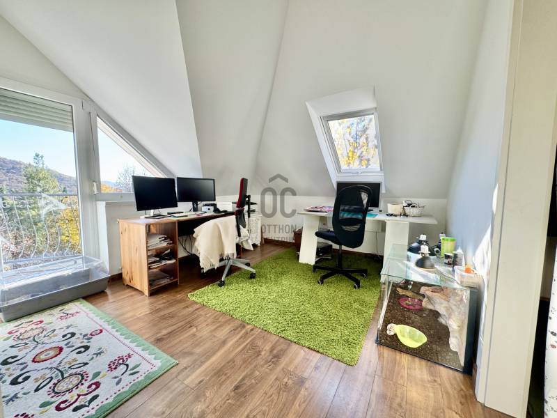 Találd meg OTTHONOD!Egy hely, ahol minden részlet rólad szól.Ez az ingatlan nemcsak szép, hanem átgondolt, praktikus, és minden részletében otthonos.Egy panorámás ház, amit szeretettel építettek, igényesen karbantartottak, és ahol a természet közelsége találkozik a kényelemmel.Ha eleged van a város zajából, de nem akarsz lemondani a kényelmes mindennapokról, akkor ez a ház neked való!________________________________________Főbb adatok:•Helyszín: Solymár, Pest vármegye•Telek: 562 m²•Bruttó alapterület: 316,93 m² + kb. 30 m² padlás•Zöldfelület: 325 m² (kb. 61%)•Építés éve: 2001•Szerkezet: 38-as Porotherm tégla, vasbeton födém•Tető: prémium minőségű cserép•Fűtés: gáz cirkó + hűtő-fűtő klíma mindkét szinten•Szintek száma: 3 •Garázs: kétállásos (40 m²), közvetlen bejárattal a házba________________________________________Részletes leírás:Az ingatlan 2001-ben saját részre, kiemelten gondos kivitelezéssel épült. A ház körbe 15 cm grafitos szigetelést, új homlokzatfestést és 2017-ben modern műanyag nyílászárókat kapott alumínium redőnyökkel. A padlás szigetelt és 2018-ban tárolóként kialakítva.Belső felújítások:•2018: új laminált padló az emeleten, teljesen megújult fürdő és WC•2024: új IKEA konyha beépített gépekkel, vízálló laminált parketta a nappaliban•Új padló a lenti szobában isA ház folyamatosan karbantartott, újszerű állapotban van, beköltözésre kész.________________________________________Elrendezés:Emelet:•3 szoba (mindegyikhez saját gardrób és erkély)•1 félszoba•Fürdő, külön WC, folyosóAlsó szint:•Amerikai konyhás nappali (teraszkapcsolattal)•Spájz, fürdő (kád + zuhany), külön WC•1 szobaSzuterén:•2 szoba és egy jelenleg tornateremként használt helyiség•Mosókonyha, fürdő, WC, raktár•Külön lakás is kialakítható ebből a szintbőlGarázs:Duplaállásos, 40 m²-es, a terasz alatt, közvetlen bejárattal a házba. A garázs előtt térkövezett rész, több autó is kényelmesen elfér, és a zsákutcás kialakítás miatt, csendes környék.________________________________________Környezet és panoráma:A ház zsákutcában található, csak az jár erre, aki itt lakik – nyugodt, családias környék, barátságos szomszédokkal.Örök panoráma nyílik a Les-hegyre, a környék már teljesen beépült, így ez a kilátás garantáltan megmarad.A kert kényelmes méretű, ahol van lehetőség pihenni, kertészkedni vagy játszani.A 40 m²-es terasz 2018-ban új burkolatot kapott, kőhatású lapokkal – innen is panorámás kilátás nyílik, tökéletes hely egy reggeli kávéhoz vagy esti borozáshoz.________________________________________Közlekedés és elhelyezkedés:Az utca végéből indul a kék busz, így a tömegközlekedés kiváló, de autóval is pár perc alatt elérhető a főút vagy az M0.A környék elragadó, nyugodt, és minden megtalálható a közelben: boltok, óvoda, iskola, túra- és bicikliutak, éttermek.________________________________________Ez a ház tényleg otthon – szeretettel épült, folyamatosan karbantartott, és most új tulajdonosát várja.Ha egy olyan helyet keresel, ahol a modern kényelem és a természet közelsége tökéletes harmóniában van,LE NE MARADJ! Győződj meg személyesen – keress bátran! |