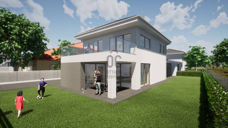 Érd kedvelt részén Fenyves -Parkvárosban eladó egy 174 nm-es Nappali + 4 szobás ,dupla komfortos dupla garázsos kétszintes ikerházfél .Az ikerház , utca fronti része eladó.1304 nm-es telken található a két egymástól független, kivitelezésben, tervezésben és műszaki tartalomban prémium minőséget képviselő ingatlan, amely közel nulla energia igényű.Az épületek kizárólag a duplagarázsoknál érintkeznek egymással, egyéb közös falrész nincsen.A házhoz tartozó önálló kertrész:210,5 nmAz építkezés kb. 90%-os készültségi fokon áll, a folytatás a vevői igények alapján történik.A burkolatok és szaniterek kiválasztása, a leendő tulajdonos igényeihez fog igazodni.Elrendezés :Földszint (80 m²)- 40 m²-es amerikai konyhás nappali étkezővel és kandallókiállással- 12 m²-es fedett terasz, amely közvetlen kapcsolatot teremt a kerttel- Különálló szoba, amely bármilyen célra alkalmas- Kamra, háztartási helyiség/mosókonyha, tároló, WC és fürdőszoba- Tágas előtér és közlekedő- 37 m²-es dupla garázs, elektromos kapuval és külön víz kiállássalEmelet (57 m²)- 3 hálószoba, mindegyikhez saját terasz (köztük egy 24 m²-es nagyobb terasz)- A szülői hálószobához gardróbszoba kapcsolódik- Fürdőszoba WC-velKert:- Minden oldalon zárt, minőségi kerítés- Térkövezett bejáró (gépkocsi és gyalogos)- Elektromos kapu, kaputelefon- Tereprendezés, termőtalajterítés (kertészeti munkákat nem beleértve)Műszaki paraméterek:•Alapozás: vasalt beton sávalap (c/16/24 betonból, lábazat: Leier zsalukő, vasalvamixerbetonnal betonozva, betonminőség c/16/16, vasalt szerelőbeton 12 cmvastagságban c/16/16 betonminőség).•Falazat: 30-as Leier tégla felmenő falazat (nútféderes falazóelemekkel, Baumit falazóhabarcsba falazva).•Kandalló: a földszinten helyet kap egy Leier 20-as kandalló kémény.•Födém: a földszinten monolit vasbeton födém és lépcső; az emeleten láng- és rovarmentesített fagerendás födém gipszkarton borítással (szeglemezes tetőszerkezet), 30 cm hőszigeteléssel.•Nyílászárók: antracit színű 3 rétegű hő és hangszigetelt üvegezéssel ellátott fa nyílászárók, rejtett redőnytokkal, részben elektromos redőnnyel, részben manuális redőnnyel.•Hőszigetelés: a földszinti aljzaton 12 cm, külső falakon 15 cm normálpolisztirol, födémen 30 cm üveggyapot paplan.•Hűtés, fűtés, melegvíz: Elektromos üzemű hőszivattyús rendszer (hőszivattyús padlófűtés, hőszivattyús mennyezeti hűtés-fűtés). A melegvizet egy 200 literes HMV tartály biztosítja, elektromos hőpatron rásegítéssel. H-tarifa (3x20A) biztosítása a hőszivattyú részére. Nappali tarifa (3 fázis, 3x16A) biztosítása a lakás és kiegészítő fűtőpatron részére.•Központi porszívó előkészítése (porszívómotor és gégecső nélkül).Az ár tartalmazza a(z):•elektromos kapukat,•kerítést,•kaputelefont,•antracit színű, Hörmann márkájú, motoros elektromos garázskaput (távirányítóval),•térkövezett bejárót (gépkocsi és gyalogos),•központi porszívó előkészítését,•beépített bejárati ajtót,•beltéri ajtókat kilinccsel bruttó 90.000 Ft/db-ig,•szanitereket, csaptelepeket együttesen 1.200.000 Ft/lakás összegig,•beltéri hideg burkolatokat: bruttó 9.000 Ft/nm-ig,•beltéri meleg burkolatokat: bruttó 7.000 Ft/nm-ig,•villamossági szerelvényeket alap, fehér színben (Legrand),•beltéri glettelést és festést: kétszer glettelve, két rétegben festve, fehér színben,•csatorna és bádogos munkálatokat (antracit színben, alumínium anyagokkal) a tervekkel megegyezően.A lakások fajlagos hőveszteségtényezője a közel nulla energiaigényű épületek követelményszintjének felel meg.A vételár kulcsrakész állapotra vonatkozik és az 5%-os áfát tartalmazza.Várható befejezés: Az adásvételi szerződés megkötése után 6 hónappalAz Otthon Centrum teljes körű ügyintézéssel (CSOK Plusz, hitel, babaváró) áll az eladók és a vevők rendelkezésére .Az adásvételi szerződés megkötéséhez igény szerint megbízható ügyvédi közreműködést biztosítunk, és segítséget nyújtunk az adásvételhez kapcsolódó ügyek intézéséhez.A kivitelező megbízható cég, több évtizedes működése révén számos referenciával rendelkezik Érden és Pest megyében, amelyek igény szerint megtekinthetők.CSOK igénybevehető, mivel céges építkezés. |