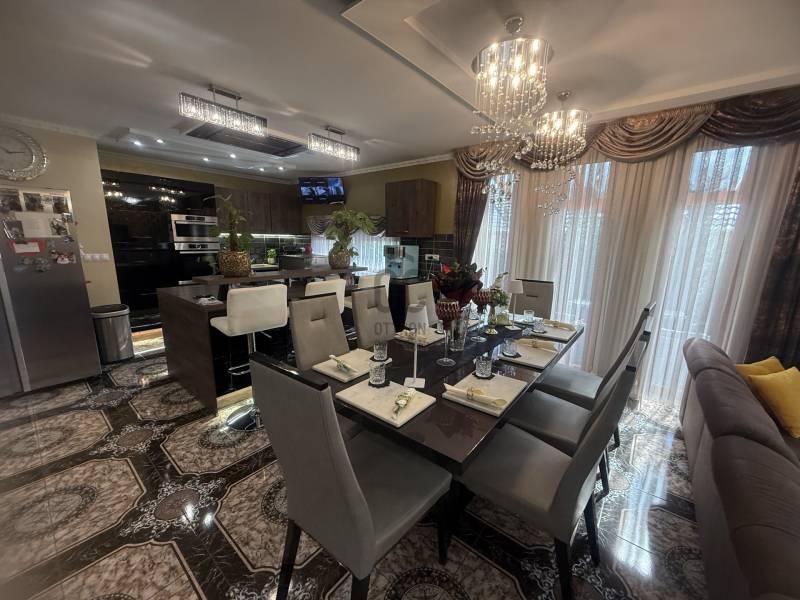 Csak Nálunk, csak az OTTHON CENTRUMNÁL!Győrújbarát központi, de mégis csendes panorámás zsákutcájában kínálok eladásra egy nagyon impozáns, modern, minden igényt kielégítő családi házat.Ha, újszerű házat keresel, örök panorámával, egyedi stílussal berendezve? Akkor jó hírem van, mert ez a ház Neked szól, ilyet nem látsz mindennap az ingatlanpiacon.Hogy miért, már mondom is, - 880 m2-es gyönyörűen parkosított, körbekerített telek- egyedi díszfák, növények, pálmafák- térkövezett udvar- kiépített öntözőrendszer- a ház nettó lakótere 280 m2- napelem rendszer segítségével, a ház fenntartása minimális - klimatizált- a ház melegéről padlófűtés gondoskodik- alsó szinten 2 hálószoba, emeleten szintén - a tágas garázsban 2 autó is elfér- egyedi burkolatok, egyedi bútorok- a kertben hangulatos bográcsozó, grillező és jakuzzi található- a házban lévő bútorok a vételár részét képezikÉlőben a ház még extrább, még látványosabb. Hívj, és mutatom, elérhető vagyok a hét mindennapján!Hitelre van szüksége?Az Otthon Centrum az ország egyik legnagyobb és legmegbízhatóbb hitelközvetítőjeként,teljes körű és díjmentes hitelügyintézéssel, biztosításkötéssel áll rendelkezésére!Kérje személyre szabott ajánlatunkat Kollégáinktól! |