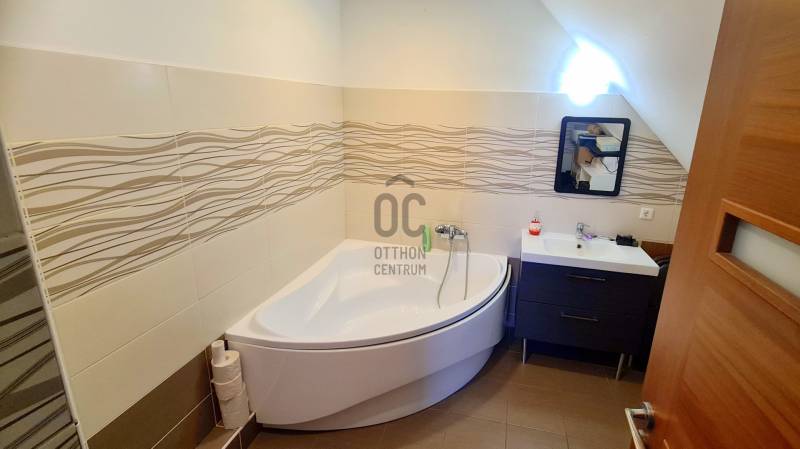 Fedezze fel ezt a kivételes lehetőséget a mogyoródi dombtetőn, ahol a természet közelsége és a modern életvitel harmonikus egyensúlyban találkozik! Mogyoród nemcsak a természet szépségeivel büszkélkedhet, hanem számos szabadidős lehetőséget is kínál, hiszen a közeli erdők és parkok tökéletes helyszínt biztosítanak a kirándulásokhoz és a kikapcsolódáshoz. Ez a használt, de kiváló állapotban lévő családi ház ideális választás lehet családok, vagy befektetők számára egyaránt.Az ingatlan 2019-ben épült minőségi anyagokból, össz. lakóterülete 168 m2, és egy 764 négyzetméteres telken helyezkedik el, ami bőséges teret biztosít a kényelmes élethez. A ház nagyon jól hőszigetelt, fenti lakrész minőségi Phorotherm tégla és 16cm Rockwool kőzetgyapot fali szigetelést kapott, a padlóban 20 cm hőszigetelés, tetőtérben 30cm és 45cm hőszigetelés van. Az ablakok 3 rétegű, meleg peremű és hangszigetelt üvegezéssel (44mm, 0,7W/m2K) és 88mm vastag borovi fenyőből készültek.Lenti szuterén szinten (48m2) két szoba (hálószoba + pakolós szoba), fürdőszoba (kád, mosdó és WC) és egybe konyha-nappali rész. Itt is 3 rétegű ablakok találhatóak.Fenti részen (177m2) három teljes értékű szoba (ebből az egyik saját fürdővel, WC-vel rendelkezik), egy fürdőszoba WC-vel, egy vendég WC, kamra és egy nagy légterű amerikai konyhás, nappalis helyiség.Fűtése elektromos, kedvezményes tarifájú vezérelt és H-tarifás mérőórákkal. Több helyen minőségi japán klímák, padlóban elektromos fűtés szintén kedvezményes tarifára kötve.Havi rezsi nagyon kedvező, átlagosan 2024-ben 28.000 Ft/hó volt a fűtés, hűtés, melegvíz és villany költsége!Az épületben központi hővisszanyerős szellőztetés található, amely folyamatosan biztosítja a friss és szűrt levegőt a szobákba, nappaliba, valamint elszívja a párát, szagokat a fürdőszoba, WC és konyha helyiségekből. Nincs nyitott ablak, nincs por vagy pollen, nincs zaj vagy télen hideg levegő avagy magas pára és penész a házban!Az ingatlanon két nagy méretű kerti tároló, egy 18 m2-es kerti kiülő és egy 12 m2-es bográcsozó is kialakításra került. Kert egy része már rendezett; telepítve van 2db (össz. 11m3-es) föld alatti műanyag esővíz tartály, amiről a locsolás, de akár a házban lévő WC tartályok is gazdaságosan üzemeltethetőek egész évben. A kertkapu elektromos, a ház előtt és oldalt végig Leier térkövezve van, akár 3 autó is beállhat. Víz, villany és csatorna bekötve, gáz a telken belül található. A település közlekedése kiváló, hiszen a főbb közlekedési csomópontok könnyen elérhetők. Autóval való közlekedés során a főváros gyorsan és egyszerűen megközelíthető az M3 autópályán, így a városi élet előnyeit is élvezheti, miközben a természet közelségét élvezi. Ez a ház nem csupán egy ingatlan, hanem egy életstílus lehetősége, amely a nyugalmat és a modern kényelmet ötvözi. A környék csendes és biztonságos, ideális választás gyermekes családok számára. Amennyiben felkeltette érdeklődését, vagy kérdései merülnének fel, ne habozzon kapcsolatba lépni velem. Bizalommal várom megkeresését, hogy együtt találhassuk meg az Ön számára legmegfelelőbb megoldást! |