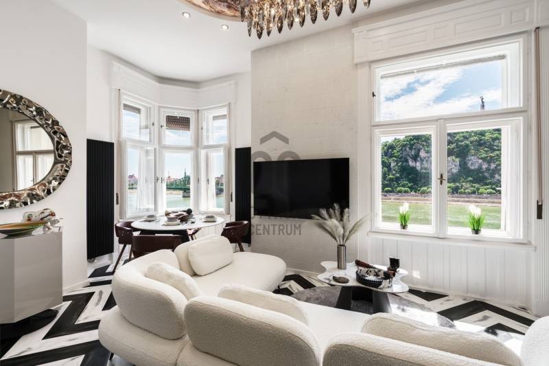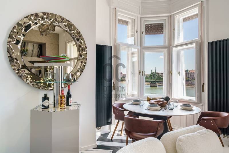 Ha egyedi otthonra vágyik! Olyanra ami senki másnak sincs!Budapest egyik legértékesebb területén a Belgrád rakparton eladó Szabadság hídra panorámás ,felső emeleti luxus otthon . A DNY-i fekvésű lakás egy rendezett, zárt lépcsőházas ,liftes társasház III.emeletén helyezkedik el. A szinten csak 4 lakás található! A lakás 2éve teljeskörű felújításon esett át! A sarok lakás mindhárom szobája utcára néz. A nappali két ablakából és az egyik hálószobából is fantasztikus Dunára és Szabadság hídra néző panoráma tárul elénk. A nagyobbik hálószoba pedig csendes mellékutcára néz. A lakás teljes bútorzattal együtt eladó amely a vételár részét képezi. Az alábbi anyagok felhasználásával történt a felújítás:Mardegan olasz tölgy parkettaMiele konyhagépekAristone kézmosóvalódi dió falburkolatFlorim és Porcelanosa csempékegyedi beltéri ajtókOnyx burkolatRoche Bobis ágy és bárfólia mennyezetekdesign francia Trone Wc-kEgyedi lehetőség! Éljen vele! |