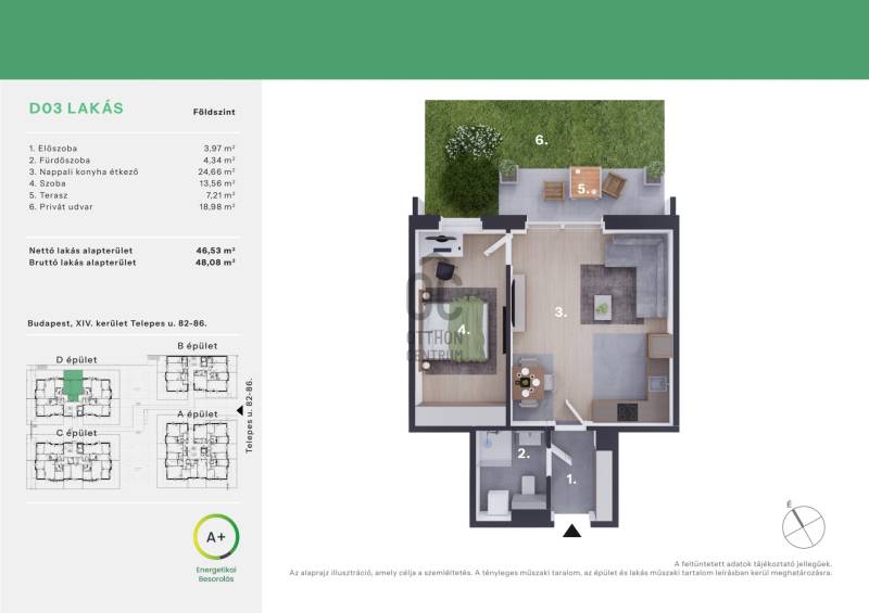 Projekt bemutatásaA Daisy Liget Zugló csendes részén épül, közel a Bosnyék térhez. A megújult kertvárosias környezet a pesti oldal egyik legkedveltebb részei közé tartozik, az itt élők egyszerre élvezhetik a csöndes kis utcák nyugalmát és a belváros közelségét. A Bosnyák téren mindent megtalálunk ami a hétköznapi élethez szükséges: a Zenit corso bevásárlóközpontot, a Bosnyák téri piacot, patikát, éttermeket és kávézókat.Számos óvodát, általános iskolát, játszóteret és sportközpontot is találunk a 10 perces sétatávolságon belül.A társasház különleges homlokzatával, egyedi fiatalos dizájnjával, kiemelkedik a környező épületek közül. A 4 emelet magas, szellősen elhelyezett épületek tökéletesen illeszkednek a környéken jellegzetes, előkertes kialakítású épületekhez.Figyelembe véve a jövő elvárásait, a társasház modern, környezetbarát, mennyezeti hűtő, -fűtő rendszerrel ellátott.Vevőinknek lehetőségük nyílik, hogy új otthonukat az utolsó részletig személyre szabják: változtathatnak az ingatlann elosztásán, széles kollekcióból választhatnak meleg- és hideg burkolatokat, szanitereket. Az alapáras burkolatokon felül, elérhetőek feláras termékek is, mely biztosítja, hogy olyan lakásban lakjanak mit megálmodtak maguknak.A fizetési ütemezés: 10-90%A jelen adatok tájékoztató jellegűek, ezért a Beruházó (sem a hirdető) azok változásával, vagy bármely attól való eltéréssel kapcsolatban semmilyen kötelezettséget, vagy felelősséget nem vállal.Az alaprajzokon ábrázolt berendezési tárgyak és bútorok, a burkolatok megjelenése nem képezi a szerződés tárgyát. A pontos felszereltségről a műszaki leírásban olvashat bővebben.Az aktuális lakáskínálatról és árakról érdeklődjön telefonon!