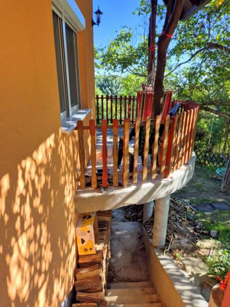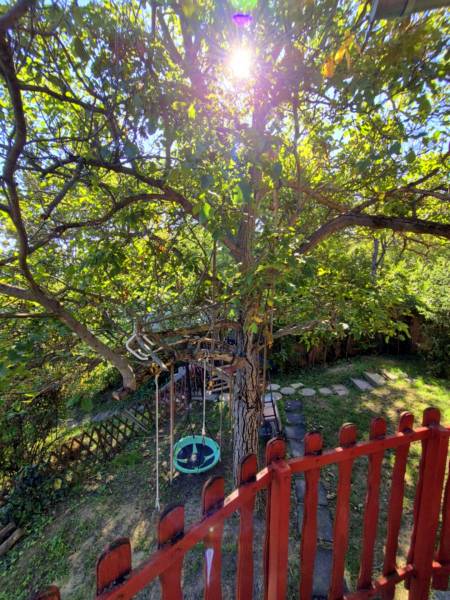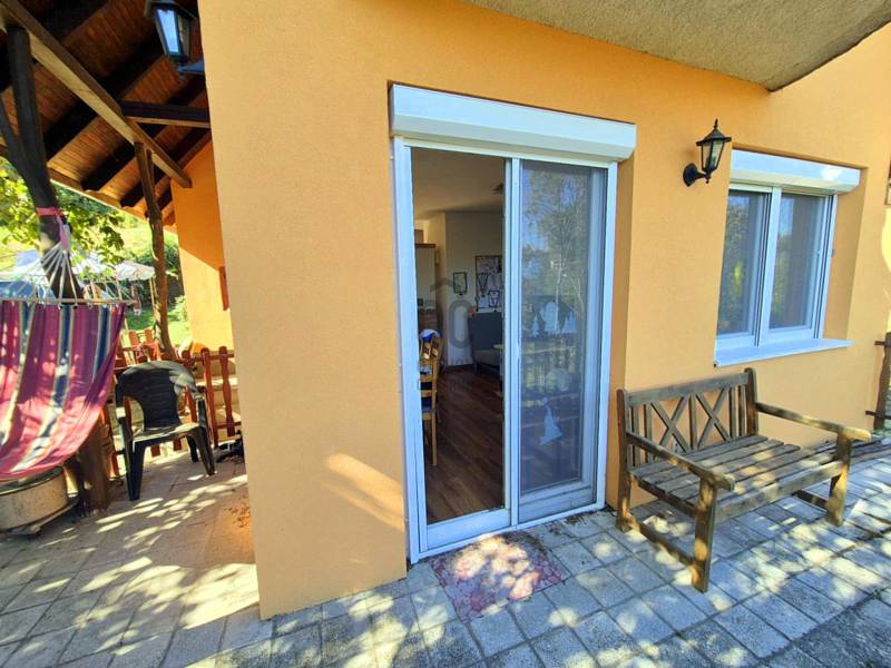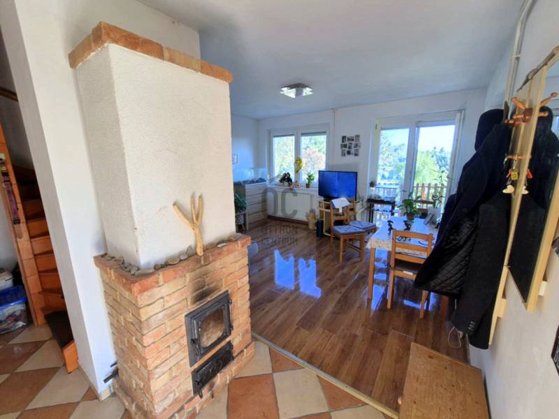 Eladó Szentendrén eladó 71nm-es, 4 szobás, csodás panorámával rendelkező jó állapotú ház, méghozzá 788nm-es telekkel!Szentendre, Tyúkosdülő körzetében eladóvá vált egy egyedi, csodás kerttel és még jobb kilátással rendelkező tégla önálló ház!Bár jogilag üdülő épület, ám a 2015-ös teljes felújítás során állandó lakhatásra át lett alakítva, így elsősorban azoknak ajánlom, akik nyugodt környékre vágynak és szeretnének szomszédoktól távoli, békés helyen élni.+ Belső két szintes, tégla szerkezetből épült, alsó szinten 41nm hozzá 22nm terasz és a felső szinten 32.7nm lakrész erkéllyel.+ Az alsó szinten a tágas nappalin kívül 1db hálószoba és a felső szinten további 2db hálószoba került kialakításra amiből az egyik saját fürdőszobával is rendelkezik.+ Folyamatosan karban tartott és modernizált a ház. A villany hálózat bővítve lett és a teljes víz hálózat is ki lett cserélve.+ Kívülről 10cm hőszigetelést kapott és minden nyílászáró ki lett cserélve. A fűtésről és meleg vízről egy elektromos cirkó kazán gondoskodik ( H tarifás villany órával), ami mellé még egy nagyobb fa tüzelésű kandalló is ki lett építve.+ Víz és villany természetsen bekötve, saját modern emésztővel, gáz az utcában nincs.+ Igény szerint a teljes bútorzat, gépek és gépészet az ár részét képezi és akár maradhatnak.+ Egyik legnagyobb előnye, hogy a lakrészhez még egy ideális méretű terasz is kialakításra került, hogy fokozza a komfort érzetet.+ Az emeleti erkélyről csodás a kilátás és egészen egyedi a napkelte élménye.+ A ház alatt található egy normál méretű pince is, ami tárolásra ideális.+ Az utcafronti kerítés úszó kapura lett cserélve, így akár két autó is elfér telken belül.+ Igazán csendes, intim környezet, ami egy eldugott utcában található minimális forgalommal.+ Tulajdoni lap szerint \"Kivett / üdülőépület, udvar\" megnevezésű belterületen, így hitel sajnos nem vehető fel rá.+ Tehermentes, 1/1-es tulajdonú, osztatlan közös tulajdonú tulajdoni hányad érvényes megosztási szerződéssel.Ha csöndes környékre vágysz, lenyűgöző és páratlan kilátással, ahol egyre több az új építésű ingatlan, akkor itt a helyed! |
