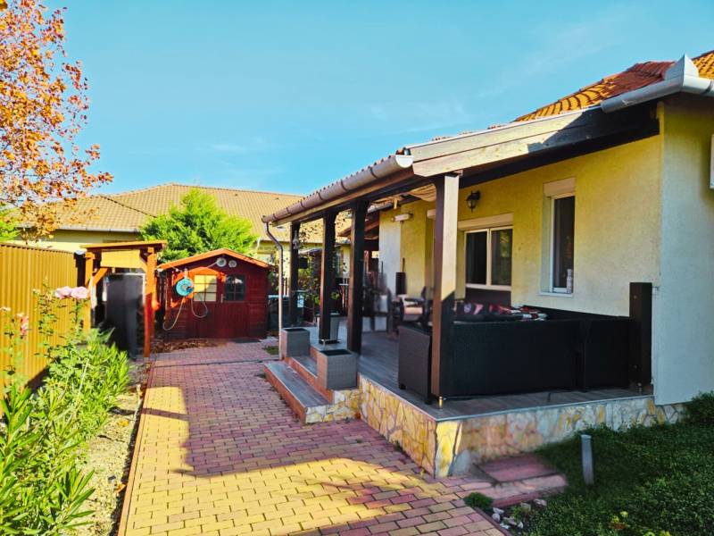 ALAPADATOK:•Helyszín: Szigetszentmiklós, Központhoz közeli, aszfaltozott utca.•Ár: 147 M Ft (Irányár)•Méret: 98.3 m² •Szobák száma: 4 Különálló háló + Tágas Nappali/Konyha/Étkező•Potenciál: Könnyen 2 különálló lakássá osztható, Tetőtér beépítéssel bővíthető.•Állapot: Újszerű, 2008-as téglaépítés, új kazán.•Kert/Parkolás: Gondozásmentes, térkövezett, fedett beálló 2 autónak, külön tároló.•Hitelképesség: Igen.________________________________________Kiemelkedő lehetőség Szigetszentmiklós egyik legkeresettebb részénEladásra kínálunk egy 2008-ban épült, újszerű műszaki és esztétikai állapotú, minőségi téglaépítésű családi házat Szigetszentmiklós központhoz közeli, aszfaltozott utcájában. Az ingatlan nem csupán kényelmes otthon, hanem tudatosan átgondolt, hosszú távon is értékálló életviteli és befektetési lehetőség.Azonnali érték, jól szervezett terekA 98,3 m²-es lakótér praktikus és élhető elrendezést biztosít:tágas, egybenyitott nappali–konyha–étkező közösségi tér,négy, külön bejáratú hálószoba a zavartalan privát szféráért.Konyha: A modern, gépesített és igényes kivitelű konyhabútor a vételár részét képezi.Műszaki állapot: Az épület kifogástalan állapotú, a fűtést új, korszerű gázkazán biztosítja.Kertkapcsolat: Az ingatlan első és hátsó terasszal is rendelkezik. A nagyméretű, fedett hátsó terasz közvetlenül a konyhából nyílik, ideális családi és baráti összejövetelekhez.Kimagasló fejlesztési és hasznosítási potenciálAz ingatlan különleges értéke a benne rejlő rugalmasság:1. Két különálló lakás kialakításának lehetőségeAz adottságok lehetővé teszik, hogy kisebb átalakítással két teljesen elkülönített lakrész jöjjön létre. Ez ideális megoldás lehet többgenerációs együttélésre vagy bérbeadás céljára, stabil és kiszámítható bevételi forrást biztosítva. A funkcionális megoszthatóság jelentősen növeli a piaci értéket.2. Bővíthető tetőtérA jelenleg egy hálószobás tetőtér teljes beépítésével tovább növelhető a lakóterület és a szobaszám, ami további értéknövekedési potenciált jelent.Alacsony fenntartási igényű, rendezett környezetA 320 m²-es telek szinte teljes egészében térkövezett, így minimális karbantartást igényel – ideális választás azok számára, akik gondozásmentes kertet szeretnének.Különálló tároló az udvarbanAutomata kapu a kényelmes bejárás érdekébenKét gépjármű számára fedett beállóKiváló infrastruktúra és könnyű megközelíthetőség a központi elhelyezkedésnek köszönhetőenÉrték, amely hosszú távon is megtérülAz ingatlan ára a benne rejlő fejlesztési és hasznosítási lehetőségek tükrében kiemelkedően kedvező. A kétlakásos kialakítás opciója és a bővíthetőség olyan hozzáadott értéket képvisel, amely ritkán elérhető a környéken.Amennyiben egy sokoldalúan hasznosítható, stabil értéket képviselő ingatlant keres Szigetszentmiklós központjához közel, ez a ház kivételes lehetőséget kínál.Vegye fel velünk a kapcsolatot, és győződjön meg személyesen az ingatlan adottságairól és lehetőségeiről. |