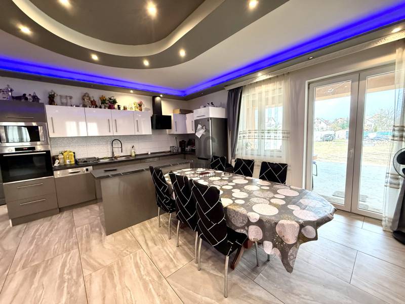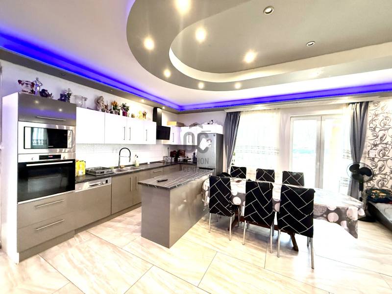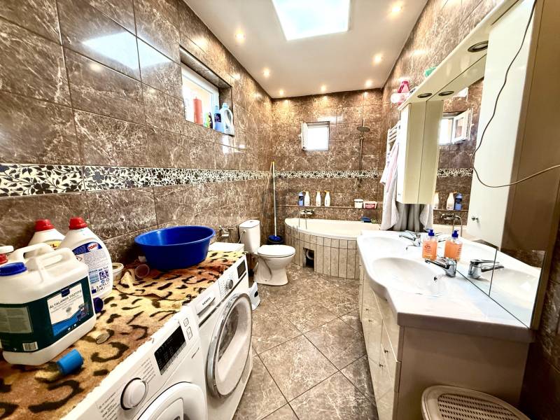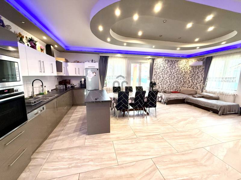 Őrbottyán frekventált, mégis csendes, központi övezetében kínáljuk megvételre ezt a 111 m²-es, 2020-ban újjáépített, magas műszaki tartalommal rendelkező családi házat, melyet egy 1375 m²-es, kivételes adottságú telek ölel körbe.A ház 30-as Porothermből épült újra, 15 cm-es homlokzati szigeteléssel és 20 cm-es födémszigeteléssel kiegészítve. A belső terekben minőségi olasz burkolatok, gondosan megtervezett terek és korszerű gépészet várja a leendő tulajdonost. A fűtést Baxi gázcirkó, a hűtést inverteres klíma biztosítja, a nappaliban és fürdőben padlófűtéssel kiegészítve.A telek 21 méteres utcafronttal, 65 méteres hosszúsággal, sík, jól tagolható kialakítással rendelkezik – ritkaság a környéken. A 26 m²-es fedett terasz befejezése az új tulajdonos ízlésére bízható.A bútorzat igény szerint az ingatlannal együtt megvásárolható.Ez az otthon azok számára készült, akik értékelik a korszerű műszaki tartalmat, a nagy telek adta szabadságot és a nyugodt, mégis központi elhelyezkedést.Ha a leírtak és a látottak alapján felkeltettem az érdeklődését, megelőlegezett bizalmát előre is megköszönve, akár a hétvégén is várom szíves jelentkezését! |