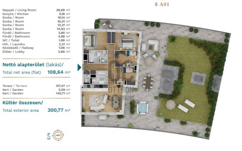 Épületek Új Dimenziója!Eladó egy lenyűgöző, 108 m² alapterületű, nappali + 4 hálószobás, kifinomult design lakás, amelyhez egy impozáns, 157 m²-es terasz, valamint egy közel 145 m² saját tetőtersz tartozik. Az ingatlan az épület legfelső emeletén, 8.emeleten helyezkedik el, a kertkapcsolatos tetőteraszra mindegyik szobából ki lehet menni.A tulajdonosok kényelmét biztosítja a két fürdőszoba, háztartási helyiség.Tökéletes választás mindazoknak, akik szeretik a tágas tereket, fontos számukra vízparti hangulat, elegáns és nyugodt környezet.A lakás különleges elhelyezkedésének déli délkeleti és délnyugati fekfésének köszönhetően kivételes benapozottságot élvez, míg a közeli Duna-part elegáns és pihentető hangulatot biztosít.Az épület prémium szolgáltatásai:- 0–24 órás portaszolgálat és teljes körű biztonsági kamerarendszer- Gondozott belső kertek, játszótér a gyermekeknek- Elegáns klubszoba és exkluzív meeting room- Gyerekbarát játszótér, tágas és gondozott belső kertek- Stílusos klubszoba / meeting roomA projekt kiemelkedő műszaki tartalommal és prémium minőségű kivitelezéssel valósult meg.Gépkocsibeálló és tároló opcionálisan választhatók.5% ÁFA VISSZAIGÉNYELHETŐ MAGÁNSZEMÉLYEKNEK – ROZSDAÖVEZETI KEDVEZMÉNYTovábbi részletekért keressen bizalommal!Projekt bemutatásaA Vizafogó déli csücskében épülő, egyedüálló projekt legszebb lakásai várják új lakóikat..A legkülönlegesebb Duna-parti projekt kiváló tervezői munka eredménye.Egyedülálló forma és lokáció teszi különlegessé ezt a társasházat.Változatos elrendezésű lakások.Energiahatékony, fenntartható megoldások.Igényes kivitelezés.Kiváló lokáció.A beruházás rozsdaövezeti besorolású : az itt megépülő lakások után fizetendő 5%-os Áfát a jogszabályi feltételeket teljesítő vásárlók vissza nem térítendő állami támogatásként a 444/2021. (VII. 23.) Korm. rendeletben foglaltaknak megfelelően visszaigényelhetik. |