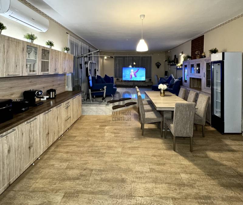 Kecskemét egyik legértékesebb, villanegyedi részén eladó egy önálló, földszintes, bruttó 183 m²-es, 3 szobás téglaépítésű polgári családi ház, amely egy 648 m²-es, összközműves telken található, közvetlenül a Széchenyi körútra néző elhelyezkedéssel.Az ingatlan jó állapotú, dupla terasszal, 2,95 m-es belmagassággal, új elektromos hálózattal, valamint DNY tájolással rendelkezik, így egész nap világos és barátságos az otthon.Fűtéséről gázkazán és 4 darab hűtő–fűtő klíma gondoskodik, továbbá H-tarifa is rendelkezésre áll. A ház bútorozottan eladó, azonnal költözhető.A tetőtér hivatalos tervrajzzal rendelkezik így beépíthető, további bővítési lehetőséget kínál. A telken található továbbá fúrt kút, egy 11 m²-es melléképület, ipari áram, Type 2 elektromosautó-töltő, valamint egy 5 méteres elektromos úszókapu is. A ház rendelkezik 35m2-es jól használható pincével is, amely kiváló tárolásra, illetve műhelynek.Az ingatlan ideális családosoknak, akik kényelmes otthont keresnek, de befektetésre, céges irodának, társasház kialakítására, bemutatóteremnek, vagy bármilyen ipari tevékenységhez is tökéletesen alkalmas.Ritka lehetőség Kecskemét egyik legjobb környékén.Bővebb információért várom jelentkezését! Jöjjön el, nézzük meg együtt!Ha a vásárláshoz a jelenlegi ingatlana eladására van szükség, akkor abban is szívesen együttműködőm Önnel! |